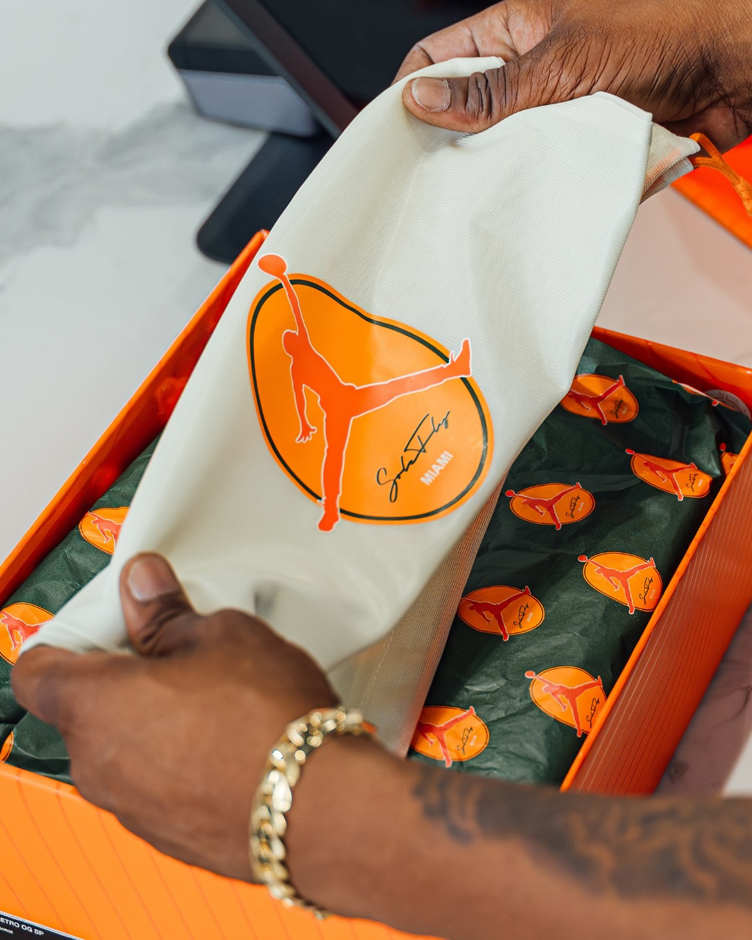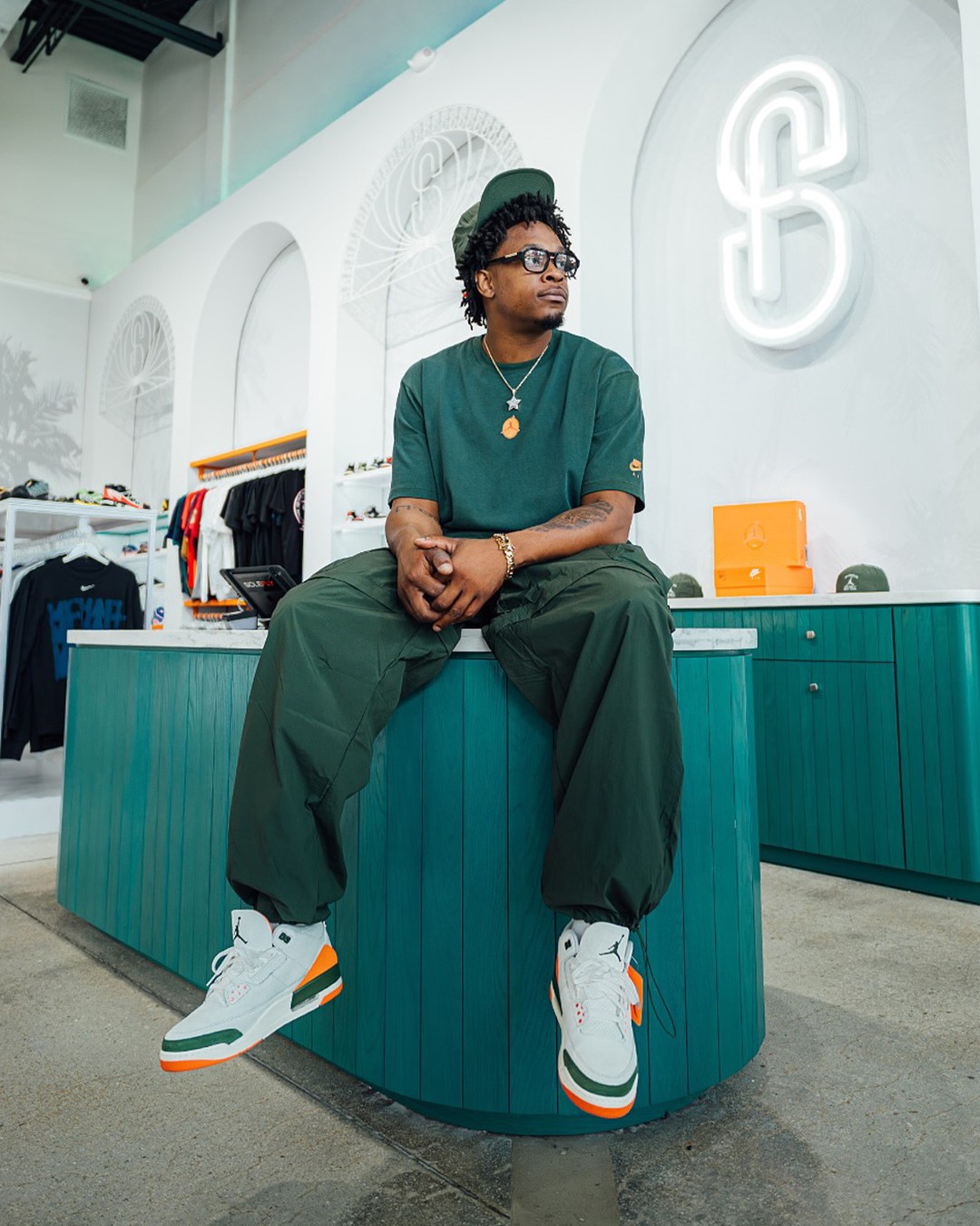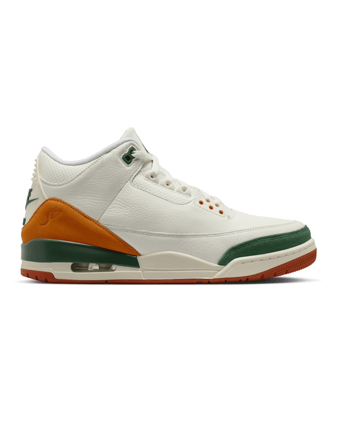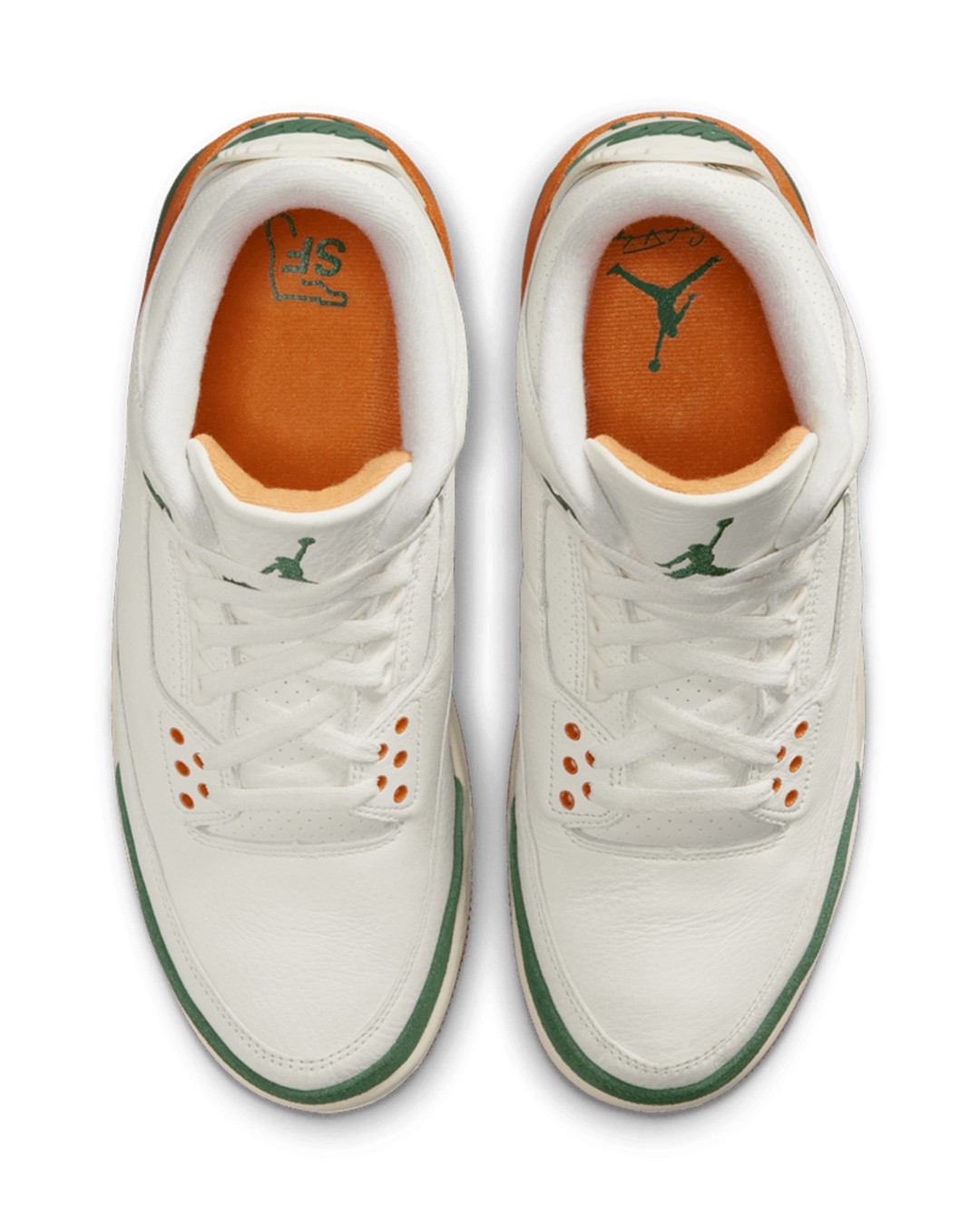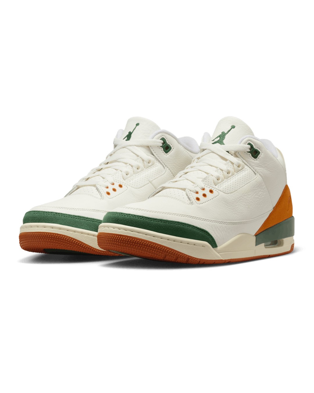 来自迈阿密的精品店 SoleFly 再度携手 Jordan Brand 推出联名款 Air Jordan III「Fruits Of Our Labor」,向佛罗里达当地文化致意。这双特别配色以迈阿密飓风队(Miami Hurricanes) 的代表色为核心,将标志性的绿色与橙色融入麂皮覆层、中底以及后跟的 Nike Air 标识之中,并在鞋身加入压印的 SoleFly 标志,与温润的米白色皮革形成鲜明对比,呈现独特的地区风格气质。目前,该鞋款的抽签活动已正式开启,定价为 225 美元,并将于 12 月 5 日 正式发售。