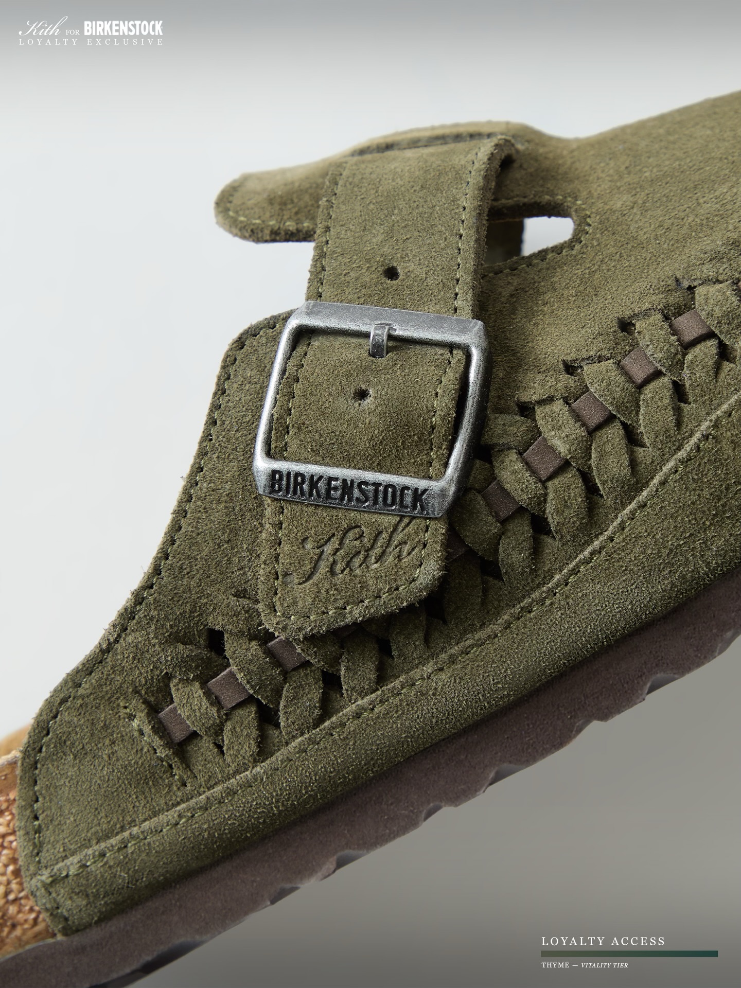 为庆祝 Birkenstock Boston 诞生 50 周年,KITH 于最新 Monday Program™ 推出三款会员专属 Braided Boston 鞋履。此次发售依会员等级分层展开:Molecule 会员可入手兔毛配色,Elevation 会员增加钴蓝色选项,而 Vitality 会员则独占兔毛、钴蓝与军绿三色。所有鞋款均延续标志性编织设计,并因手工制作而数量稀有。据悉本次系列将于美东时间 12 月 14 日前开放预订,售完即止,仅限 KITH 会员参与。