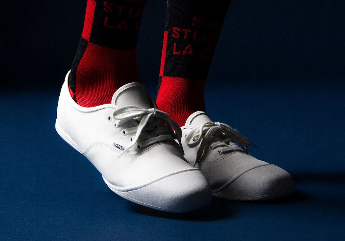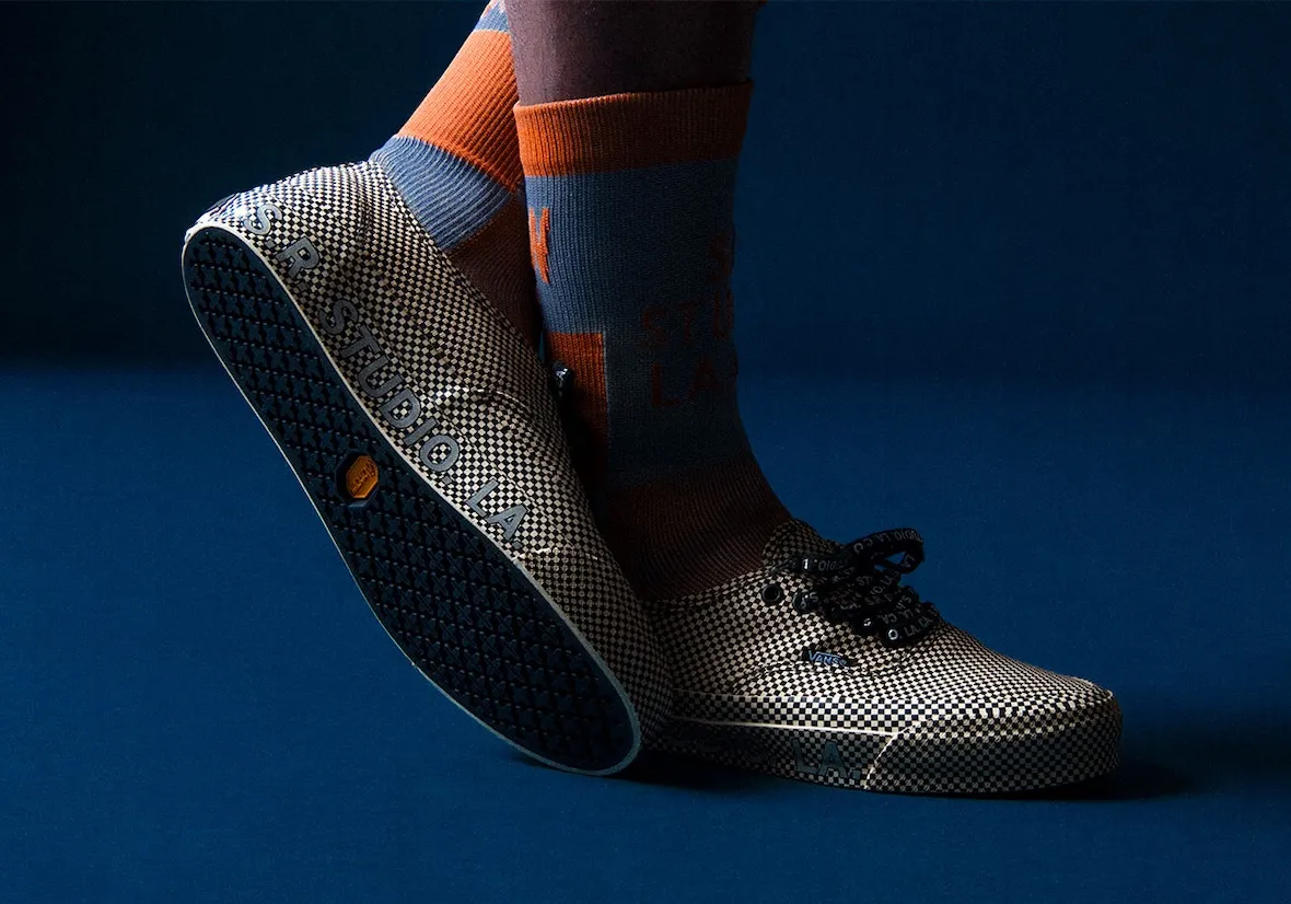 OTW by Vans 与 Sterling Ruby 创立的时尚品牌 S.R.STUDIO.LA.CA. 合作带来对造型与工艺的全新探索。Sterling Ruby 依然将鞋履视为创作的画布,与之前以大胆配色为主的系列不同,此次系列更注重鞋型、结构和整体质感。与其说是季节性的更新,不如说是一次披着 Vans 外衣的设计实验。Authentic 44 Vibram 鞋款凭借先进的抓地力和重新设计的棋盘格纹,开辟了新的领域。Authentic 44 Prima 皮革鞋款则以低调精准的造型著称。