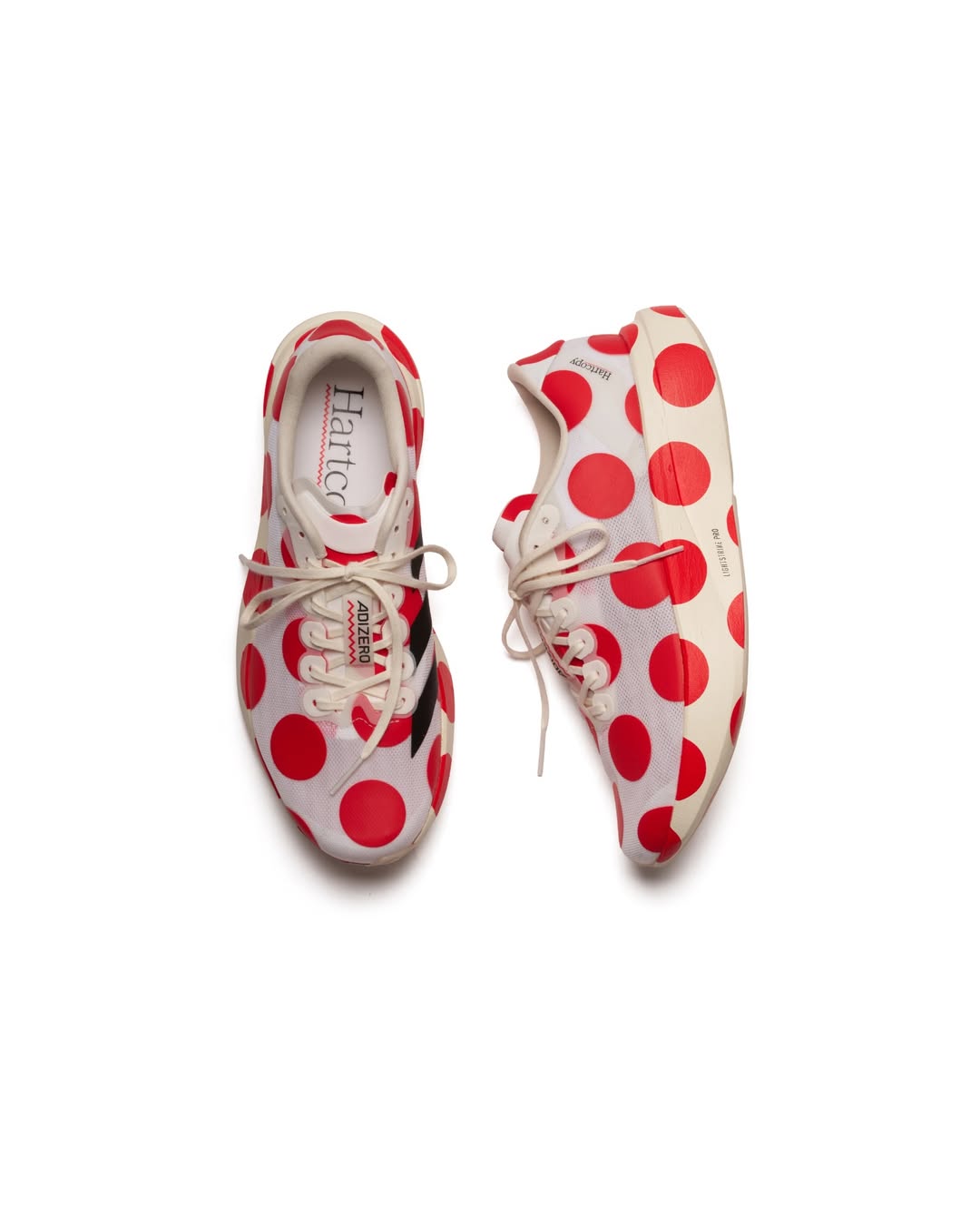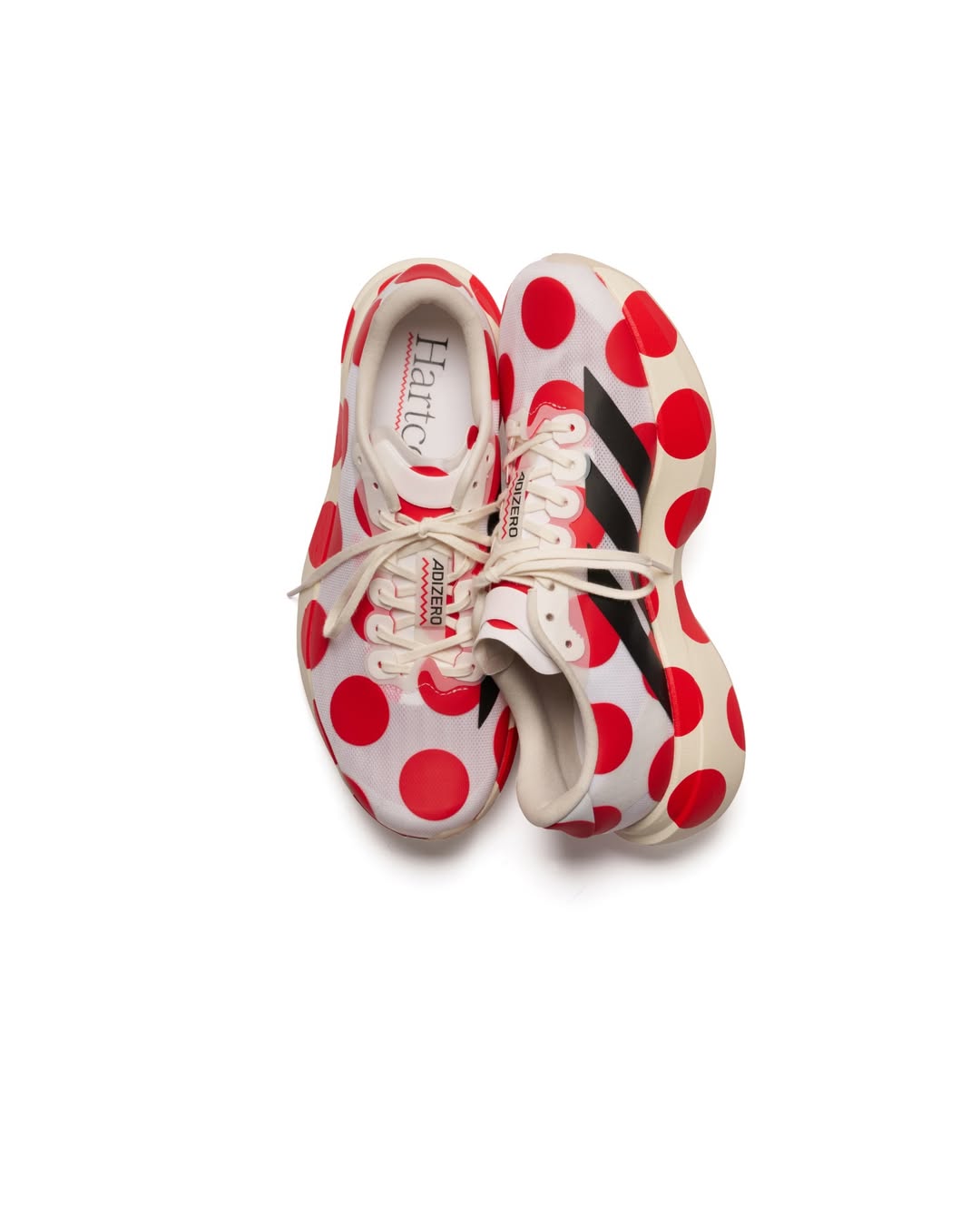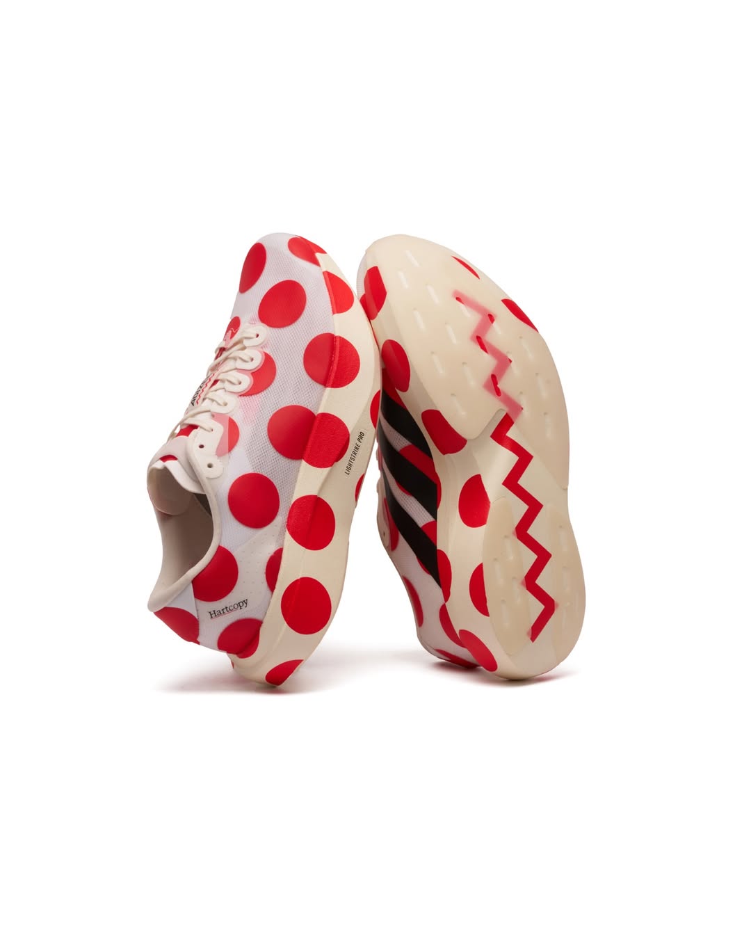 线上球鞋创意单位 Hartcopy 近日释出与 adidas 的第二次合作,此次选择以跑鞋 Adizero EVO SL 为基础,在鞋面上覆盖醒目的红色圆点图案,形成极具辨识度的视觉效果,为原本偏向性能取向的跑鞋注入鲜明的设计表达。不过目前该鞋款仍属于亲友限定,尚未公布正式市售计划,感兴趣的话不妨继续保持关注。