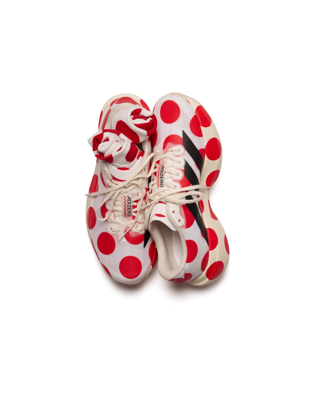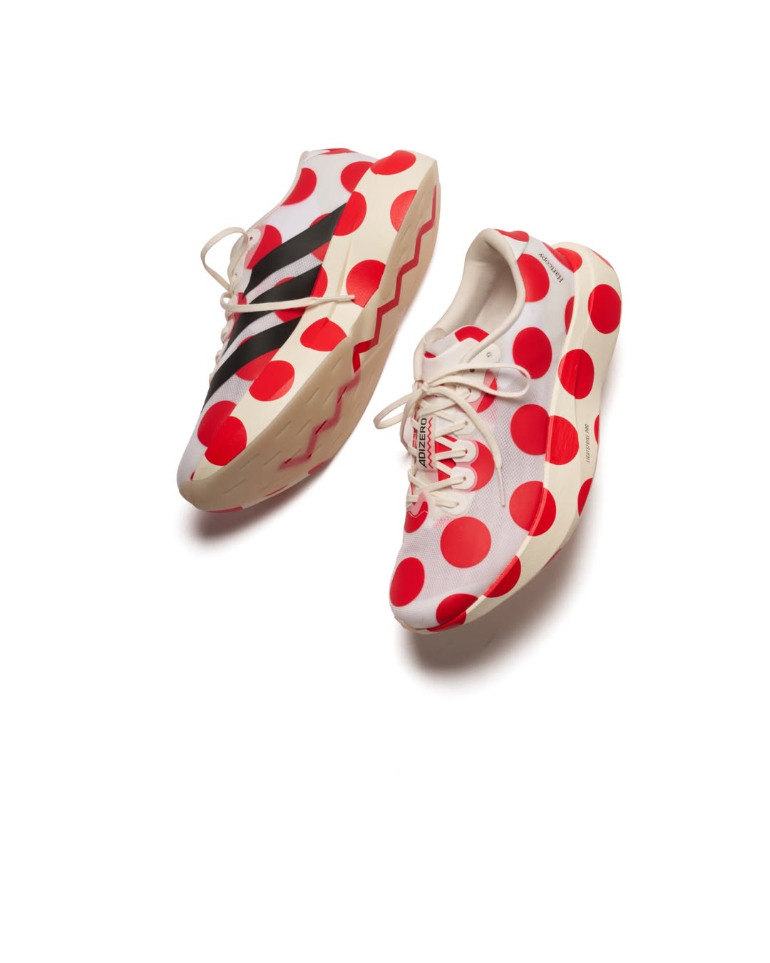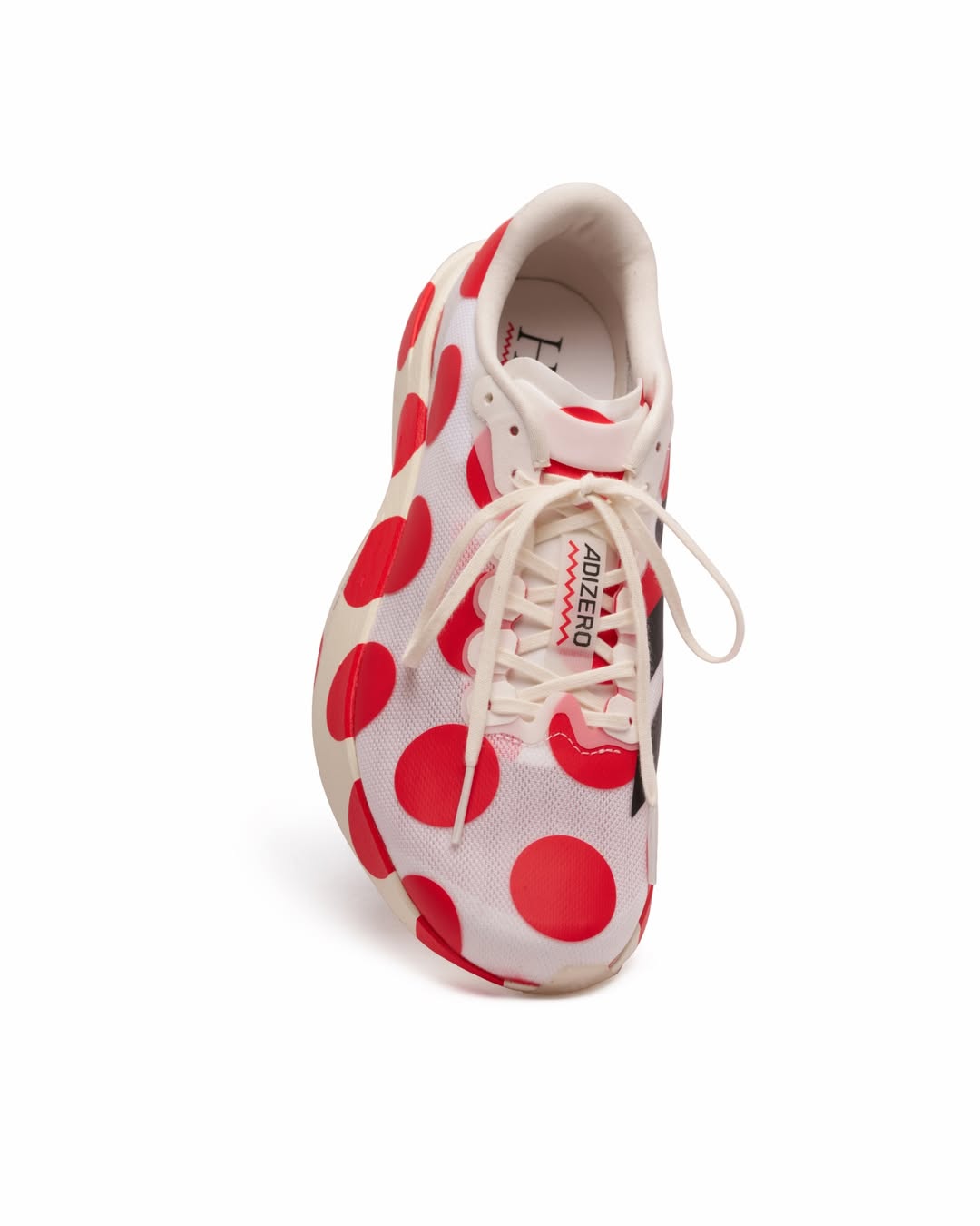 线上球鞋创意单位 Hartcopy 近日释出与 adidas 的第二次合作,此次选择以跑鞋 Adizero EVO SL 为基础,在鞋面上覆盖醒目的红色圆点图案,形成极具辨识度的视觉效果,为原本偏向性能取向的跑鞋注入鲜明的设计表达。不过目前该鞋款仍属于亲友限定,尚未公布正式市售计划,感兴趣的话不妨继续保持关注。