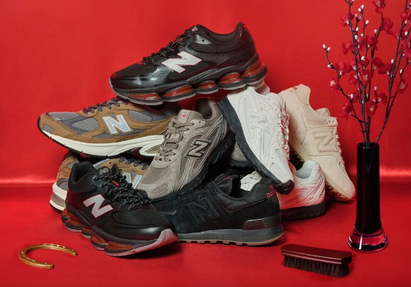 农历新年将近,New Balance 推出了低调而精致的 2026「马年」系列。该系列包含六款鞋履,其中 New Balance 2000 以抢眼的黑红配色率先登场,New Balance 2010 则以更具大地色系的配色亮相。前者基本保留了主线鞋款的结构,而 2010 在鞋舌上加入了编织纹理,并在鞋底增加了链状网眼材质。接下来的 New Balance 204L 最能体现主题——在两个相邻的大地色鞋面后跟处添加了仿马毛材质的贴片,并以黑色对比色鞋底连接。最后的 New Balance 574 以棕褐色和黑色两种配色收尾。