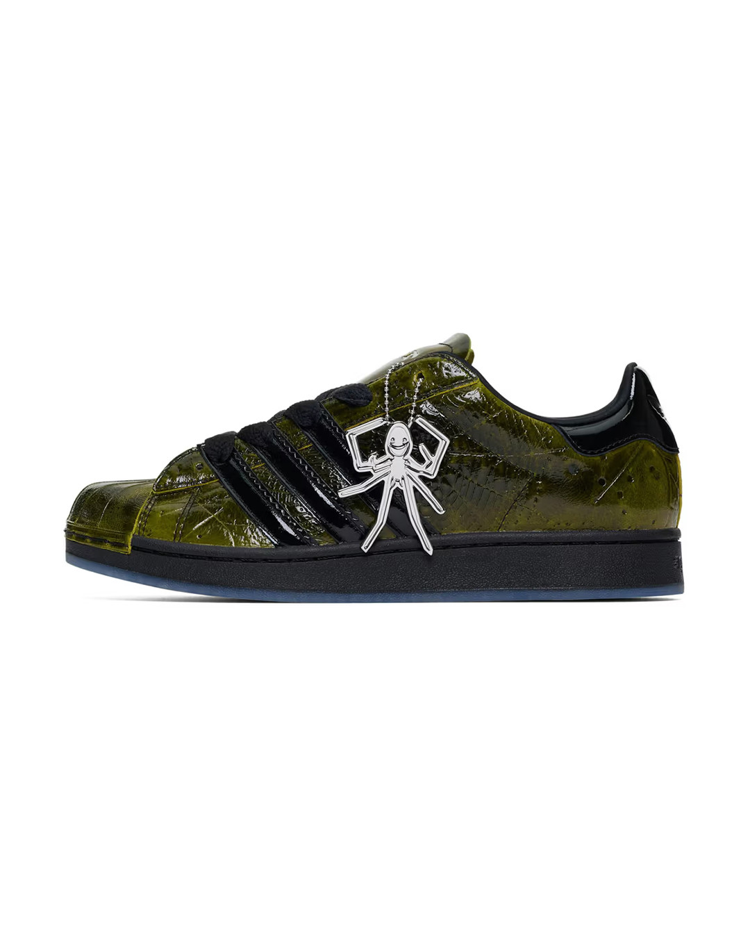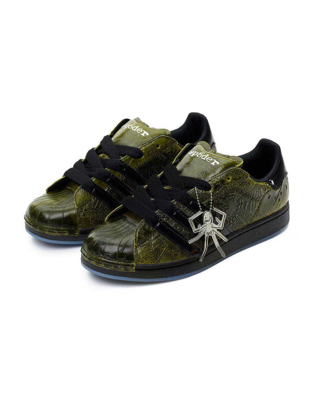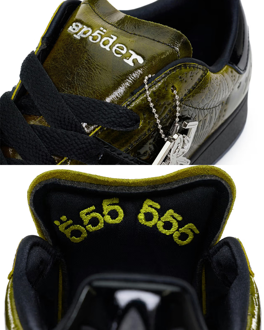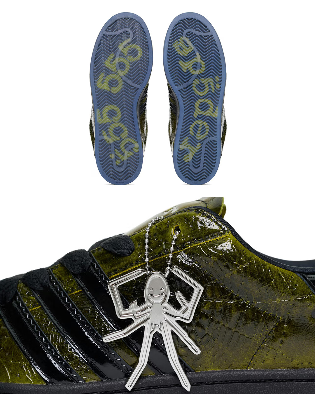 由 Young Thug 打造的品牌 SP5DER 携手 adidas Originals 推出双方的首次联名鞋款。这双联名球鞋以极具辨识度的设计吸引目光,鞋面采用亮面裂纹漆皮材质,并覆盖 SP5DER 标志性的立体蜘蛛网纹理,视觉张力十足。细节方面,黑色锯齿状三条纹强化了整体层次感,中底印有醒目的「SP5DER」字样,半透明冰蓝色外底下方则暗藏双方联名标识。此外,鞋舌内侧印有「555 555」特殊字样,鞋身外挂定制蜘蛛吊饰,并搭配品牌定制鞋带头。该鞋款通过 SP5DER 官方网站开启抽签发售。
