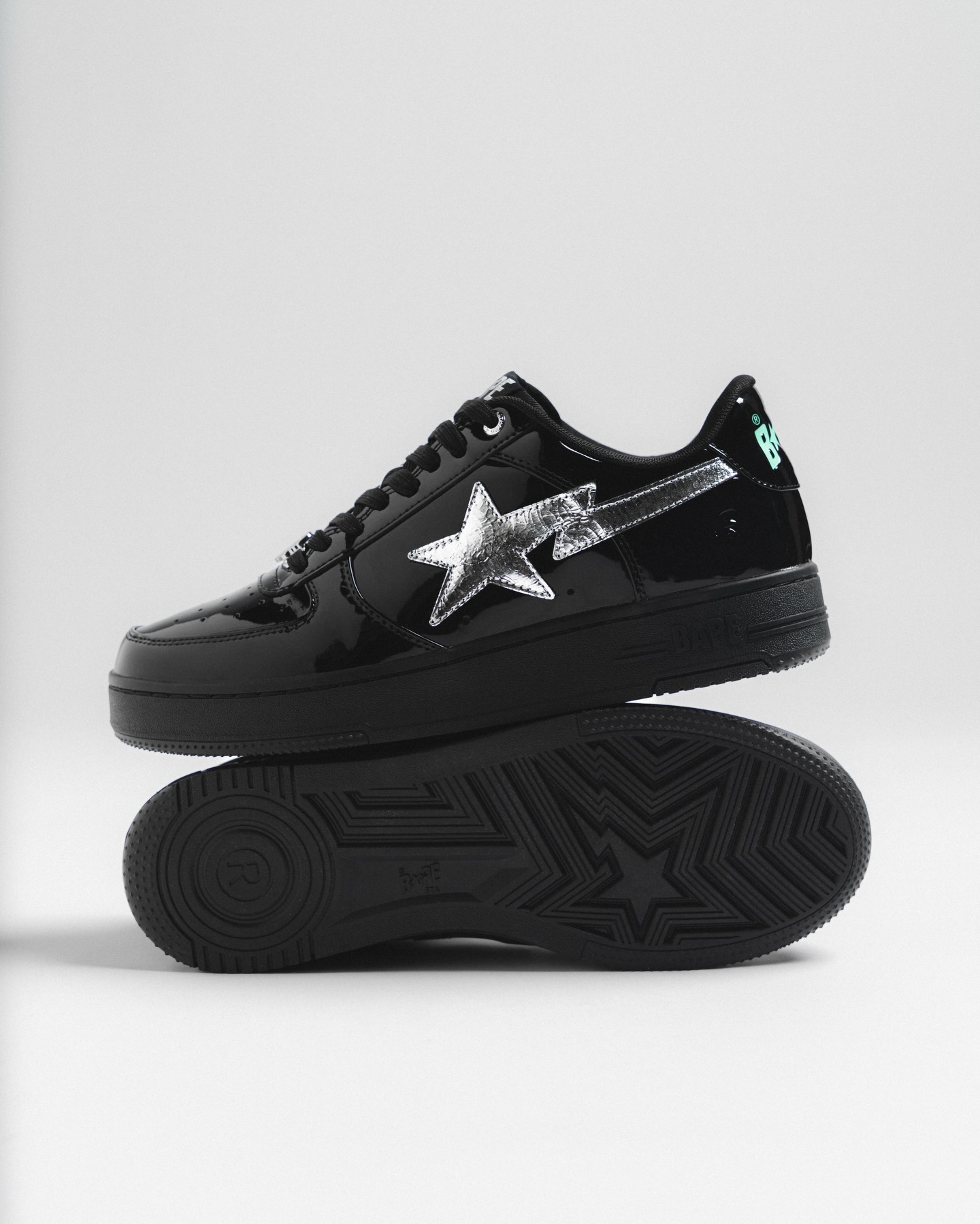 漆皮鞋面赋予闪亮的光泽,鞋侧饰以铬银色条纹,鞋跟处则以水蓝色品牌标识点缀。整体造型呼应了 2000 年代初期的潮流气质,这种设计选择不仅是出于怀旧,也是经过精心考量。Solebox 还为这款运动鞋搭配了同系列的 BAPE 服饰。T 恤的配色与鞋子相呼应,使整个系列在视觉上更加协调统一。胶囊系列将于 2026 年 1 月 23 日在 Solebox Paris 门店独家发售。