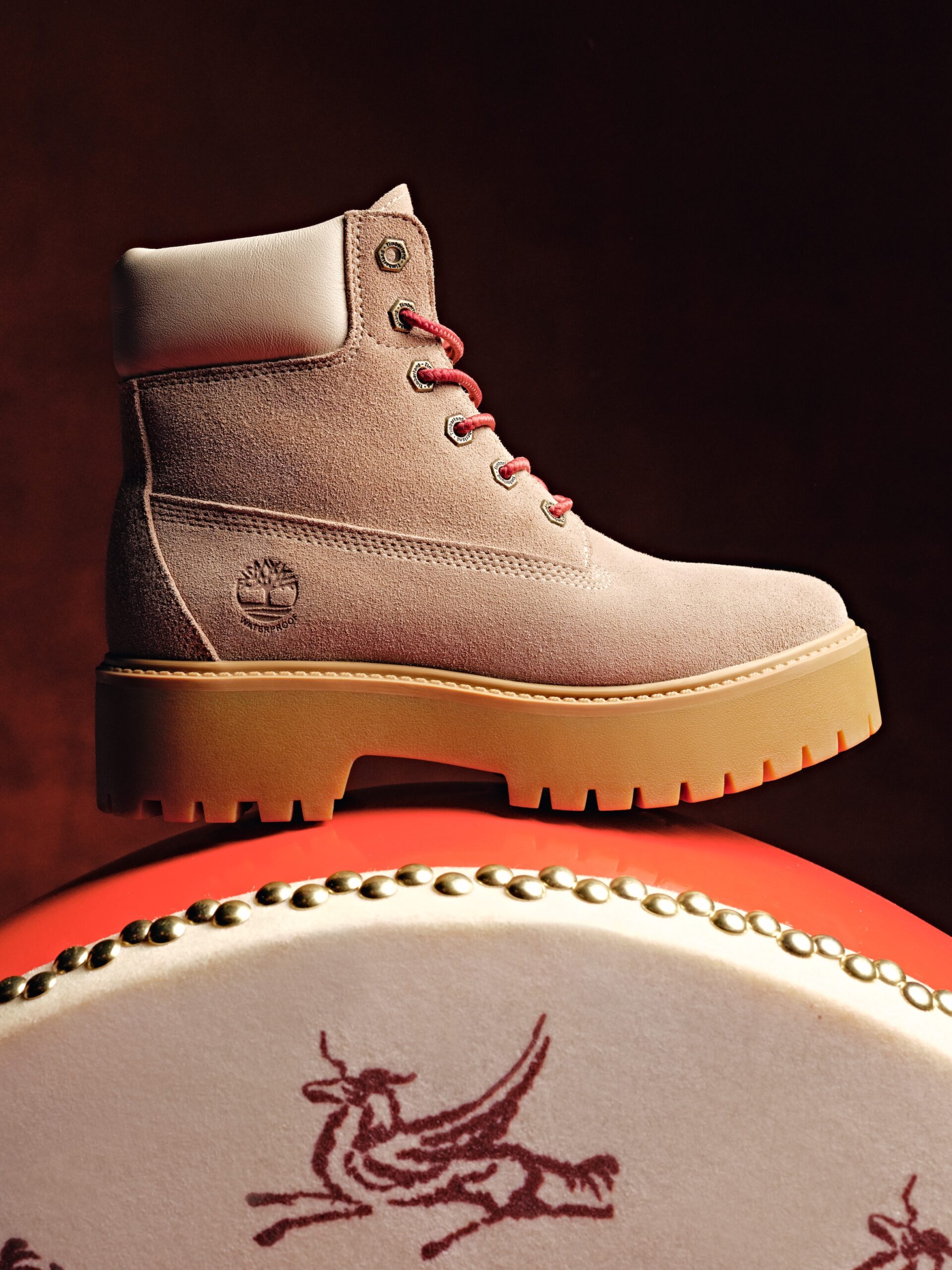 鞋履部分延续 Timberland 标志性的坚韧质感,以马年意象为设计线索,呼应马所代表的飒气与向前姿态。「新春踏福系列」六寸防水靴沿袭经典轮廓,甄选 Timberland® 防水皮革鞋面,并以节庆细节点缀设计,寓意马年昂扬向前的蓬勃势头。Stone Street 厚底防水靴则在稳健基底之上,注入更从容的造型表达,可替换双色鞋带为整体造型带来更多变化,呼应飞马奔赴新岁的轻盈气场。两款鞋履在不同风格取向中,共同呈现扎实稳定的脚感,让行走本身成为对「踏响新春」的直接回应。