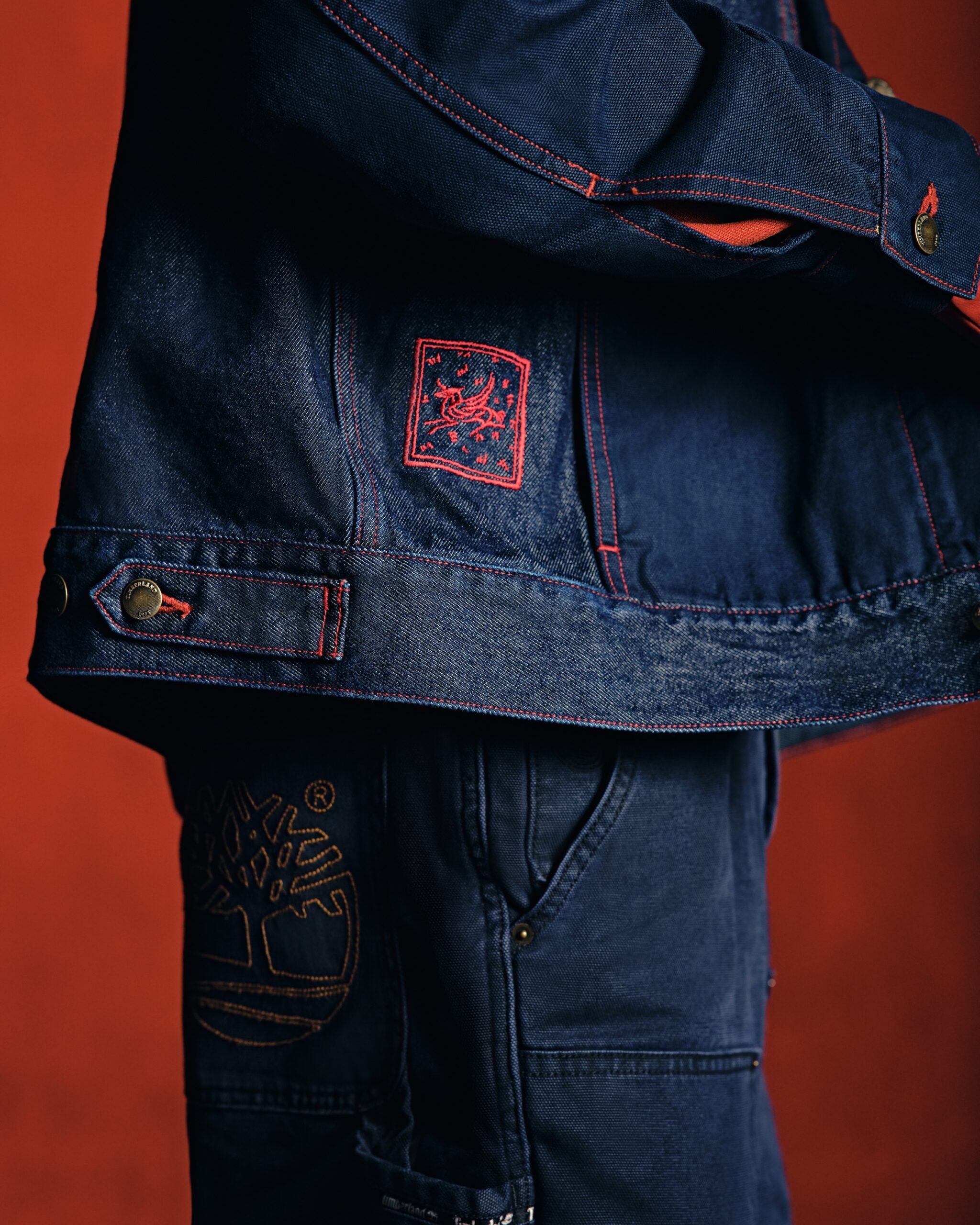 新春踏福系列服饰则将节日意象融入更贴近日常的穿着表达之中。牛仔外套延续 Timberland 标志性的工装风格,以红色缝线、金属纽扣与实用口袋等细节,低调呼应新春氛围,在实穿性与造型感之间取得平衡,成为节日相聚与日常出行皆可穿着的选择。印花卫衣与印花 T 恤以拓印图案作为视觉亮点,在舒适版型与轻松风格中注入新春气息,让节日表达回归日常穿搭本身。