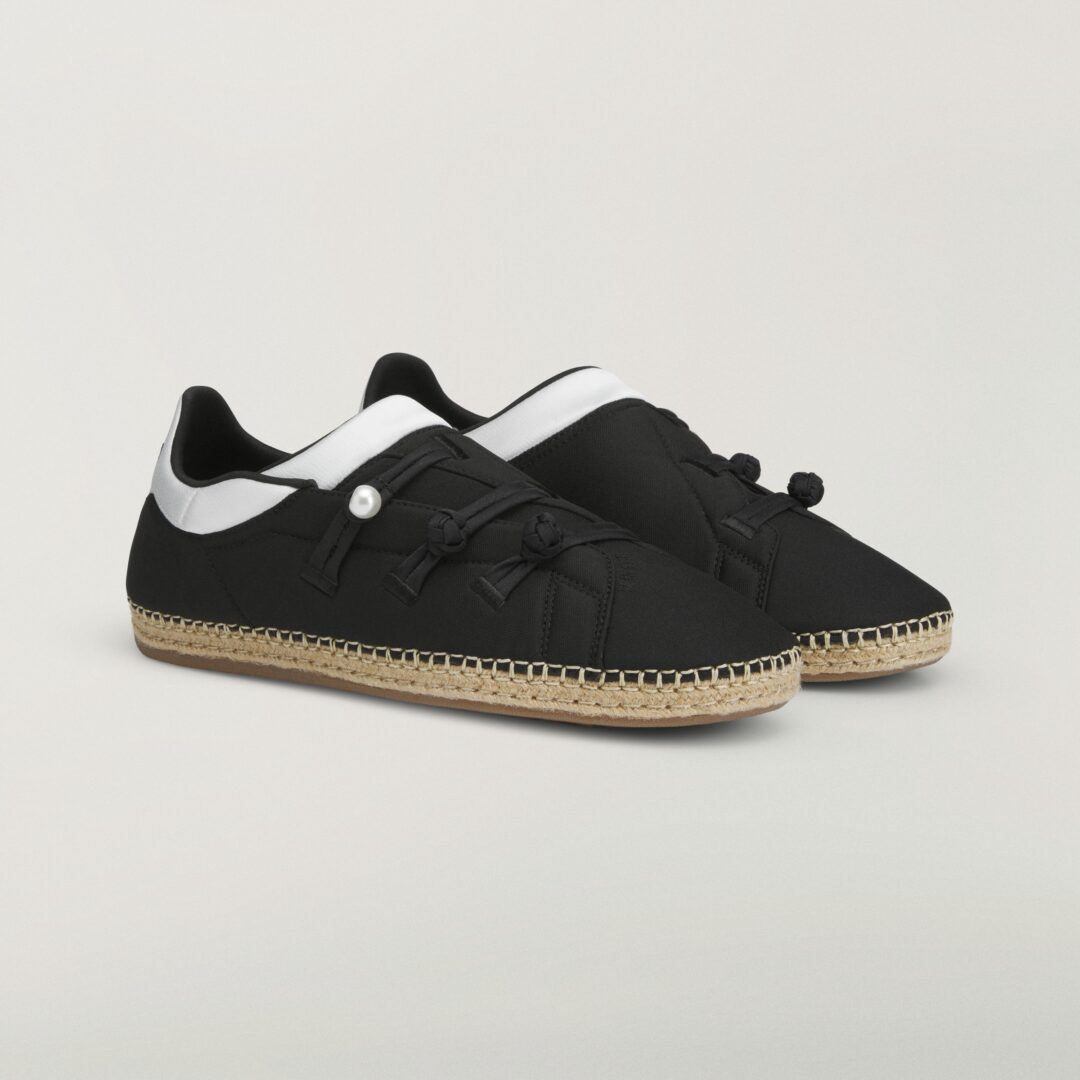 设计上,QI Flow 采用灵感源自传统草编鞋的 espadrille 风格鞋底结构,营造出轻盈、松弛的夏日氛围。鞋面则以类似拖鞋的包覆式构造呈现,并通过解构手法重组,选用黑色织物材质打造出层次分明却克制内敛的视觉效果,在舒适性与造型感之间取得平衡。