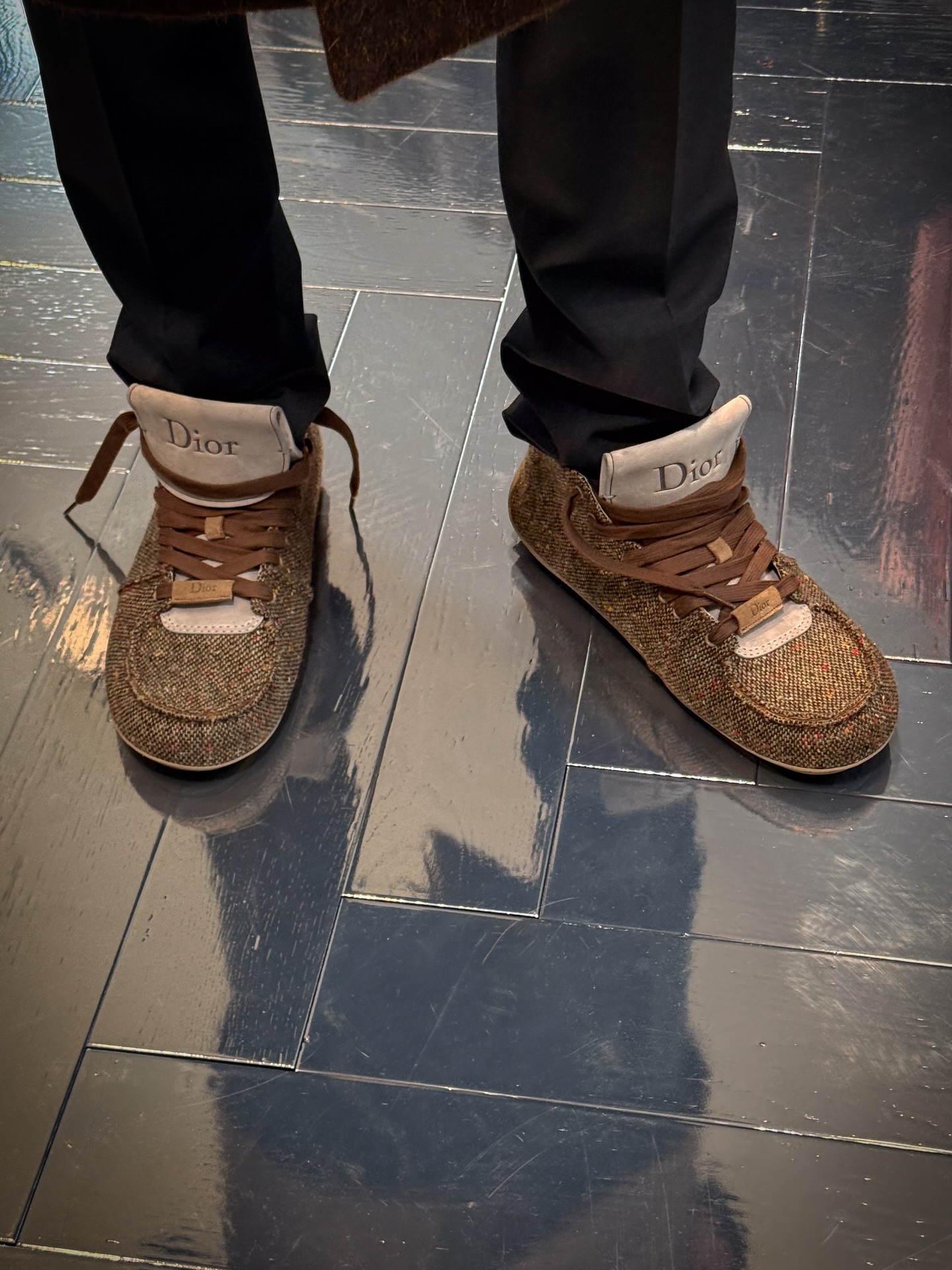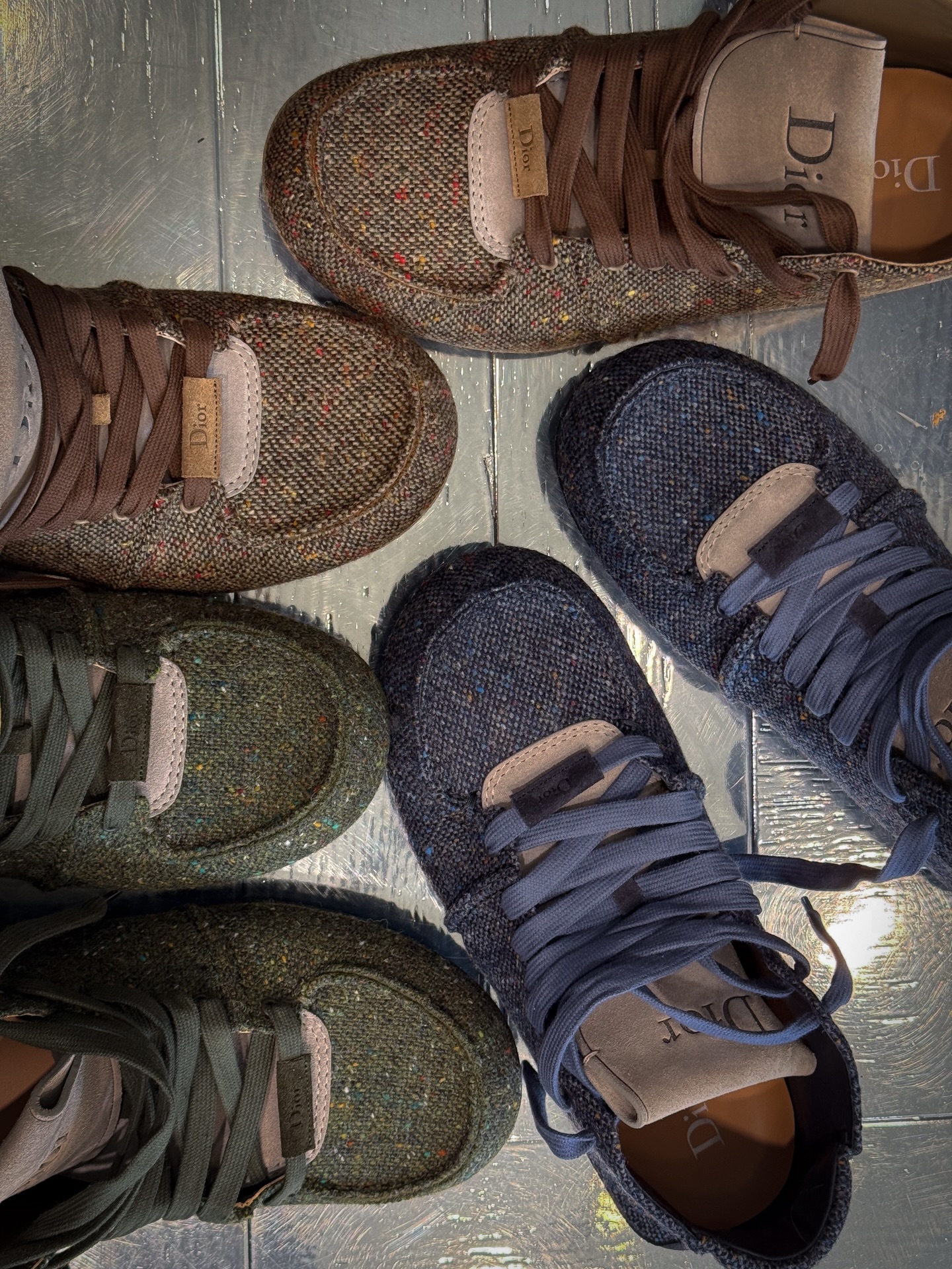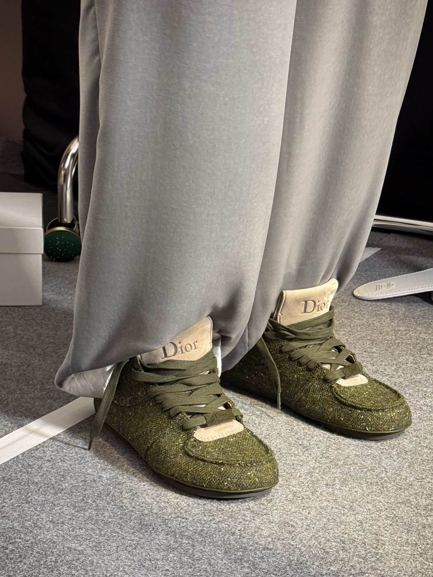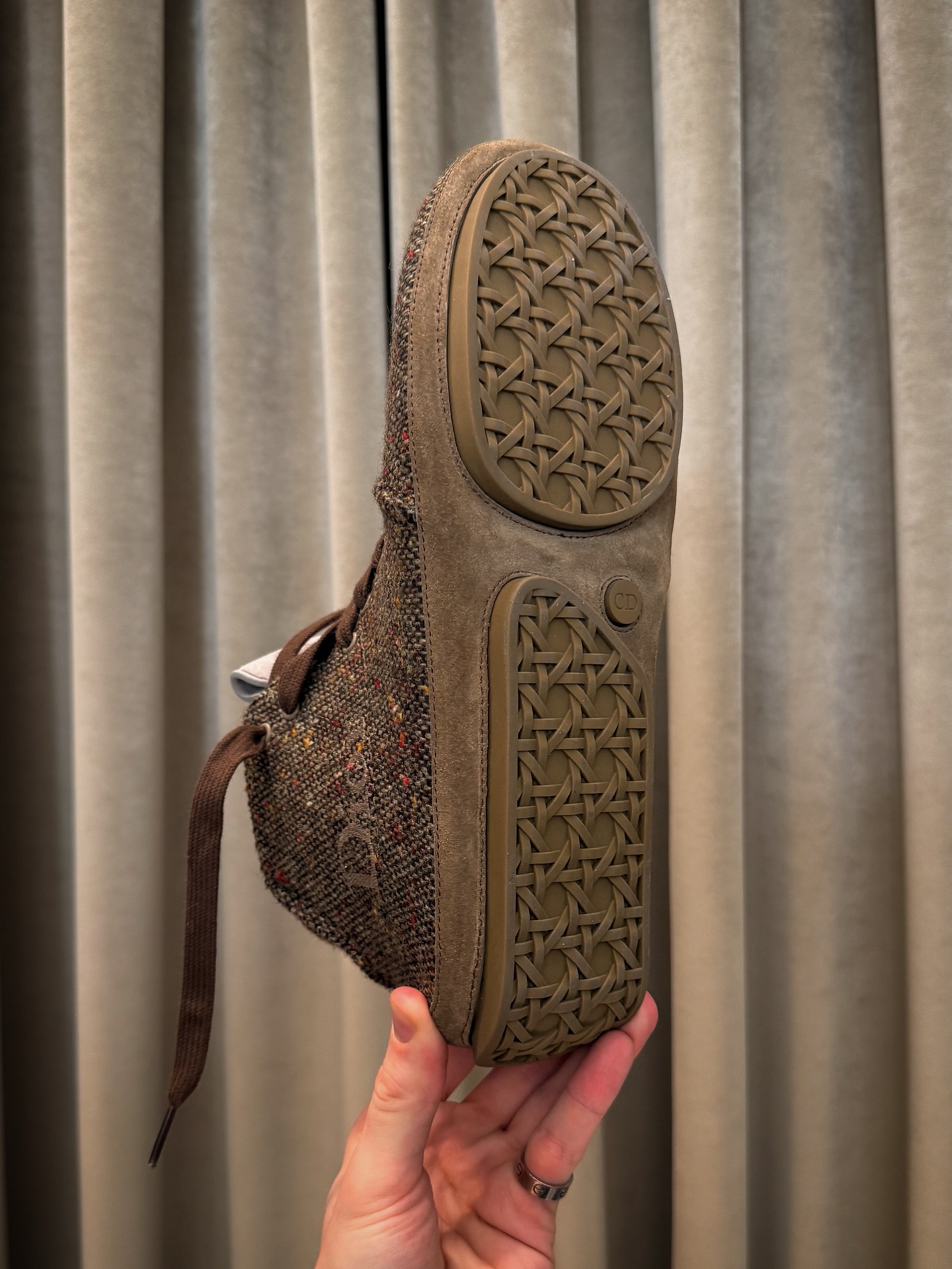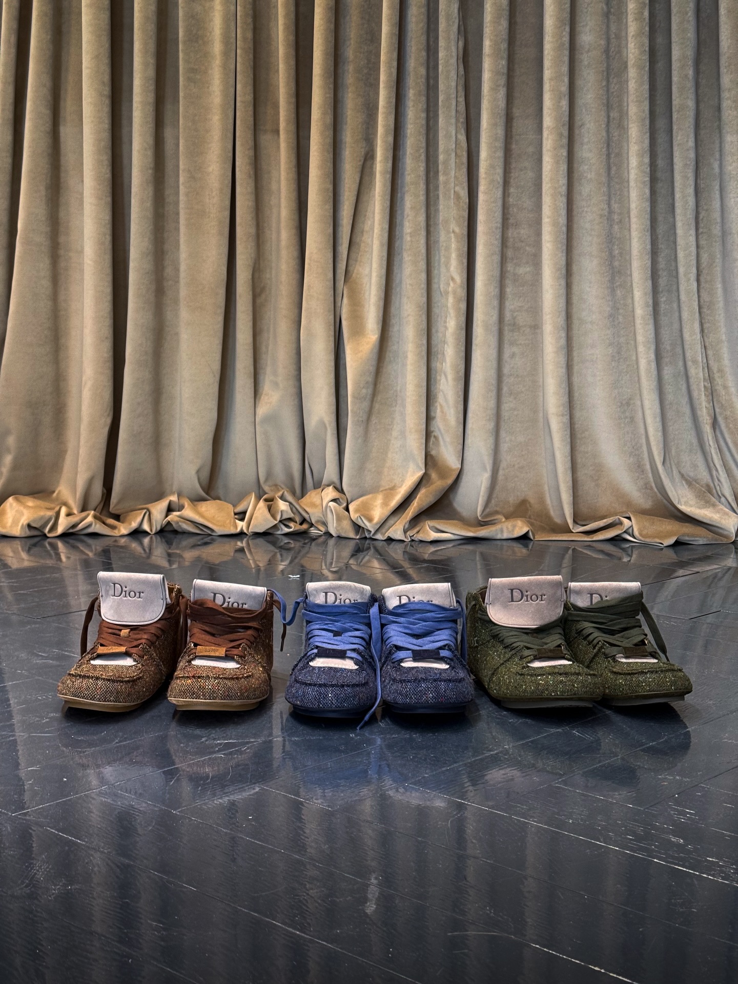 DIOR Roadie 是一款绑带靴式球鞋,夸张的鞋身比例搭配一体成形的圆筒状鞋底,勾勒出前卫而坚实的轮廓。首发版本以高级麂皮小牛皮与羊皮内里呈现,而此次曝光的后续款式则改用仿粗花呢质感鞋面,进一步强化材质表现力。这一变化亦呼应了 DIOR 先前提出「粗花呢将成为 2026 年关键趋势」的设计判断。