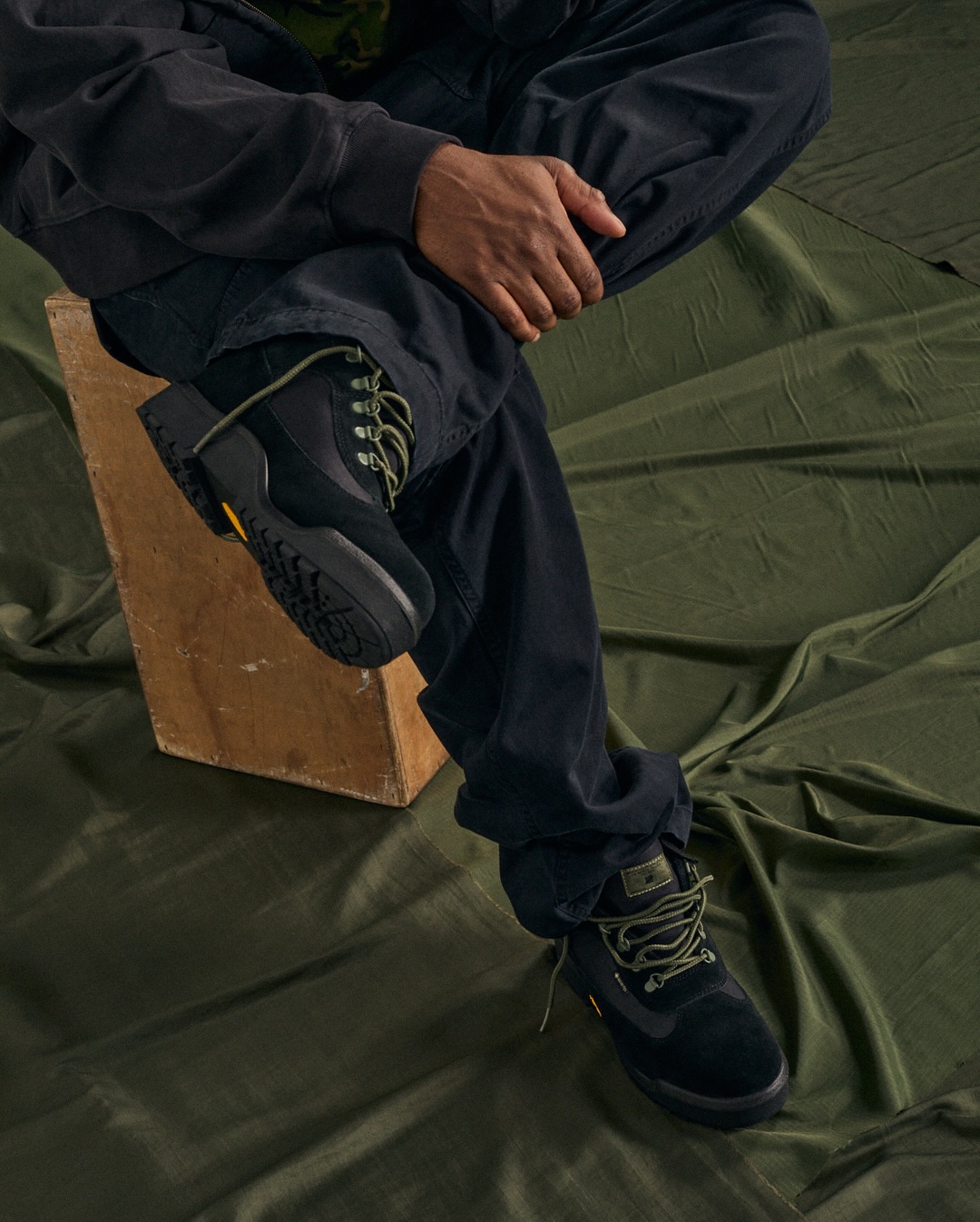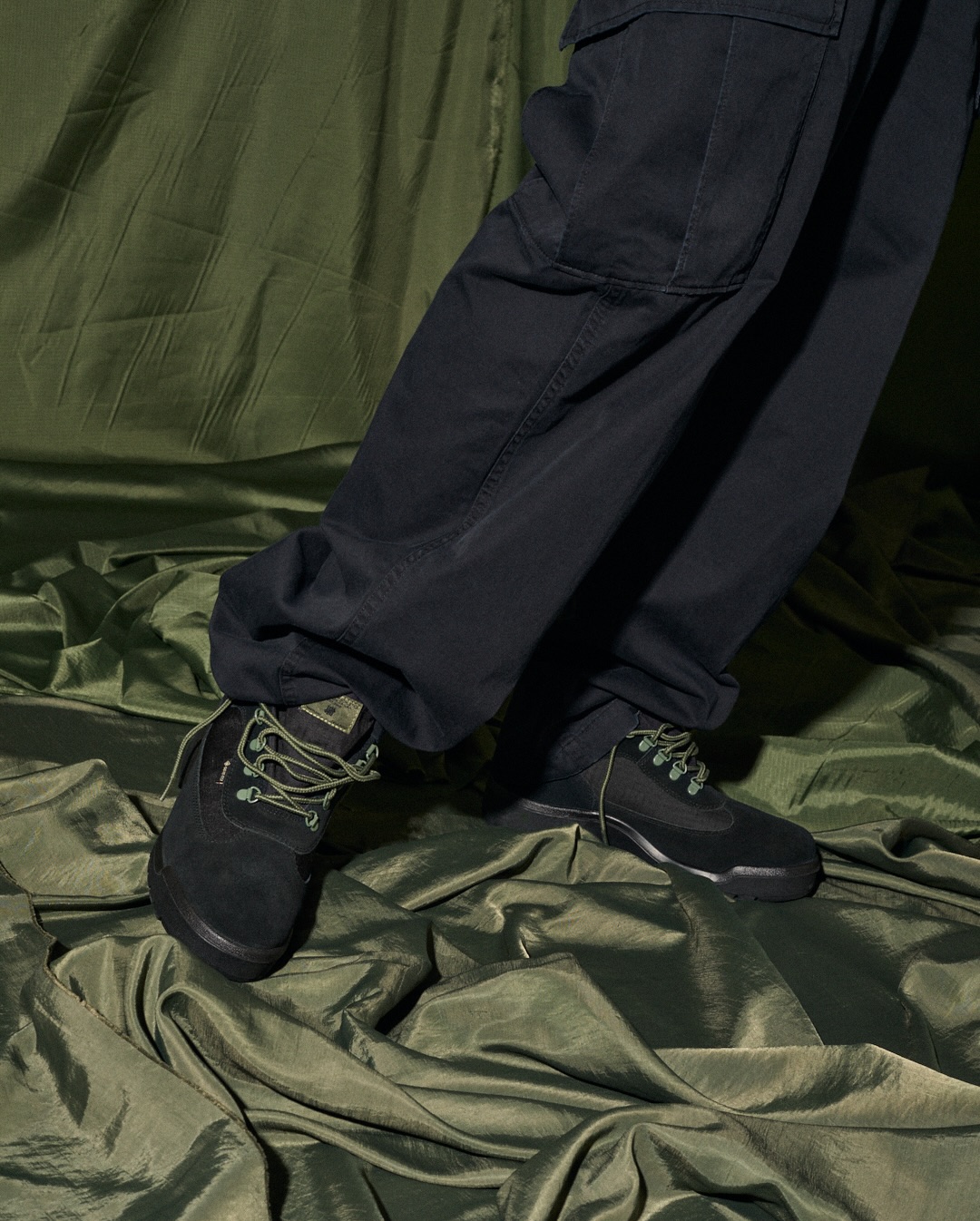 以 Timberland 的 Field Boot GTX 为蓝本,旨在提升户外运动性能,它采用 TimberDry 专利防水膜、Vibram 鞋底、加厚鞋领、玻璃纤维鞋芯、PrimaLoft® 保暖层以及 GORE-TEX® 技术,能够吸收冲击力并将其转化为能量。鞋面采用拼接设计,由黑色麂皮和耐用的防撕裂尼龙面料拼接而成。橄榄绿色的 D 形环和 UNDEFEATED 标志牌增添了一丝时尚气息,而编织鞋舌标签也同样引人注目。此次联名鞋款的代言人是说唱歌手兼制作人 IDK。UNDEFEATED 将于 1 月 31 日在 UNDEFEATED SHIBUYA、UNDEFEATED OSAKA 以及 UNDEFEATED 官方线上商店发售该联名鞋款。