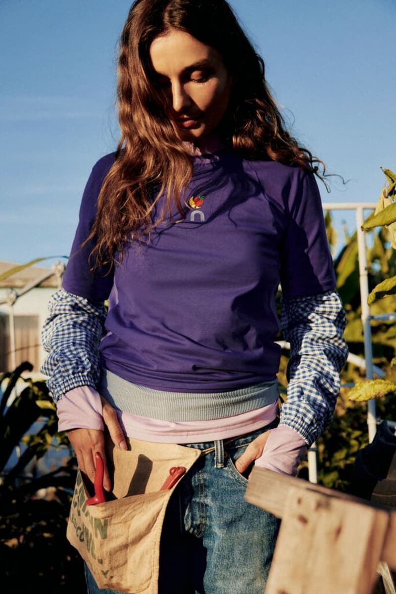 在设计层面,联名系列以「功能性剪裁」与「可持续材质」为核心,结合农场工作服与户外装备的结构灵感,呈现出松弛却具力量感的轮廓。配色上大量采用贴近自然的低饱和色调,如土壤棕、植物绿与柔和灰阶,并辅以象征生长与循环的图形元素与手写字体标识,呼应 SHFG 所倡导的「食物公平」与土地意识。细节处理上,则通过加固缝线、模块化口袋与可调节结构,强化日常穿着与运动场景之间的切换可能。