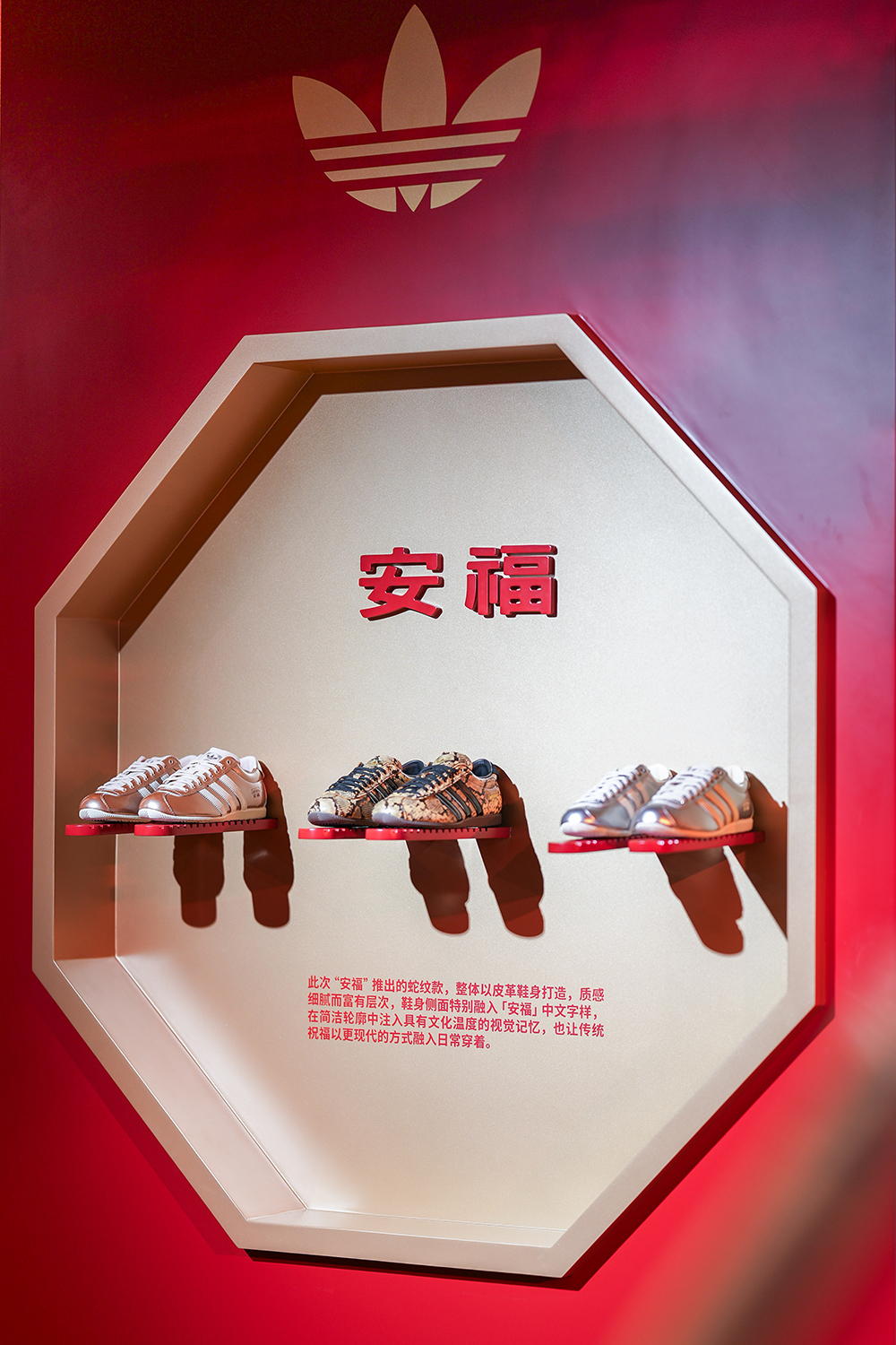 除了精彩互动,活动现场的沉浸式体验同样吸睛。adidas Originals 2026 新春系列新品集中亮相,包括由中国本土设计的「安福」、「CHANGLE」鞋款。CLOT CNY 联名产品专区更让潮流爱好者近距离感受跨界魅力。