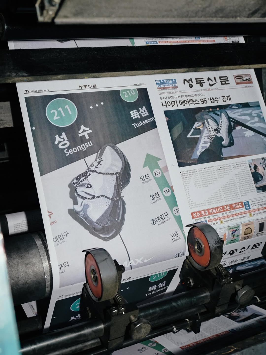 作为 Nike Air Max 95「City Pack」 系列的一部分,Nike 以首尔最具创意活力的街区之一——圣水洞(Seongsu) 为灵感打造的 Air Max 95 Big Bubble「Seongsu」,将于 2 月 8 日 正式发售。为纪念这双鞋的推出,同时也呼应圣水洞深厚的在地文化,迎来创刊 25 周年 的《城东新闻》在当天的报纸版面中特别刊登了这次球鞋发售的信息,并随报附赠面向本地社区的专属优惠券,将球鞋文化与城市生活紧密连接。
