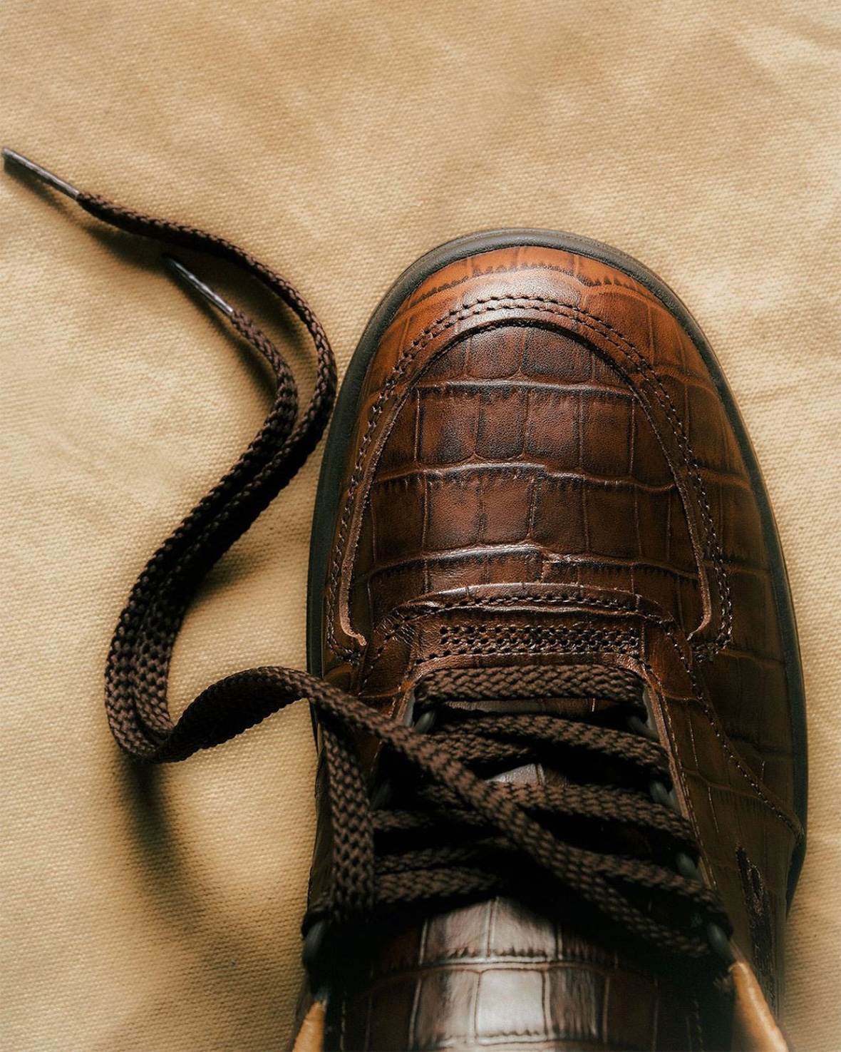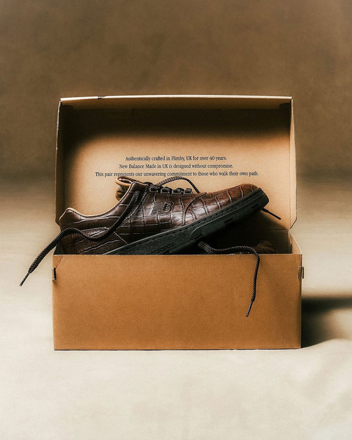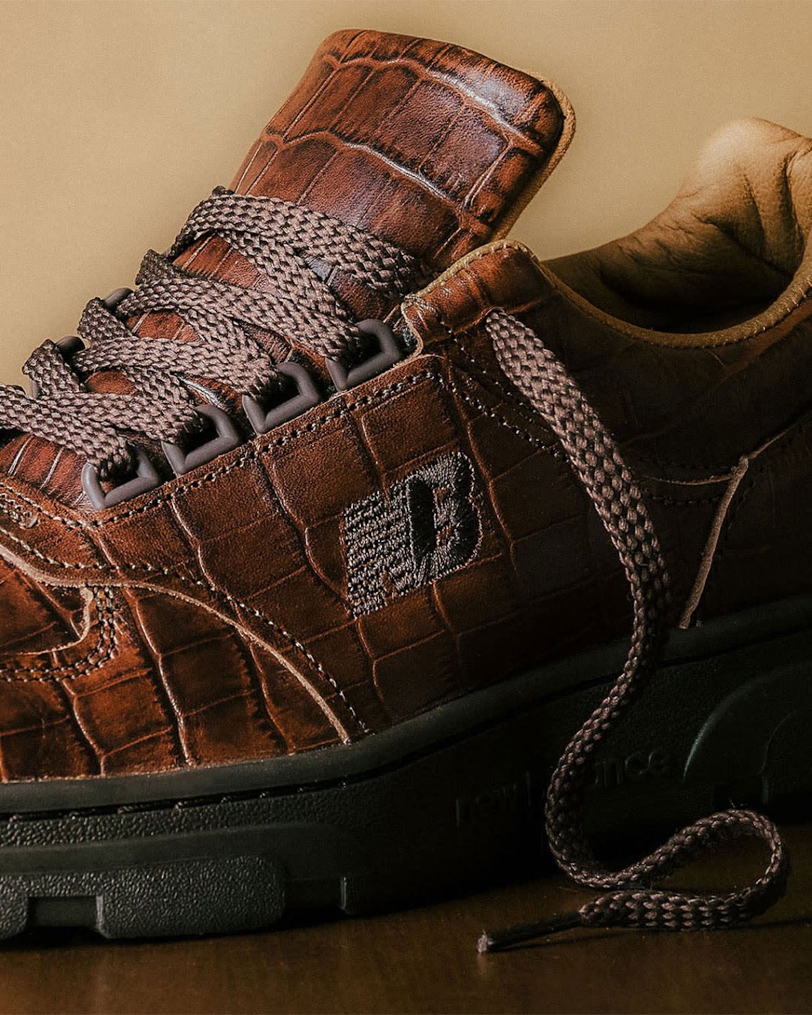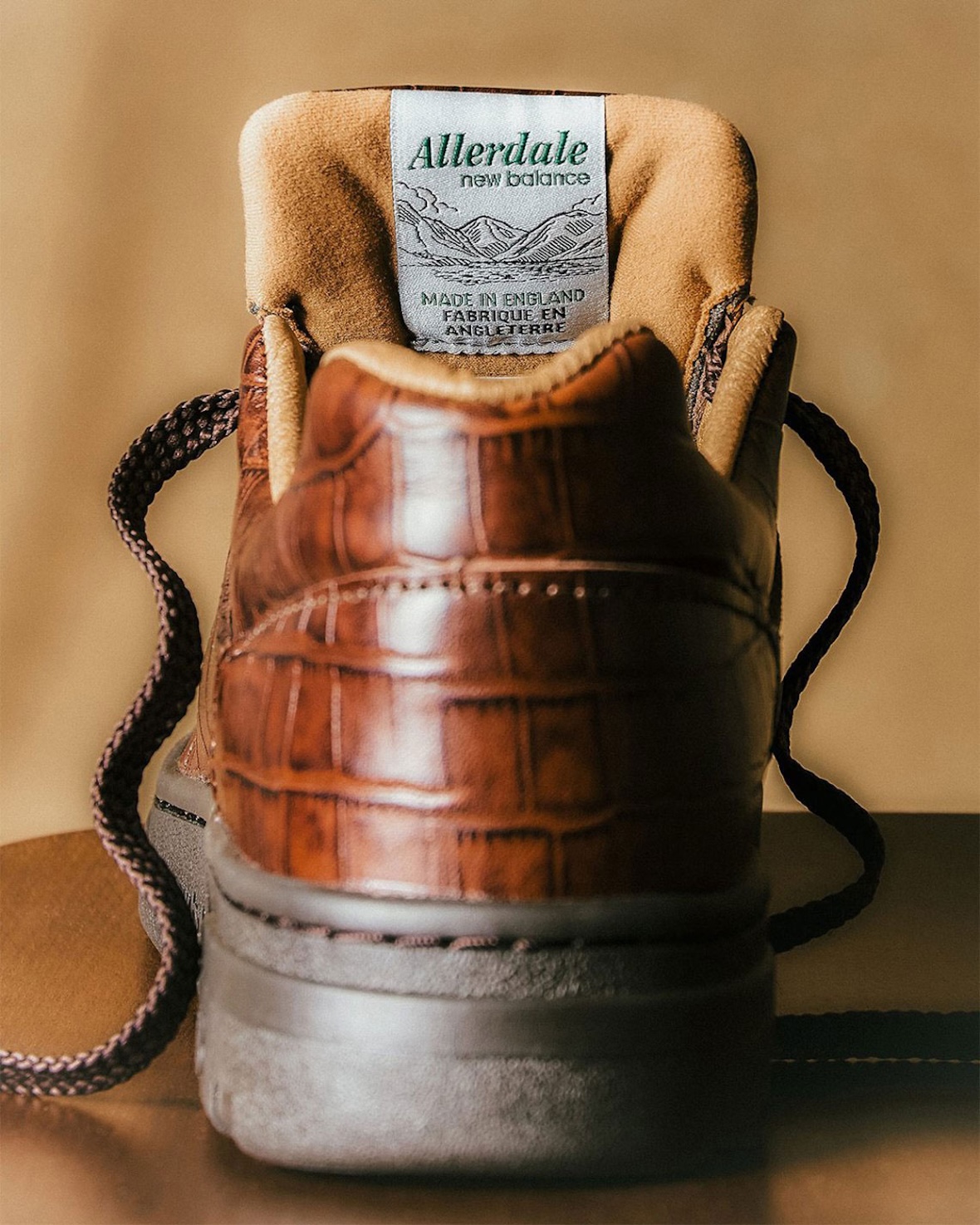 近日,New Balance 携手 END. 推出全新 Allerdale 鞋款,采用深棕色鳄鱼纹压花皮革打造,将精湛的英国制鞋工艺与高端质感完美融合。鞋面压花图案呈现细腻光泽,搭配粗绳鞋带与棕褐色皮革内衬,细节处尽显奢华格调。深灰色鞋底增添日常实用性,鞋舌标签致敬品牌在弗林比的悠久传统。据悉该鞋款现已在 END. 开启抽签,并将于 3 月 6 日正式发售,限量 280 双,伦敦顾客还可享受 LATYA Art 提供的个性化定制服务。