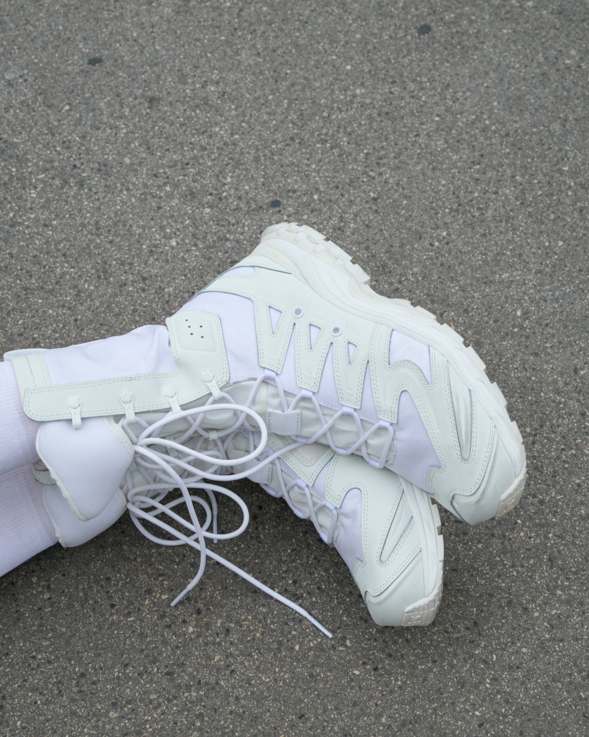 「源于民俗,典藏新生」,本次合作从提洛尔民俗文化(Tyrolean Folklore)中提取节庆元素,并以 RIER 品牌的时尚视角,以现代化的方式重新诠释优雅与实用性并存的山地文化。XA JUNGLE RIER功 能性战术靴款从阿尔卑斯民俗庆典中的及膝羊毛袜中汲取灵感,将光学白(Optical White)配色贯穿全鞋,并通过高筒鞋帮设计及传统系带系统向高山民俗的着装习俗致以深情敬意。XA PRO 3D鞋款同样以通体光学白色呈现,象征着纯净与庆典氛围,为都市生活增添仪式感,打造实用的长期主义现代造型。