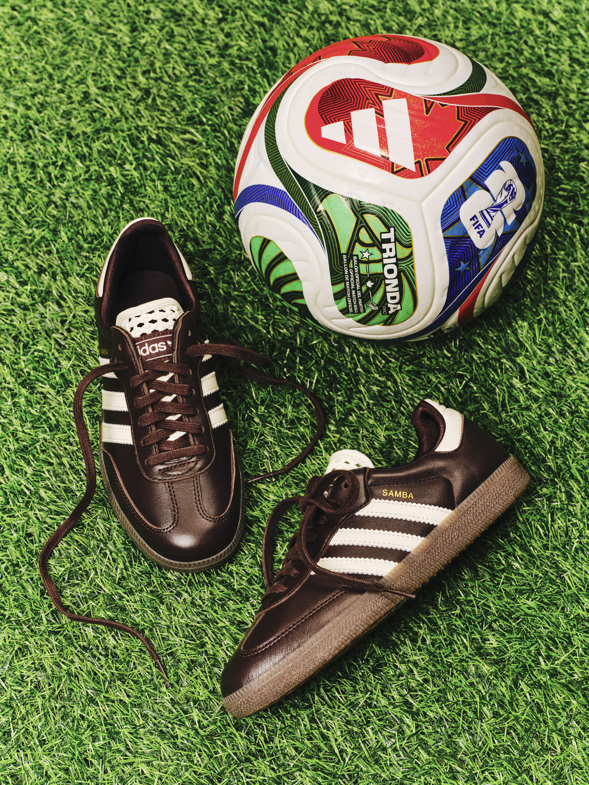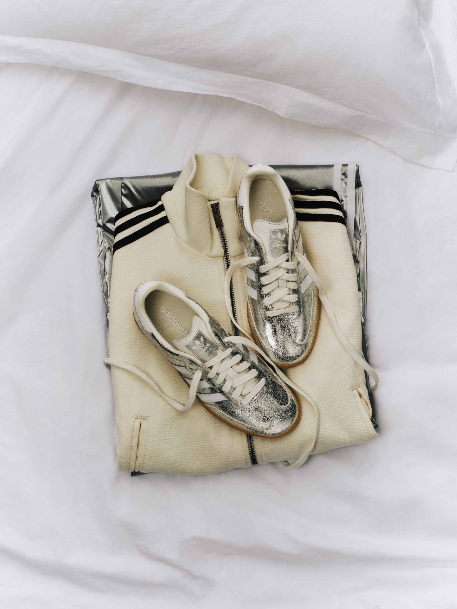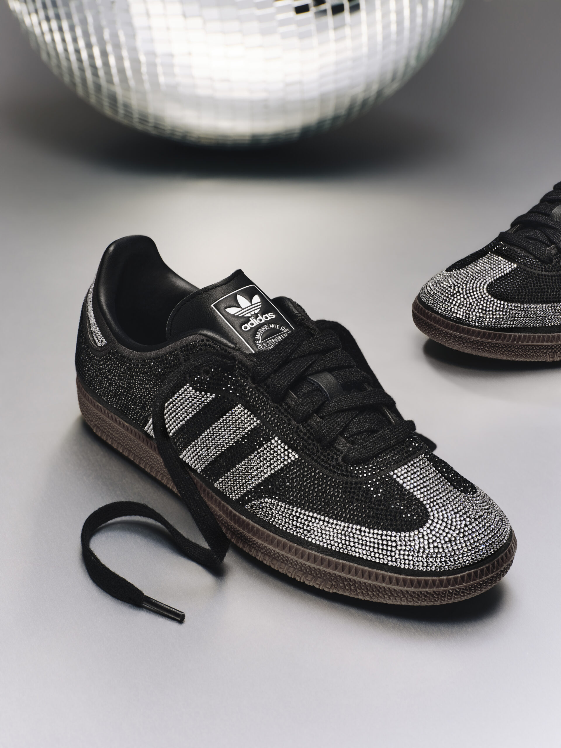 本季 Samba 围绕不同元素展开焕新演绎,多样化设计语言让这一经典轮廓在通勤、约会、旅行或城市漫步等不同场景中自然切换——既可以成为造型焦点,也能低调融入日常搭配,真正实现毫不费力的百搭属性:灯芯绒三条纹与金属鞋眼等细节的加入,为整体造型注入复古与精致并存的质感;亮眼元素的点缀在光线流转之间释放细腻光芒,多一分灵动表达;仿动物纹理与仿马毛材质的运用强化鞋面层次与触感,增添个性张力;仿皮革结合钩织鞋舌的拼接处理,融入复古手作气息;金属感鞋面带来利落未来感光泽;仿珍珠细节的点缀,则在运动基因中增添一抹优雅。