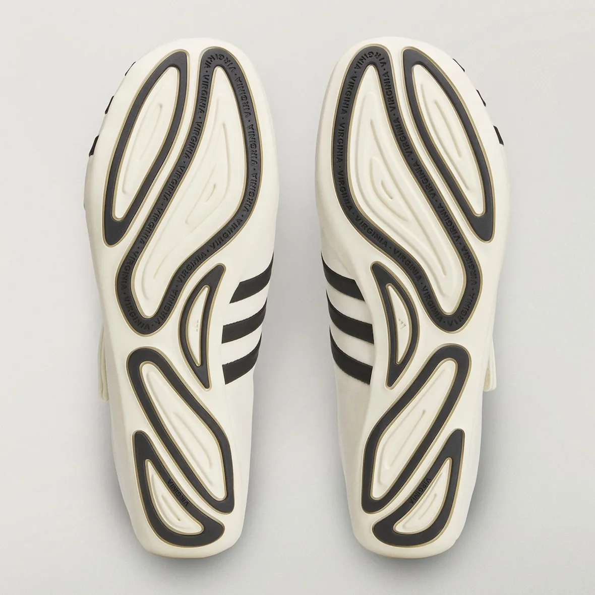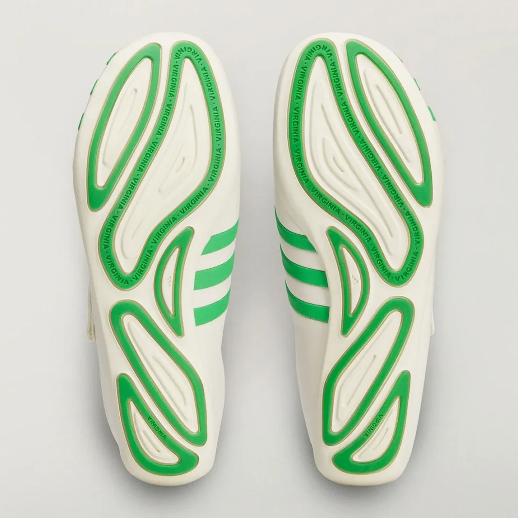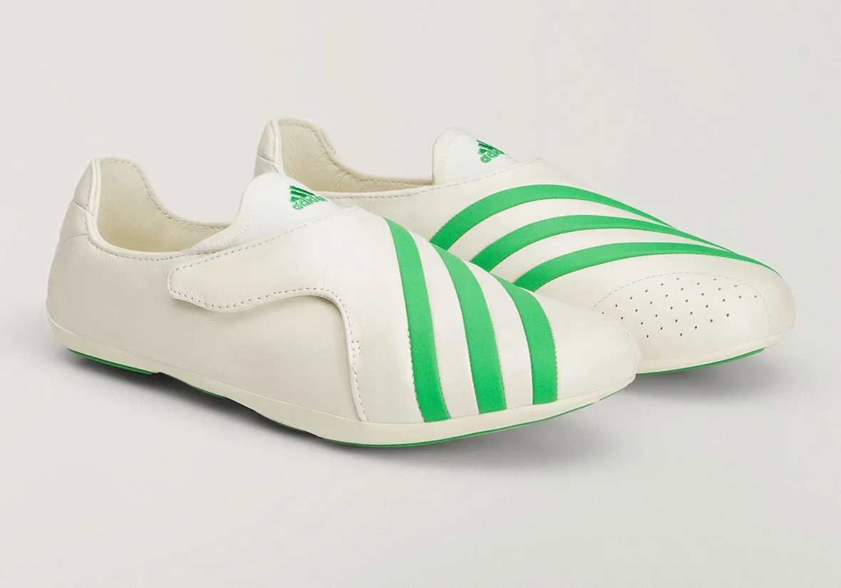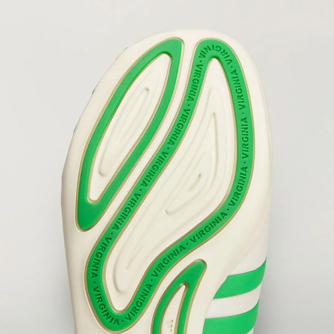 Pharrell Williams 与 adidas 开展新一轮以「Virginia」为名的特别项目。一款名为 adidas Vario Flat Earther 的新鞋款已有实物图曝光。这款鞋设计非常简洁,以柔和的奶白色为主色调,灵感似乎是源自足球鞋,采用超薄中底,鞋面是由一整块皮革制成,鞋面在鞋头处以类似魔术贴绑带的结构包裹起来,亮眼的绿色三条纹从内侧足弓延伸至外侧脚趾处。此外,新的合作应该还有另外三款新鞋,但目前的预览图只给出鞋底部分,其中一款的鞋底与此前推出的 Jellyfish 鞋款非常相似,有可能只是推出新配色,但其余两款大概率是新型号。更多信息敬请期待我们后续的跟踪报道。