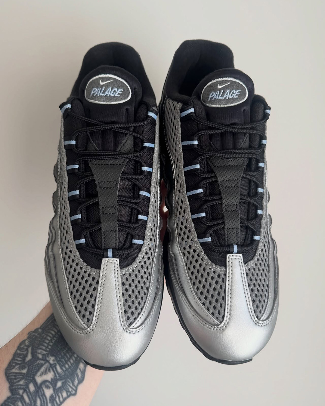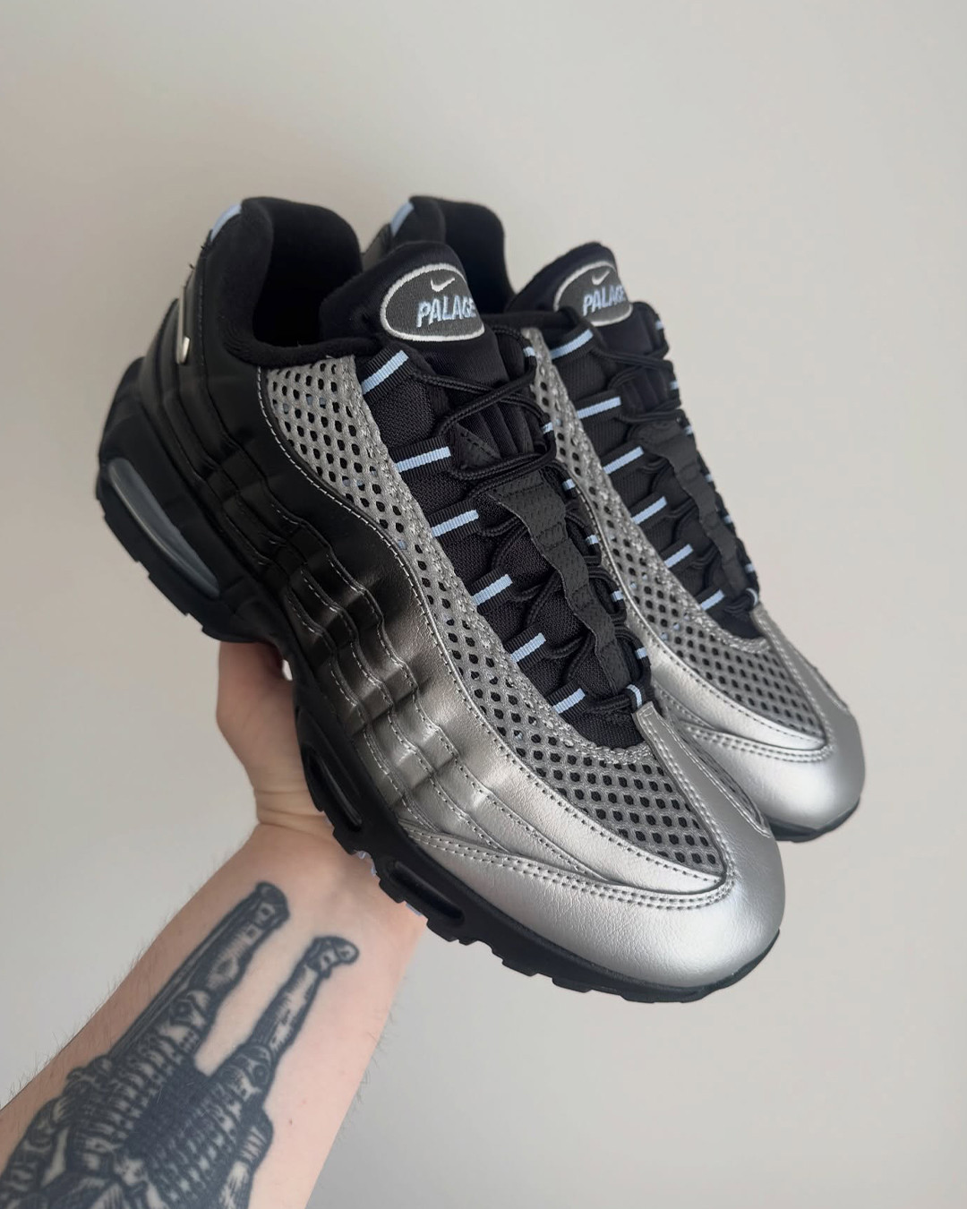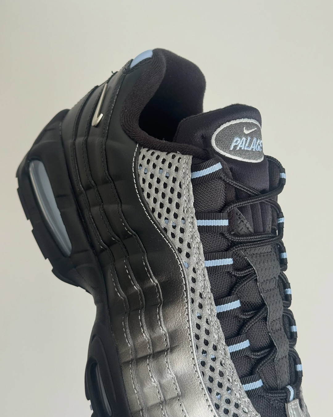 PALACE 与 Nike 再度联手,在此前「P90」系列之后开启第二波合作,此次将经典鞋型 Air Max 95 作为全新创作载体。这双联名版本采用银色渐变至黑色的鞋面设计,营造出层次分明的视觉效果,同时在鞋带孔、鞋舌、外底、气垫以及后跟等细节处点缀浅蓝色元素,并融入 PALACE 标志性符号。除鞋款外,本次合作还将同步推出服饰单品,包括连帽卫衣与运动裤等。据悉该系列有望于 4 月 10 日正式登场,感兴趣的话不妨持续关注。