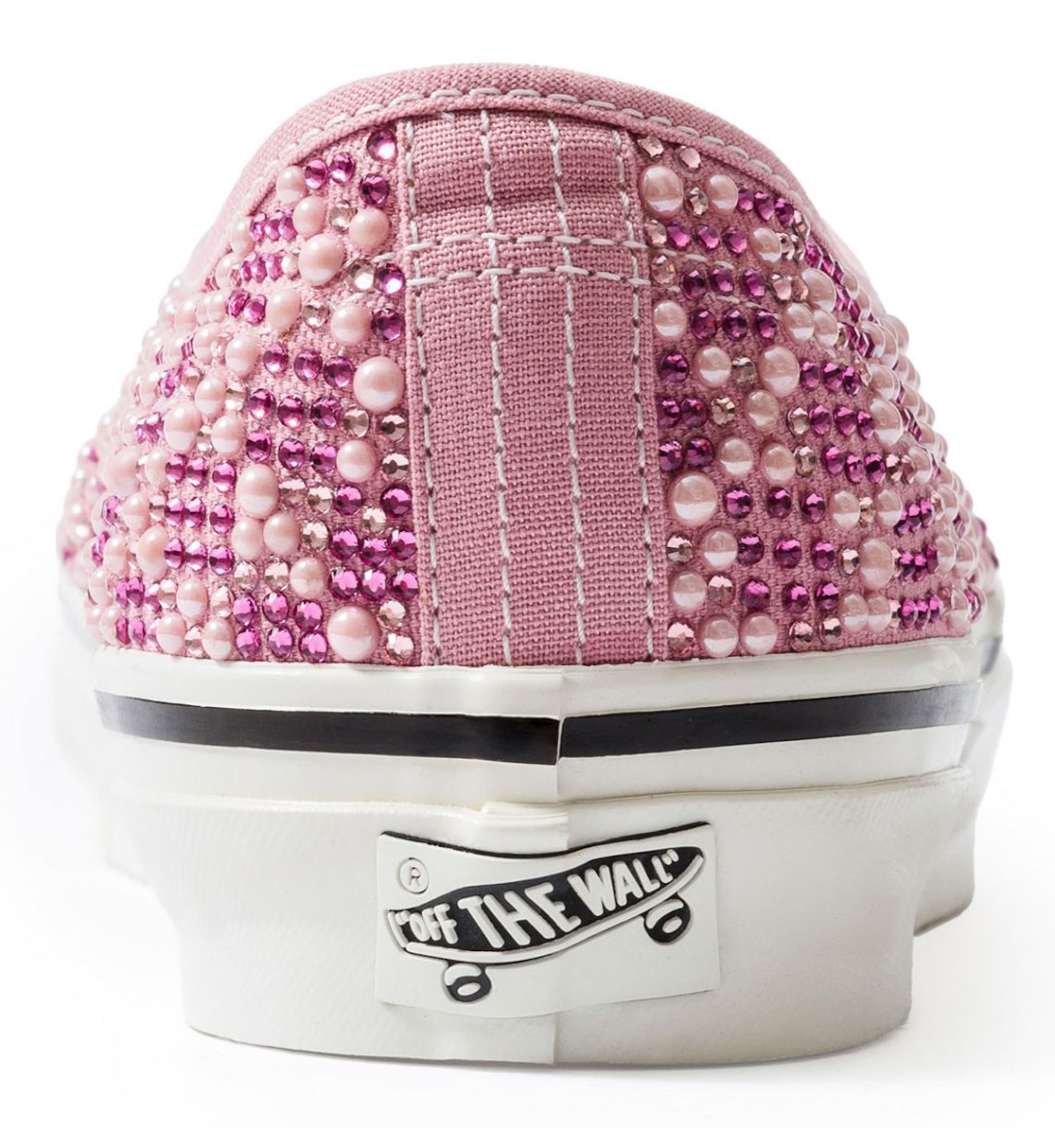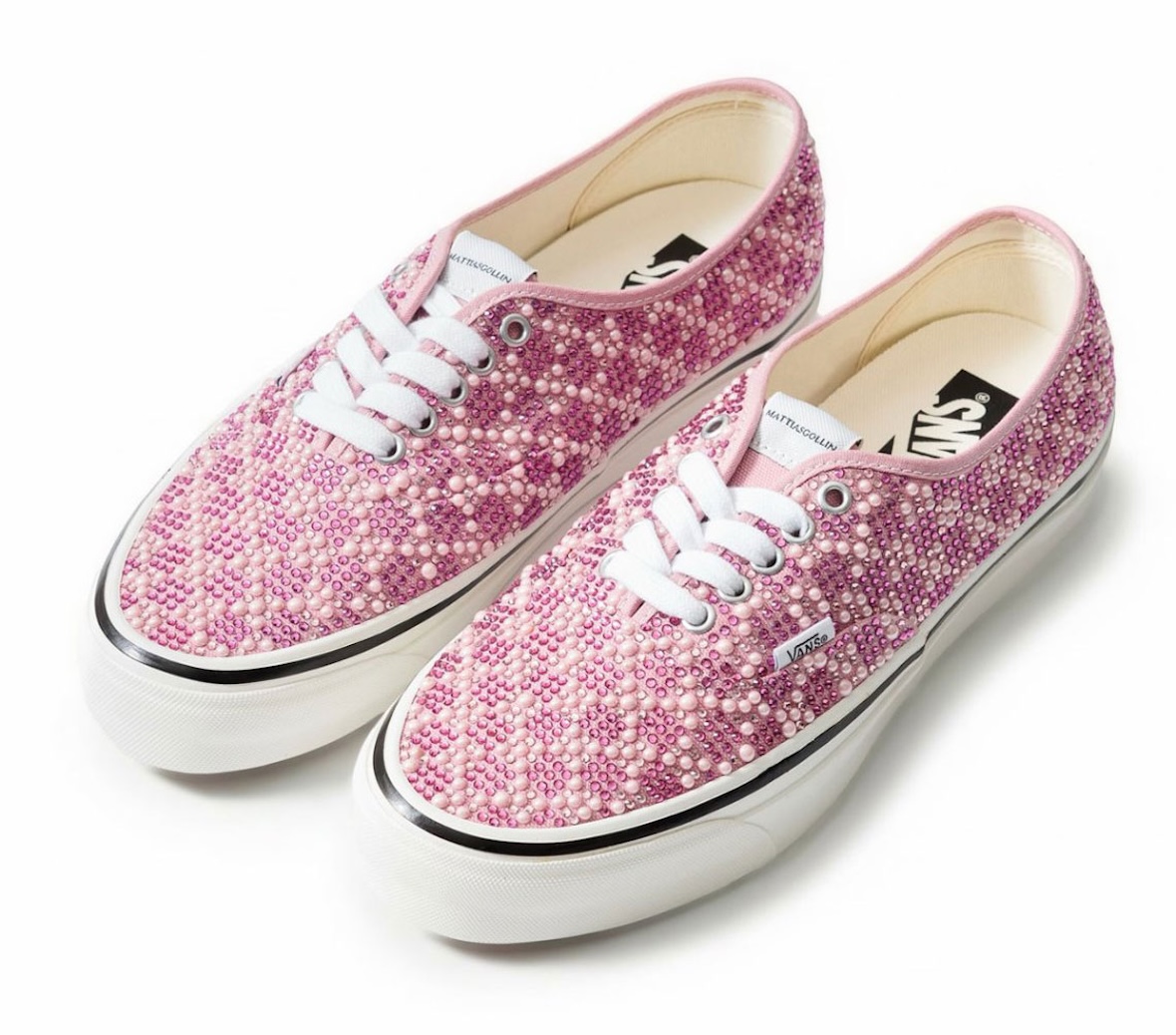 近日,Mattias Gollin 携手 Vans 推出联名鞋款 Authentic「Rosetta」。该鞋款以经典滑板鞋型为基底,鞋面粉色帆布上密集缀满珍珠与水钻,大小与色调的层叠变化呈现手工镶嵌般的闪耀质感。白色鞋带、银色鞋眼与粉色饰边平衡整体视觉,米白色中底与后跟标识保留 Vans 原始轮廓。据悉该鞋款将于复活节周日(4 月 5 日)下午 3 点(欧洲中部时间)在 mattiasgollin 官网限量发售。