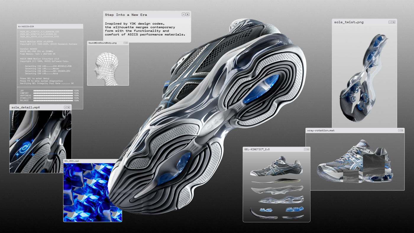 从融合了科技与未来主义的 Y3K 设计语言中汲取灵感,GEL-KINETIC 2.0 将现代感廓形设计与 ASICS 亚瑟士高性能材料的实用功能巧妙结合,重新定义鞋履的未来感风格表达,契合年轻一代的先锋态度。在设计细节上,品牌以极具现代感的 PU 材质取代了 ASICS 亚瑟士 2000 年代经典跑鞋中标志性的合成皮革。在致敬品牌标志性设计的同时,勾勒出焕然一新的现代潮流风格。不止于简单的复古回潮,该鞋款更是一次基于品牌二十载科技积淀的全新演绎。