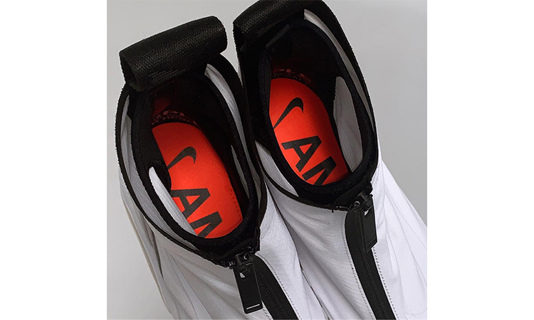 昨日 Yoon Ahn 才刚为大家展示了 AMBUSH x Nike 联名系列中的部分单品,两面穿的绿色夹克相当夺人眼球。然而没想到今天还有惊喜等着我们,另一款 AMBUSH x Nike Air Max 180 也正式曝光。从仅有的图片来看,这款联名球鞋被重新赋予了白色靴套式设计,鞋面由黑色拉链代替系带;橙色的鞋垫上则印有显眼的联名标识。有消息称 AMBUSH x Nike 联名系列将于 12 月正式登场,但目前还未有具体的官方消息,各位还请密切留意我们的后续报道。