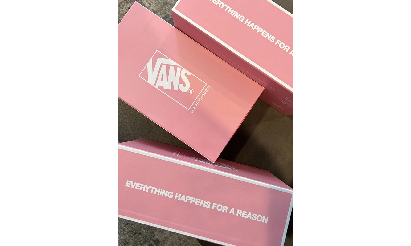 在凭借早先打造的多款作品收获关注后,Joe Freshgoods 如今已经成为 New Balance 最受消费者期待的合作对象之一,而如今 Joseph Robinson 还将带着它的品牌开启新篇章,迎来另一个重磅合作——Vans。日前,其通过自己的 Instagram Stories 展示出了一组 Vans 鞋盒,除了标志性的玫瑰粉色外,更标有「EVERYTHING HAPPENS FOR A REASON」字样,这或许会是此次合作的灵感主题?不妨让我们一起期待更多消息。
