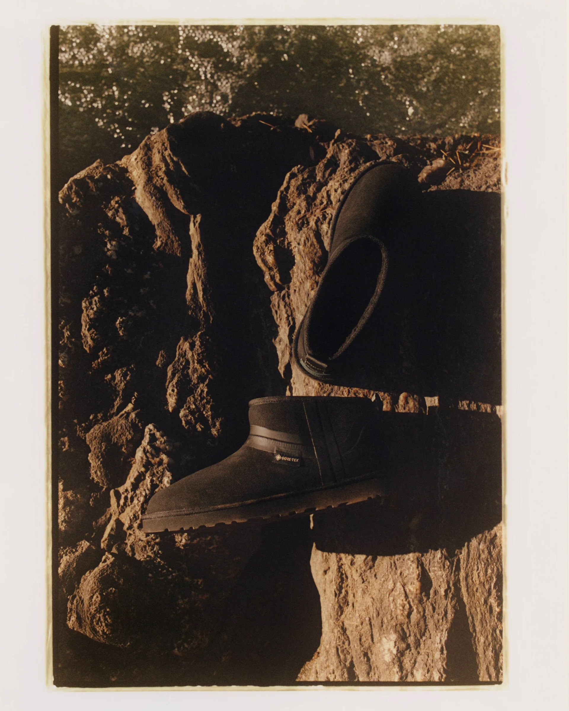 近日,UGG® 携手洛杉矶机能美学设计师 Reese Cooper 推出 Classic Mini 与 Ultra Mini 双版本联名靴。设计延续 Reese Cooper 对美式户外基因的解构,激光切割透气孔模拟岩石肌理,橡胶锯齿外底则是凸显荒野基因。Classic Mini 采用 CORDURA® UltraLite 防水面料打造,鞋口弹性调节系统实现松紧自定义,提供三款大地色调选择;Ultra Mini 融合 GORE-TEX 内衬与拒水纺织鞋面,以双色极简廓形适配多地形场景。据悉该合作鞋款将于 4 月 11 日登陆 UGG® 官网,感兴趣的朋友不容错过。