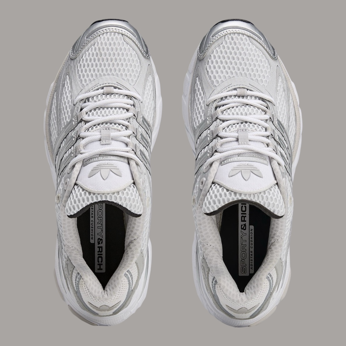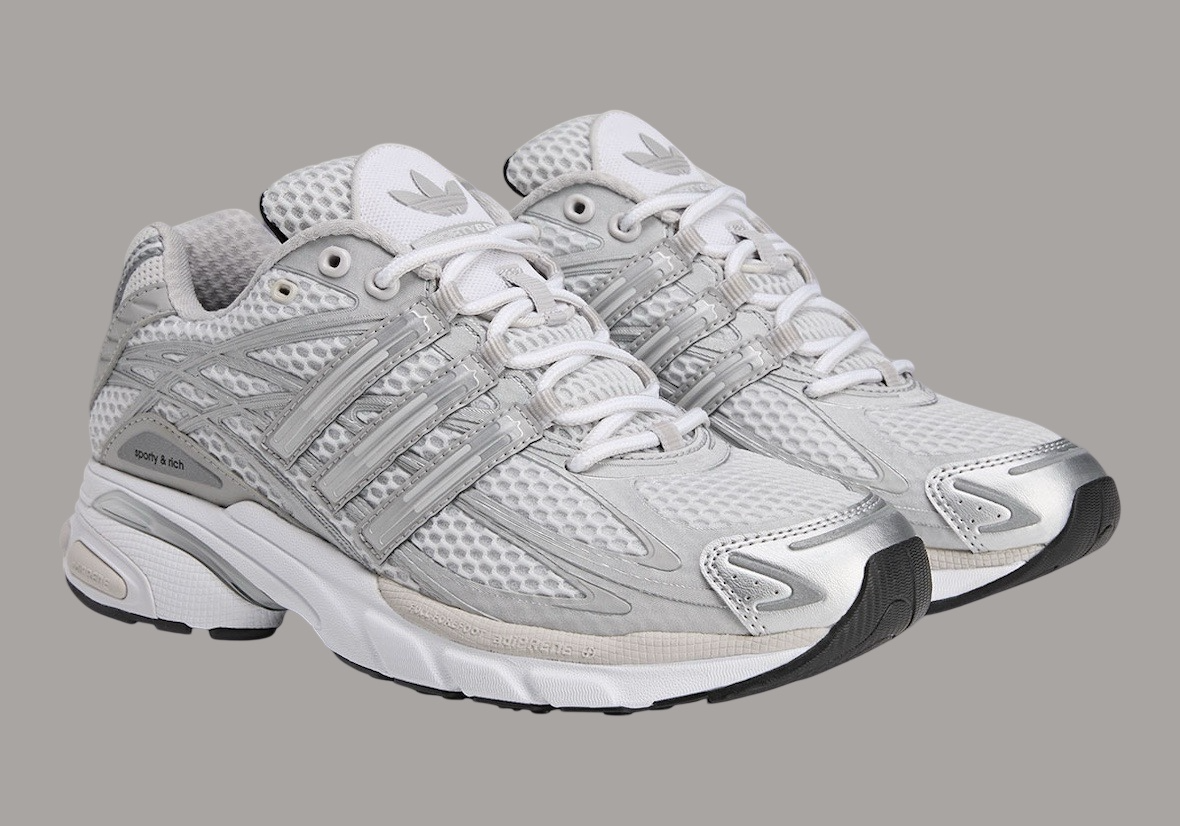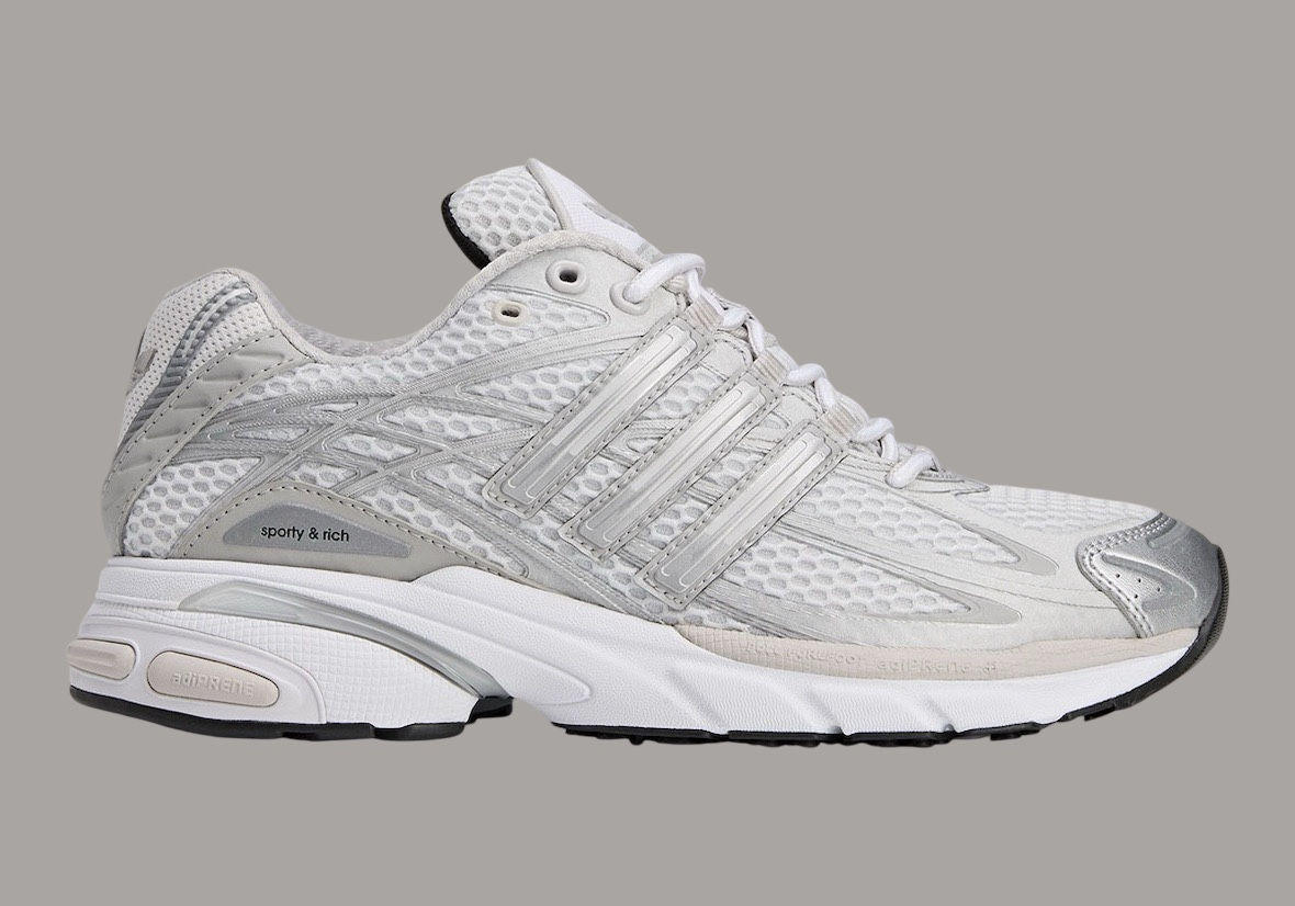 Sporty & Rich 再度携手 adidas,带来全新 Adistar Cushion 联名鞋款。本次设计摒弃品牌一贯偏爱的复古艳色,转而以极简手法诠释千禧年美学风貌。鞋面采用白色透气网布,辅以银色覆层与 adidas 标志性三线细节,Sporty & Rich 品牌标志则点缀于鞋舌、鞋跟与鞋垫之上,强化联名身份。黑色外底与鞋舌内衬形成鲜明对比,进一步突显层次。据悉,该鞋款将于 5 月 2 日率先登陆 Sporty & Rich 官网及纽约门店,5 月 5 日起通过 CONFIRMED 及全球指定零售渠道发售,各位不妨瞩目。