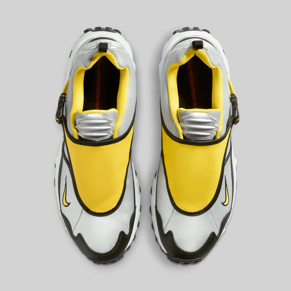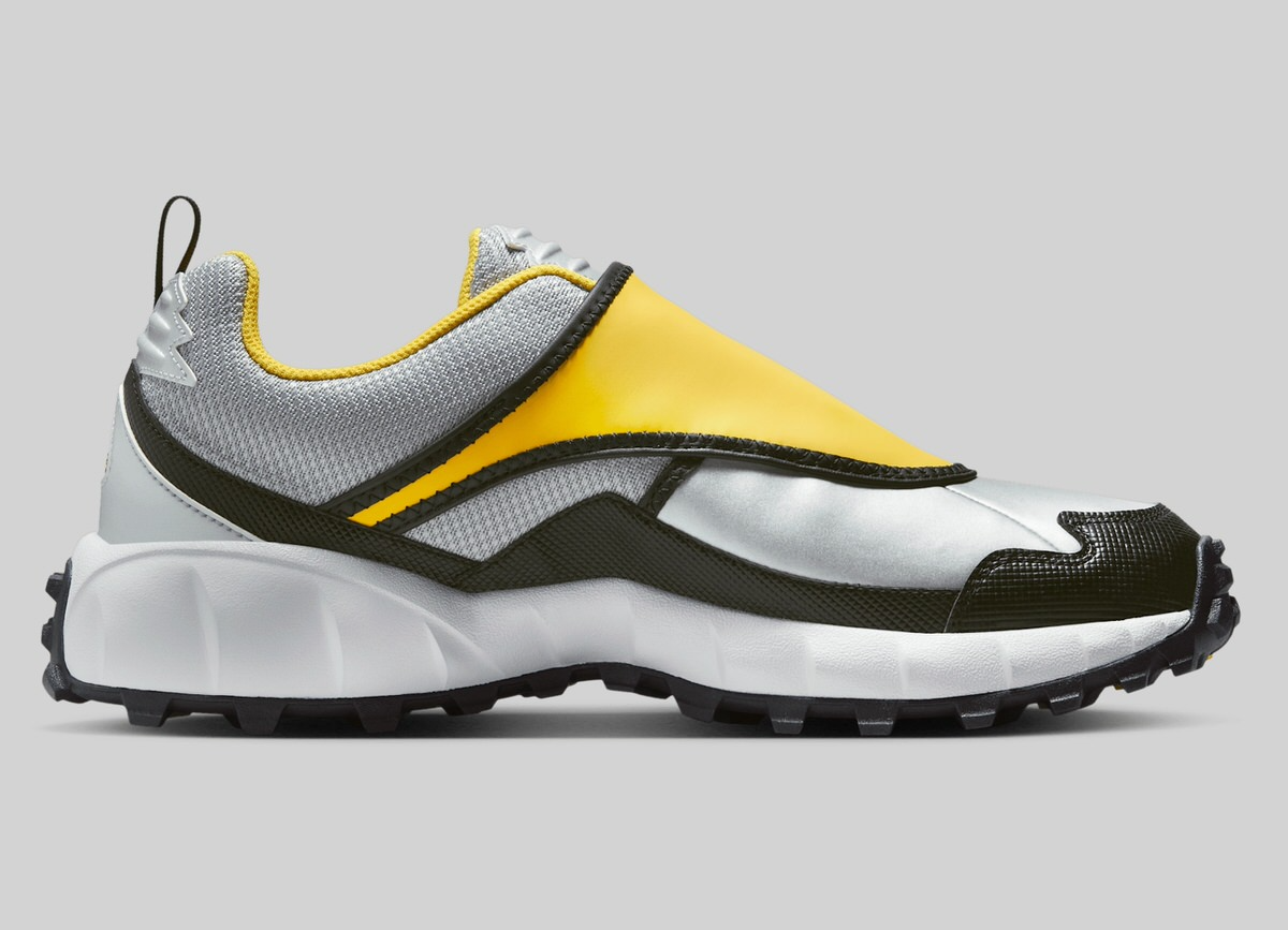 而曝光的首个复刻版本忠实还原了 2000 年代初期的经典配色,以鲜明的黄色 Velcro 覆盖层与银色鞋面形成强烈对比,整体灵感来源于帐篷结构,采用防水且耐磨的合成材质,兼顾都市与户外场景下的实用性能的同时,也与近年由 ROA 等品牌引领的户外鞋款审美不谋而合。同时,黑色轮廓线与橡胶材质点缀鞋身,进一步强化视觉层次感与耐用性。细节处如鞋头处的橡胶补强与侧面扣具系统,也忠实保留了原版的功能设定。但目前仍旧未有确切的发售日期被透露,感兴趣的朋友不妨持续保持关注。