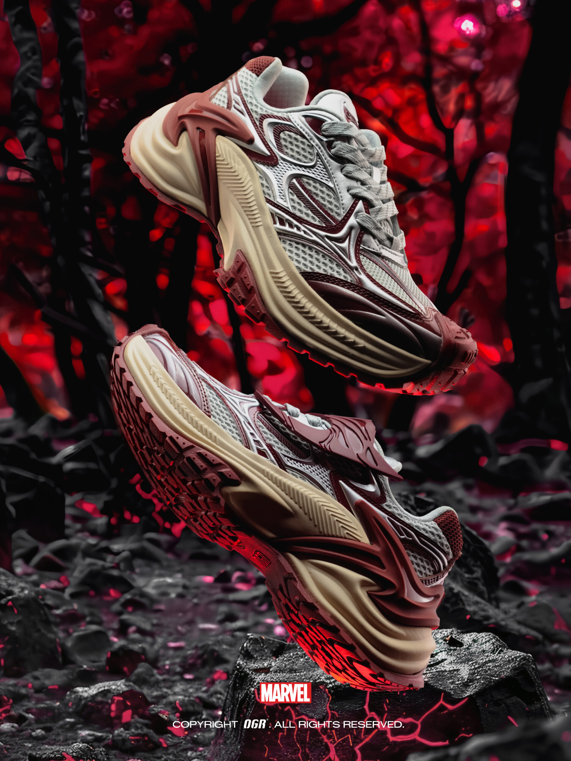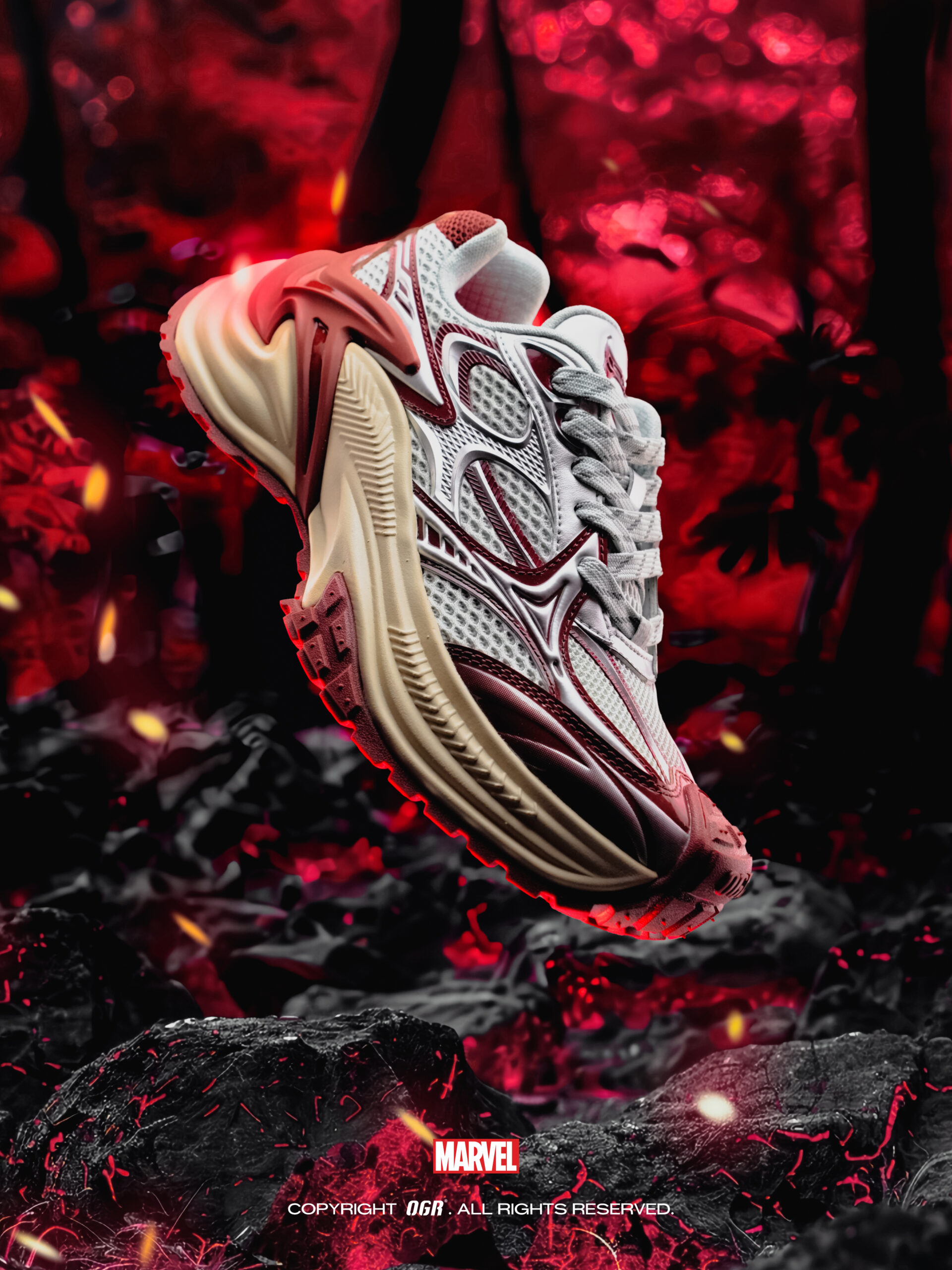 英雄从来不是标签,而是敢于颠覆规则的态度。 作为先锋性的硬核潮流文化品牌,OGR 始终以「打破常规,重构潮流」为核心理念,此次与漫威的联名不仅是产品创新与升级,更是对潮流文化与英雄精神的融合诠释。未来 OGR 将持续解锁更多漫威英雄主题鞋款,以硬核潮流为载体,重构硬核全宇宙,助力每一个新时代的潮流青年,穿上英雄之力,颠覆想象边界。