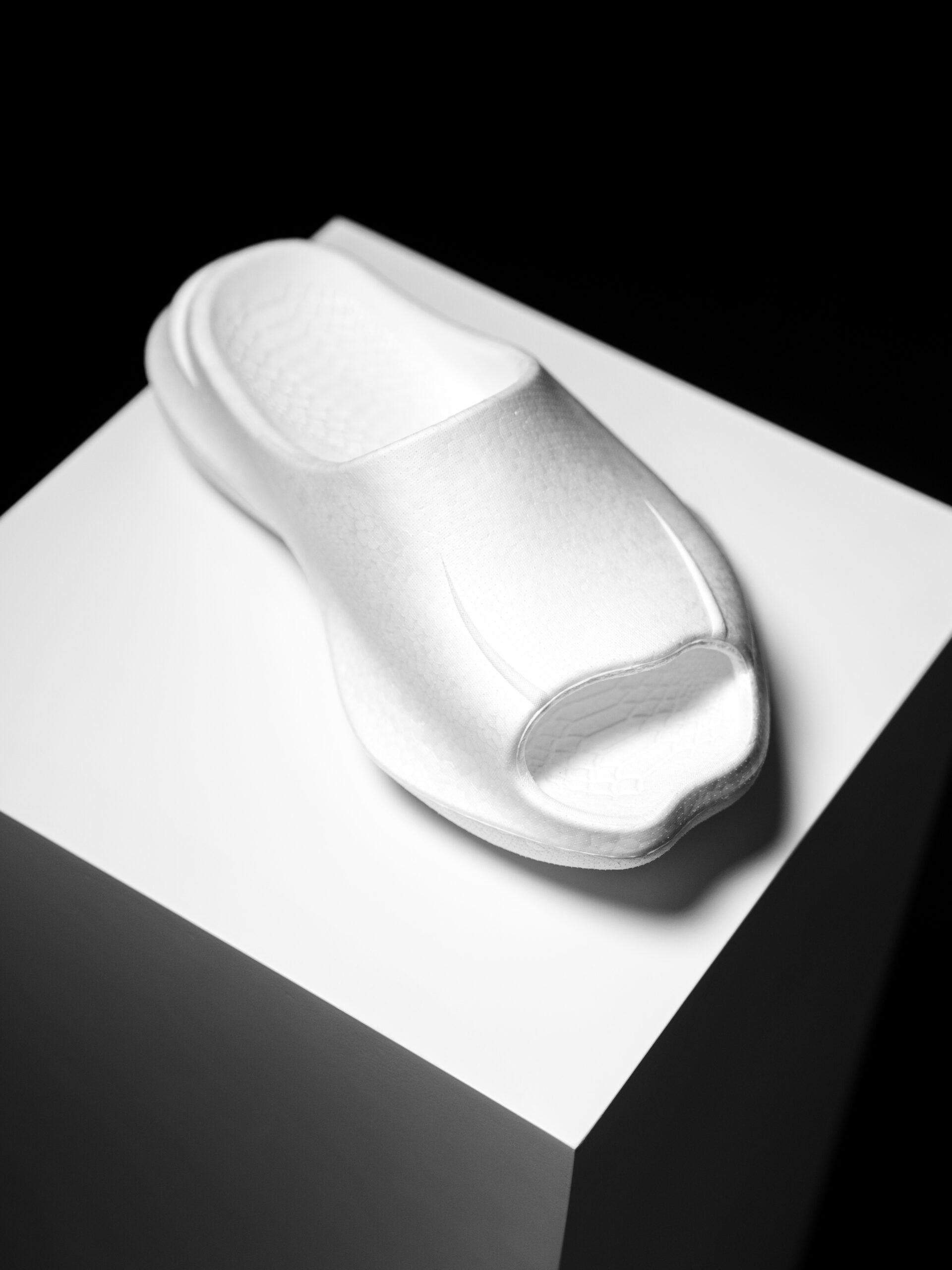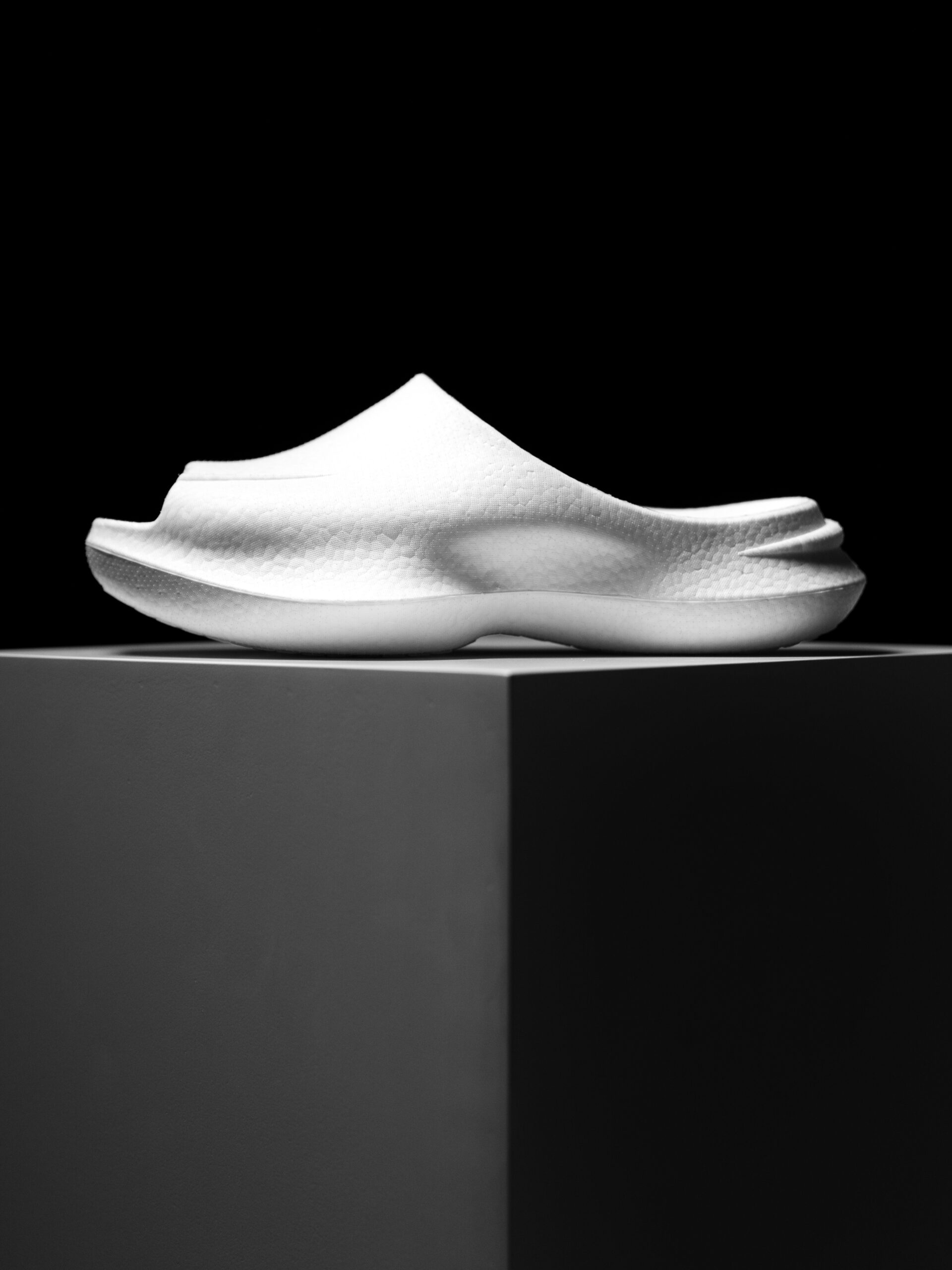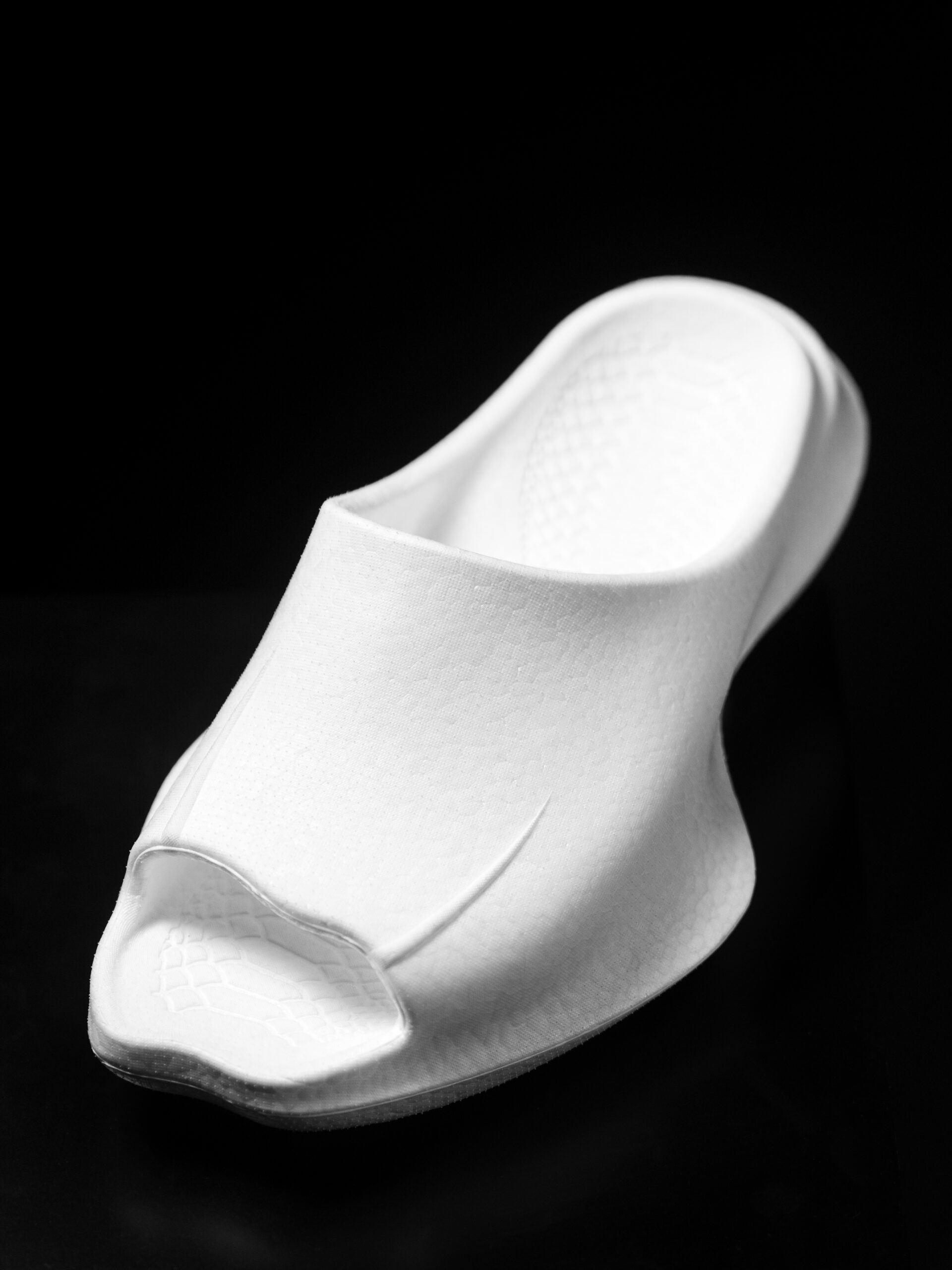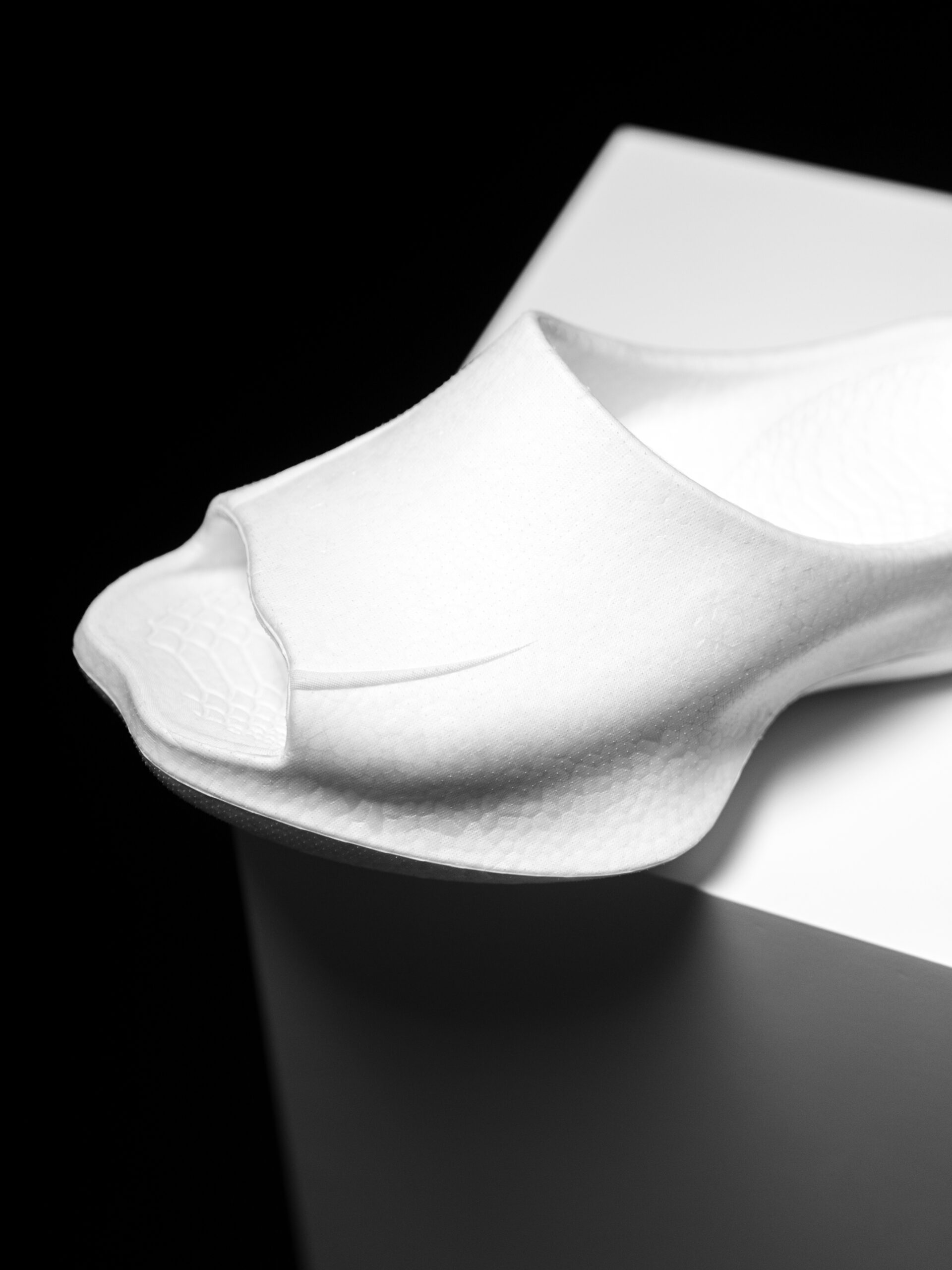 「这不仅是工艺升级,更是材料科学的代际跨越。」Xsneaker 研发团队透露,传统 EVA 拖鞋因化学交联反应导致性能快速衰退与变形,而 ETPU 的蜂巢结构使其像「上万个微型弹簧」协同工作,即使马拉松级强度使用也能保持稳定。