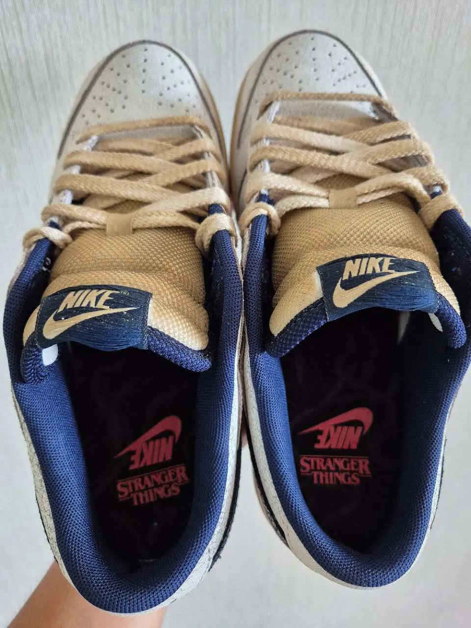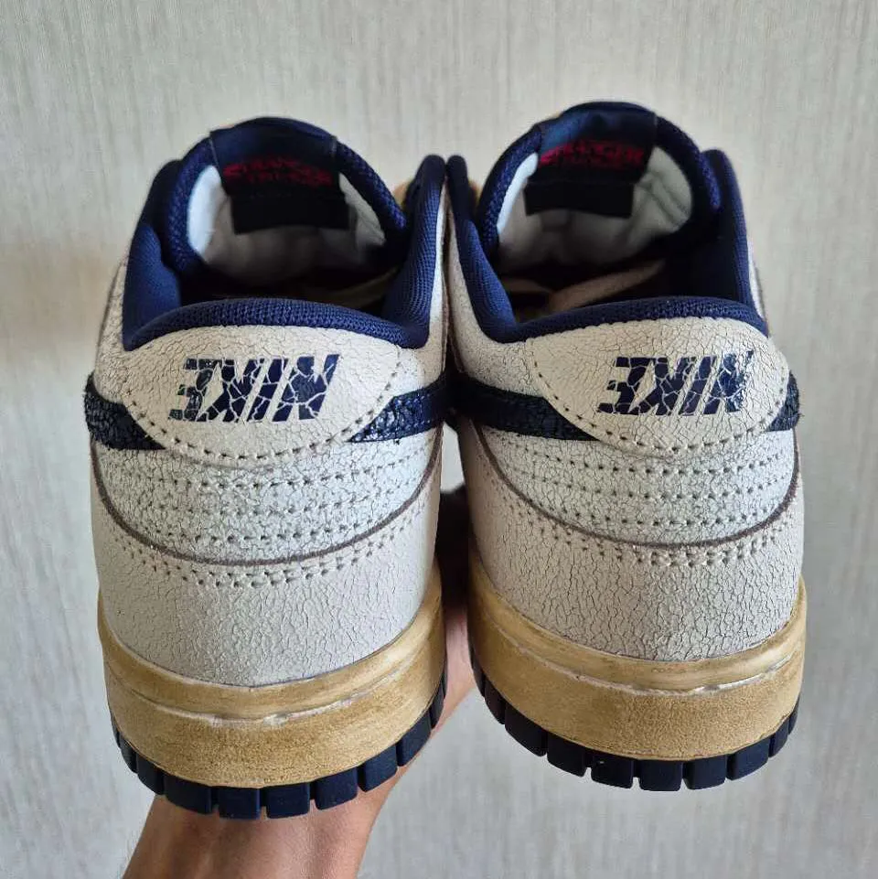 《怪奇物语》最终季会在 11 月 26 日、12 月 25 日和 12 月 31 日分三部分上线,此前与《怪奇物语》有过合作的 Nike 即将在年末与 Nike 继续合作带来全新联名,其中一款 Nike Dunk Low 率先在网路曝光。这双 Nike 有着非常明显的做旧效果,采用白色、蓝色为主调,除了斑驳的做旧视觉外,精彩细节在于鞋舌、鞋垫、后跟等 logo 全部采用反转呈现,呼应《怪奇物语》upside down 世界;据传另一款 Dunk 配色为黑、红,也是《怪奇物语》的经典代表色。据悉《怪奇物语》x Nike Dunk Low 联名将于年末开售,各位剧迷切勿错过。