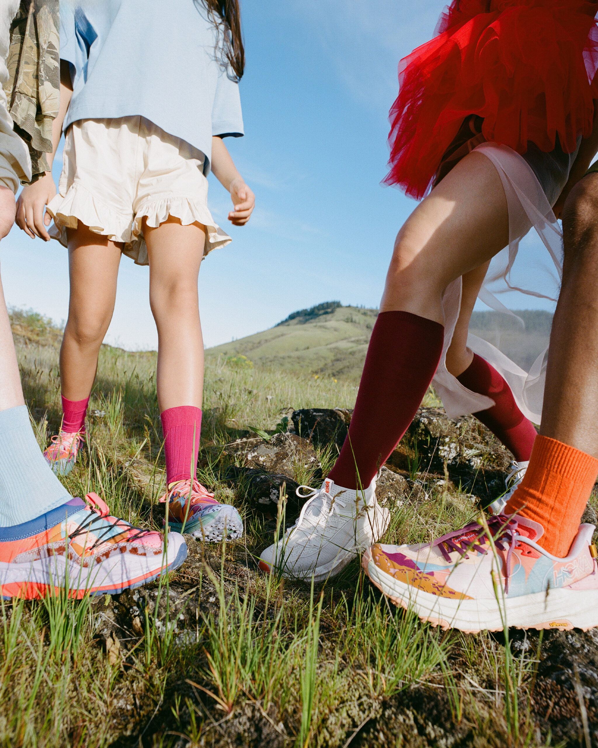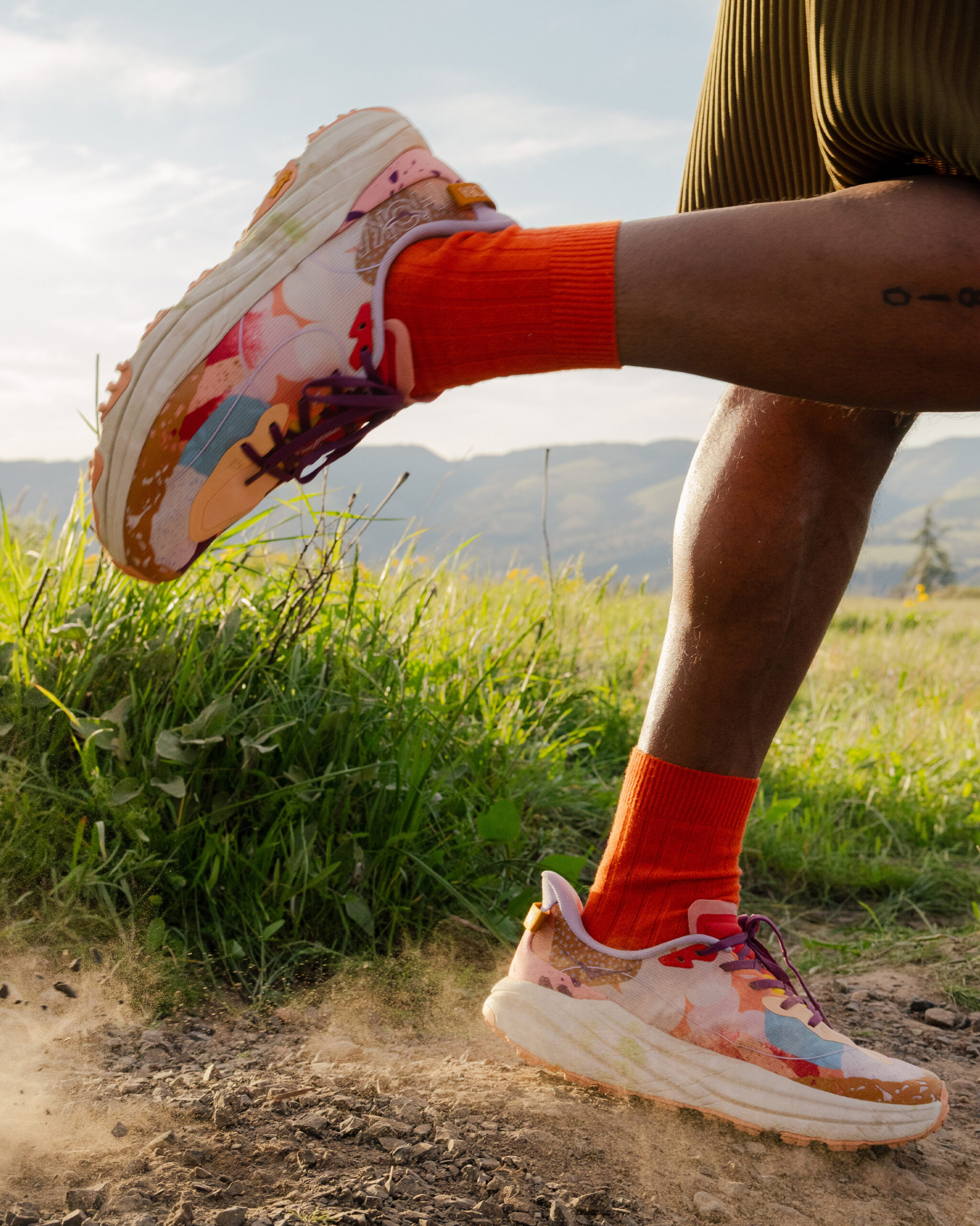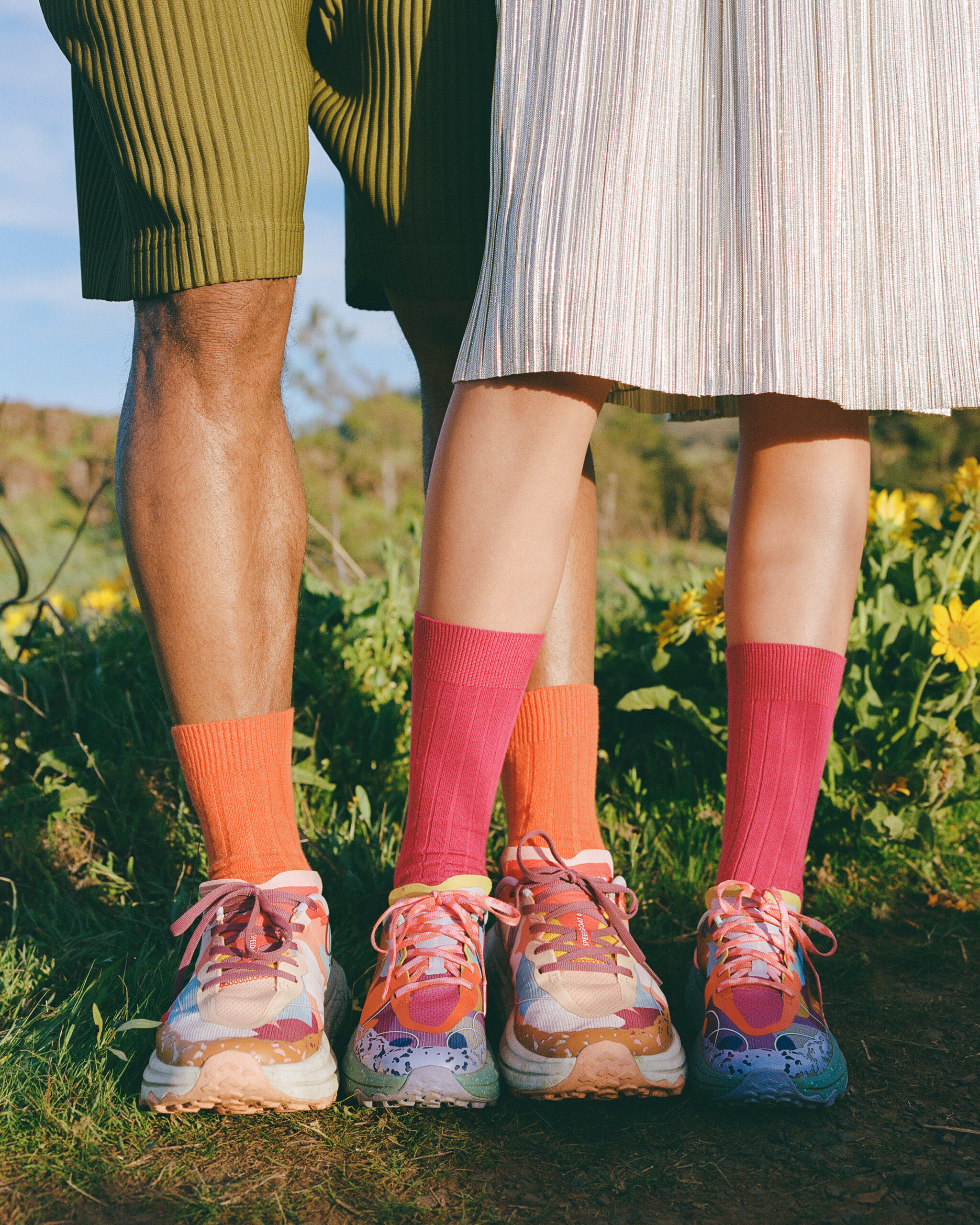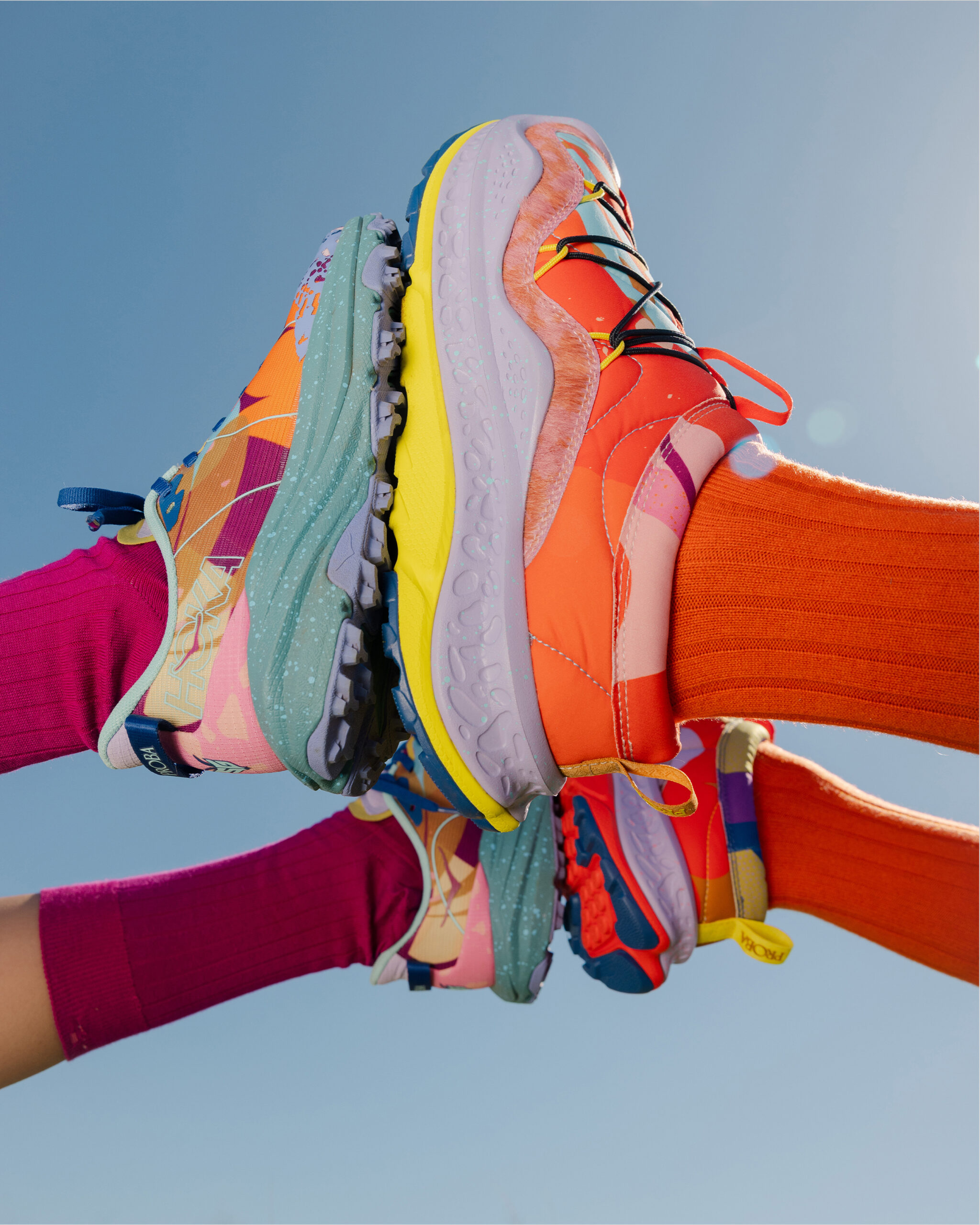 整个系列围绕「欢愉能量」展开叙事,灵感源于生命的律动、情绪的流动,以及人与自然之间本真的联结。作品植根于大胆创意、乐观精神与自我表达的共同理念,释放出如春日般明亮的能量,鼓励人们在运动中展现个性、拥抱真实,感受每一步中流动的喜悦与力量。该合作系列涵盖 HOKA 三款标志性鞋型——SPEEDGOAT 6、ORA PRIMO 与 KAWANA MID,每款均推出四组独特色彩组合,以鲜明配色碰撞多元材质,在延续 HOKA 卓越性能的基础上,赋予鞋履全新的视觉张力,使每一双都如同可穿行的艺术作品。此次联名不仅是一次设计美学的突破,更将日常运动升华为富有个性与沉浸感的表达方式,让每一步都充满灵感,行走之间尽显创意风采。