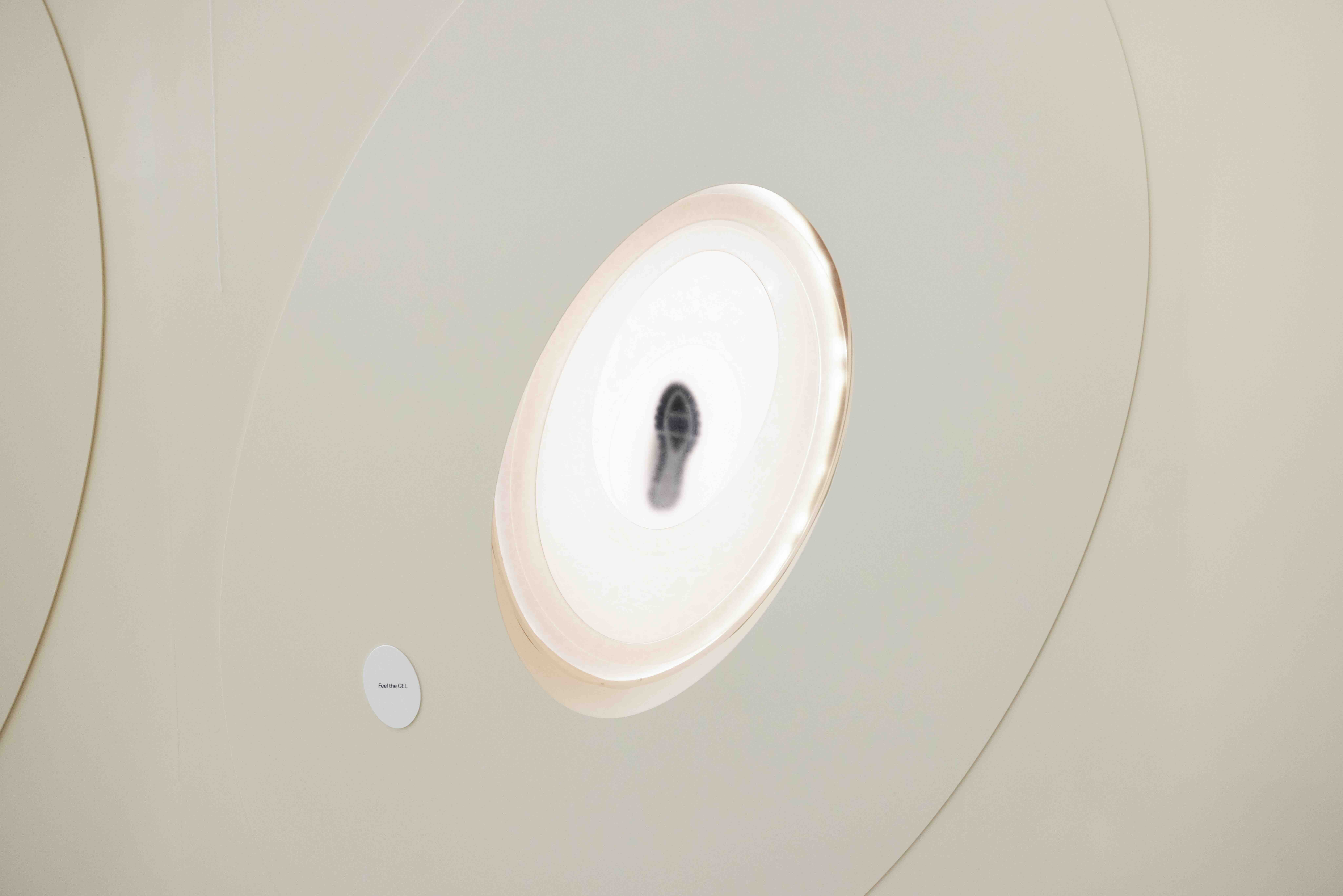 此番,ASICS 亚瑟士邀请国内外媒体、意见领袖、品牌好友等齐聚限时快闪体验空间,通过品牌故事与重磅新品,深度诠释其基于深厚科技运动底蕴的舒适哲学探索。空间设计灵感受到品牌 LOGO 的独特形状启发,通过无棱角的圆弧曲面架构整个空间场域,意在以物理空间的流动包裹感隐喻产品带来的舒适体验。空间以 ASICS 亚瑟士三大标志性材料——网面材质、GEL 缓震胶和泡沫中底为设计元素,串联成可感知的品牌鞋履创新历程。