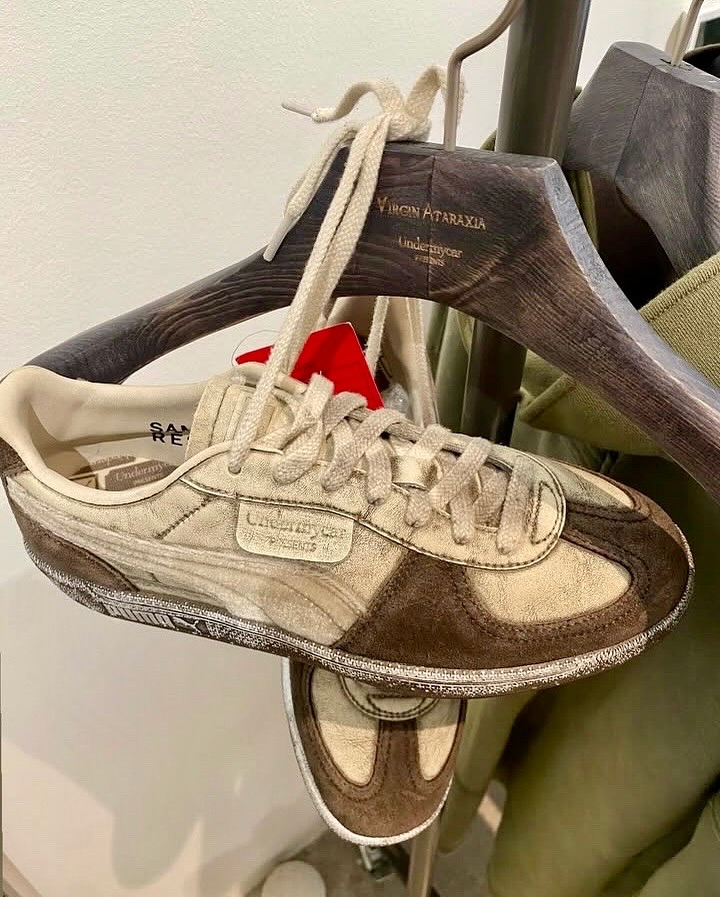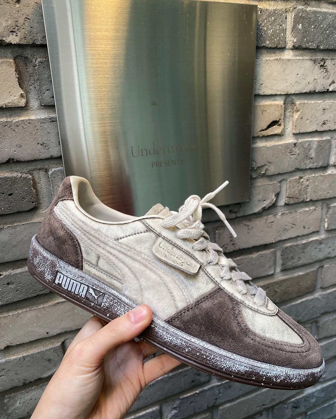 首尔街头品牌 UNDERMYCAR 与 PUMA Sportstyle 首度携手,正式发布双方首款联名球鞋。此次合作选用 PUMA 经典的复古鞋型 Palermo 为蓝本,保留标志性 T-toe 结构与麂皮鞋面,并注入 UNDERMYCAR 标志性吊牌、手绘涂鸦细节与个性化标签,搭配棕色鞋身与黑色外底,呈现浓厚的街头复古氛围。该鞋款预计于今年秋季正式发售。