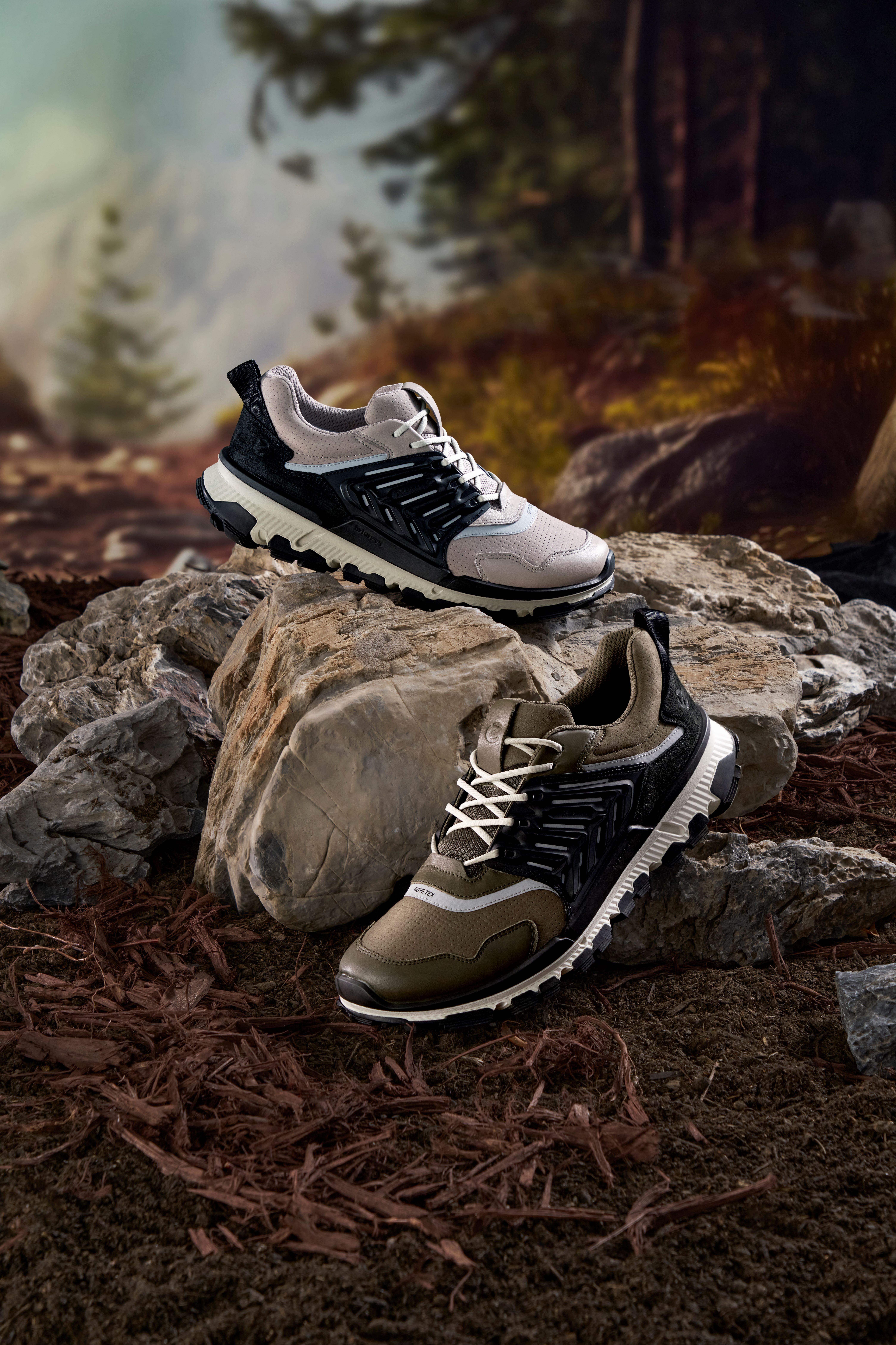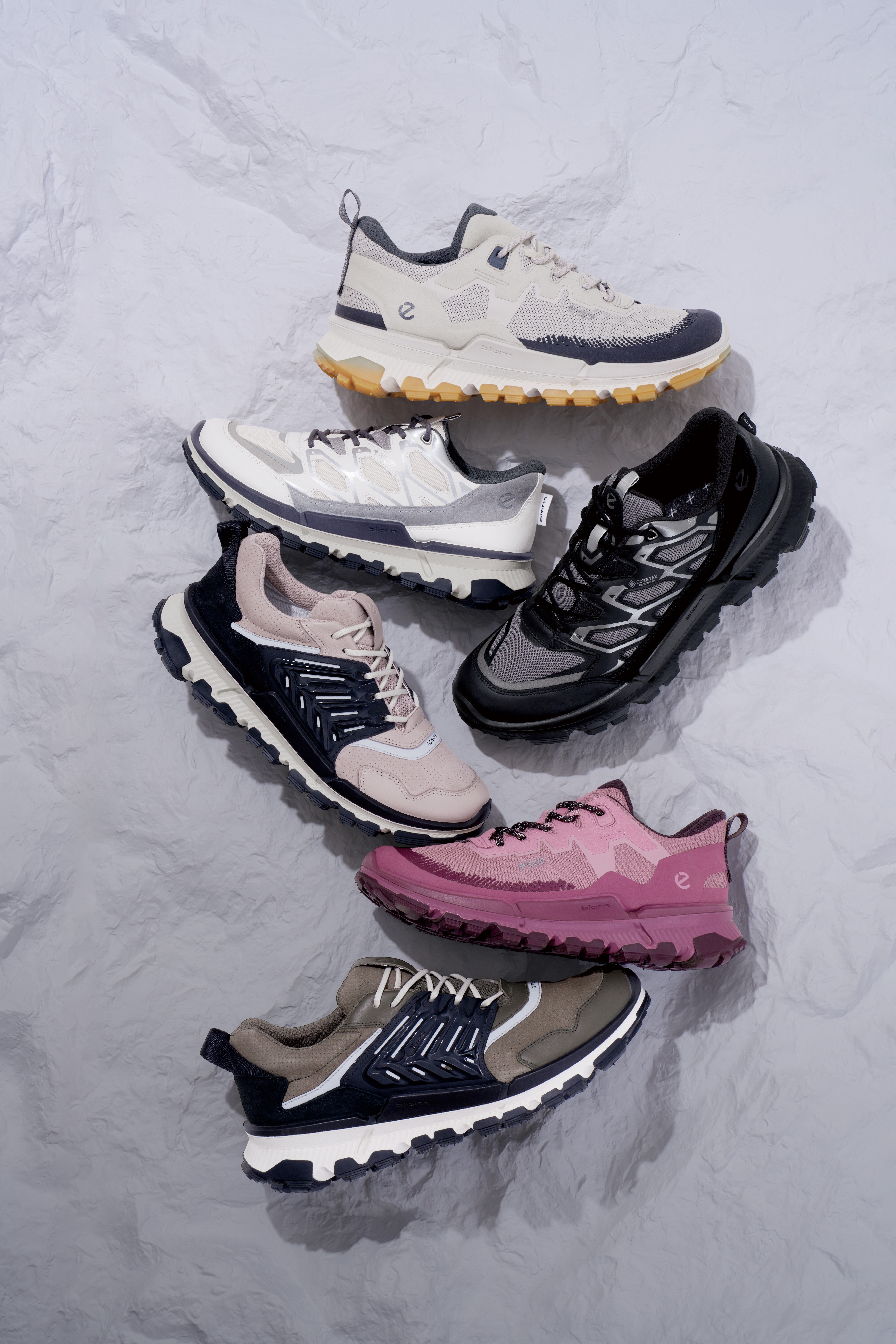 此番首次上市的 ECCO BIOM 2.2 TRAIL 系列采用多重科技,沿用品牌创新研发的 BIOM® 科技,通过 3D 足部扫描技术,创造出符合人体工学的鞋楦设计,畅享舒适体验;具有优越缓震性能和回弹效果的 PHORENE™ 中底帮助吸收运动中产生的冲击,搭配带有胎面纹路的橡胶大底与挡泥板设计,不仅在复杂地形中提供强劲抓地力,更能保护双足免受碎石泥土侵扰;除此外,鞋款均搭载 GORE-TEX 防水科技,部分款式更有 GORE-TEX™ INVISIBLE FIT 防水科技加持,通过 GORE-TEX 薄膜与鞋面材料的精准融合,使前足部位的空间尺寸更加合脚,为穿着者提供更为轻量舒适且干爽透气的穿着体验。