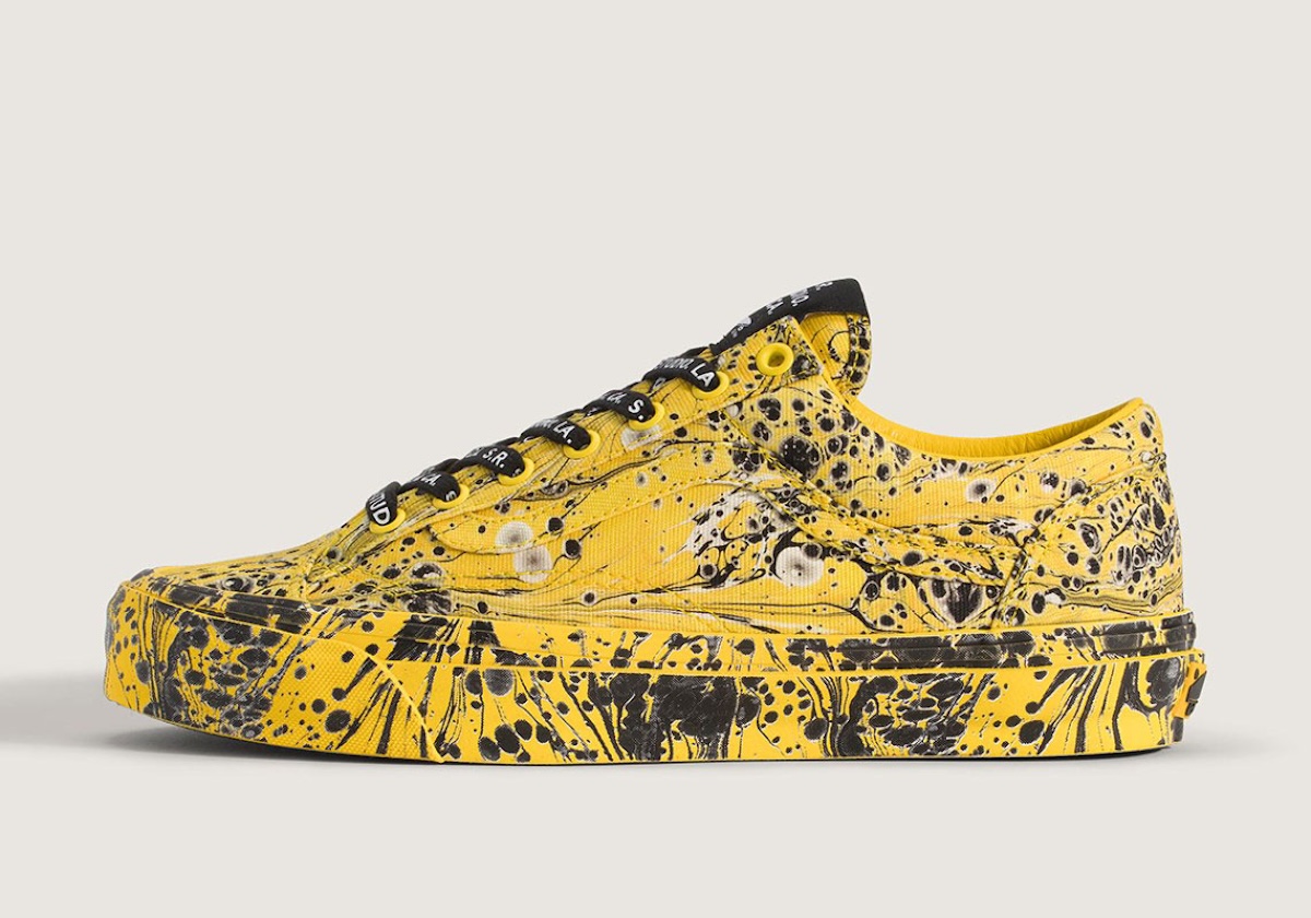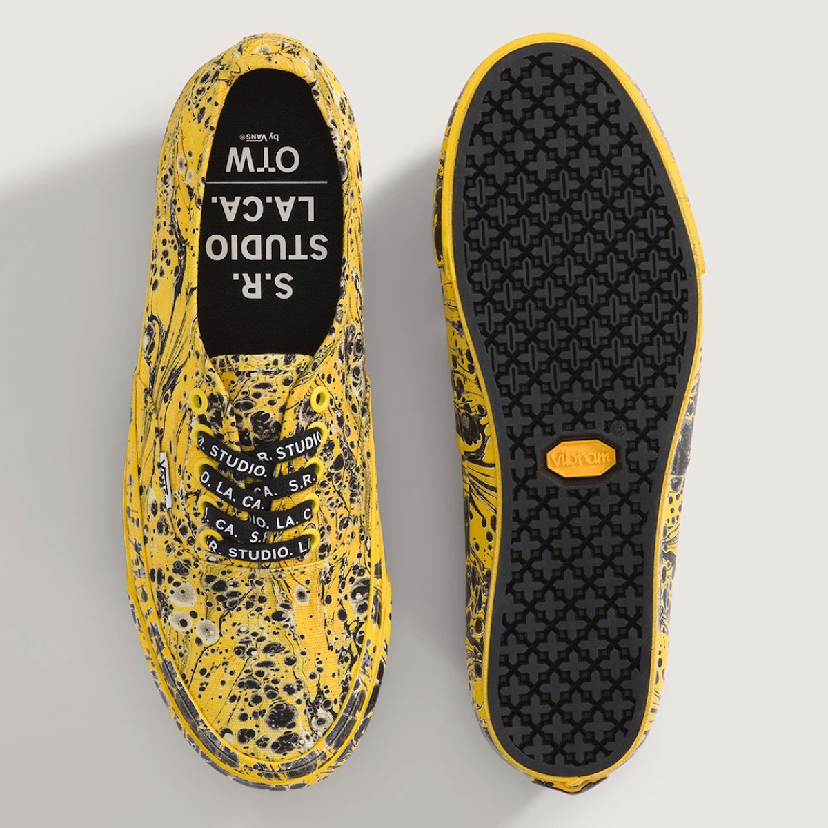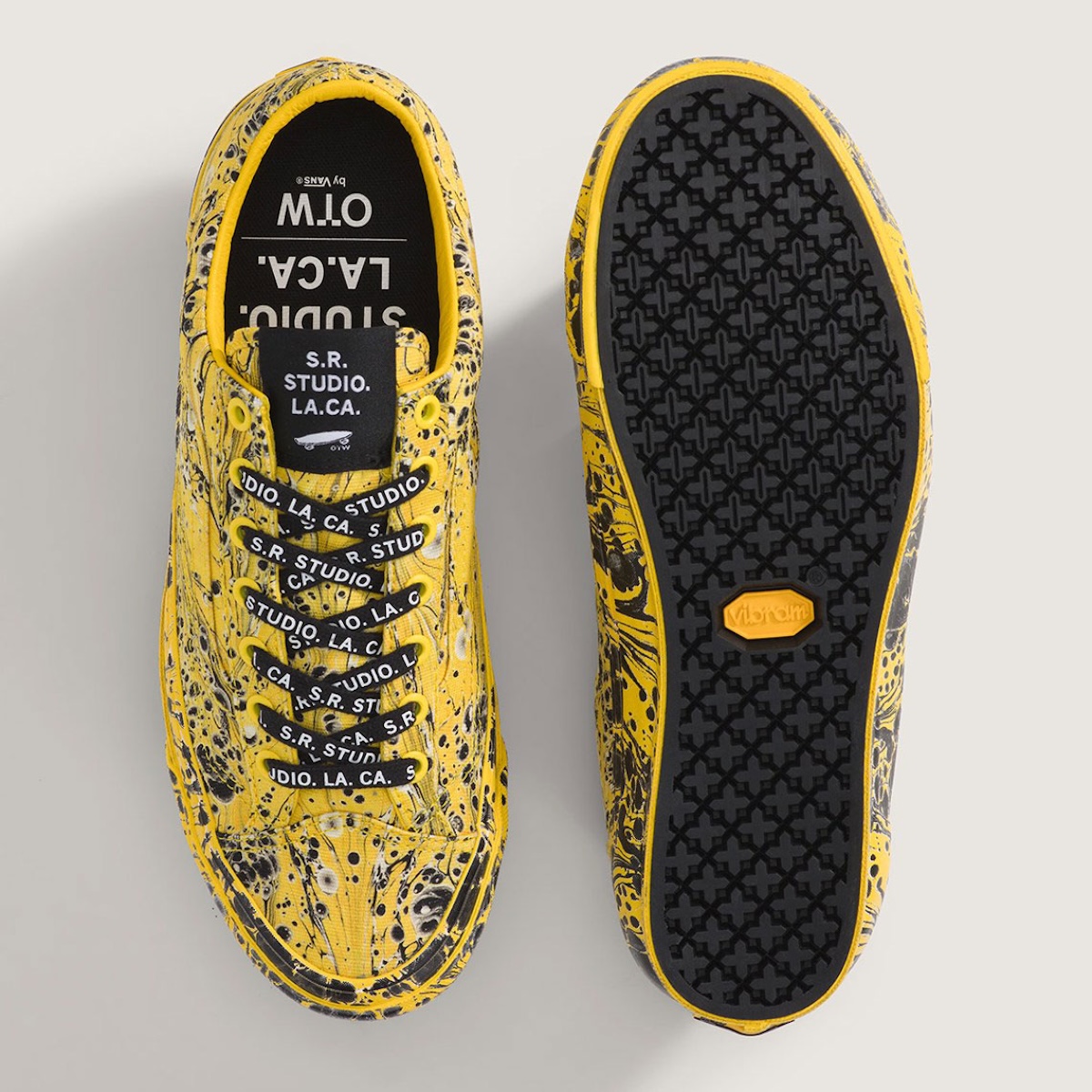 VANS OTW 全新力作即将诞生。此次品牌与之前多次合作的 SR STUDIO. LA. CA.共同打造「Marbling Collection」系列,借 Sterling Ruby 之手,拓宽帆布鞋艺术创作想象力边界。OTW Authentic 44 Vibram 与 OTW Old Skool 36 Vibram 两款鞋型充斥着与 Sterling Ruby 创作的黑黄涂鸦,个性十足,鞋带鞋舌与鞋垫处均有联名合作标识,同时作为高端线,Vibram 鞋底也是必不可少,极大提升了耐磨属性。SR STUDIO. x VANS 合作系列将于美国时间 8 月 14 日通过Vans.com 和指定零售商发售,售价 150 美金。