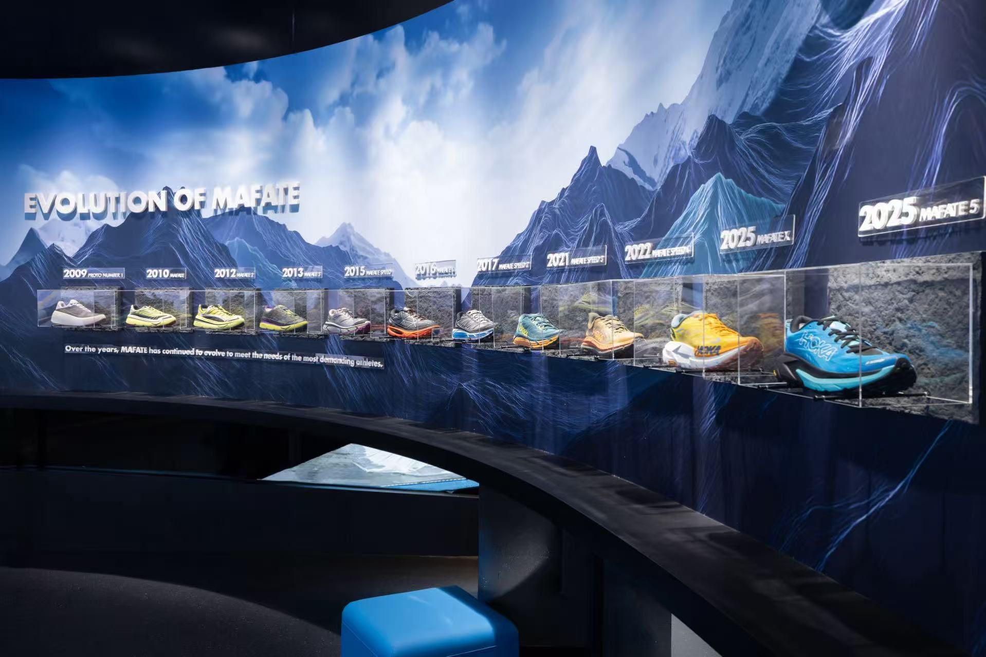 MAFATE 作为 HOKA 首双越野跑鞋的命名来源,代表了品牌诞生之初的创新精神。从勃朗峰实战起步,到如今演进为产品风格化表达的代表,MAFATE 系列不仅保留其性能内核,更不断突破传统越野美学,开创性能跑鞋风格化表达的新范式,并将「功能即风格」的理念融入当代都市生活。MAFATE HOUSE 的打造,正是这一产品精神在空间语言上的外化延伸,将不惧挑战的山野基因融入更具风格的现代化表达。