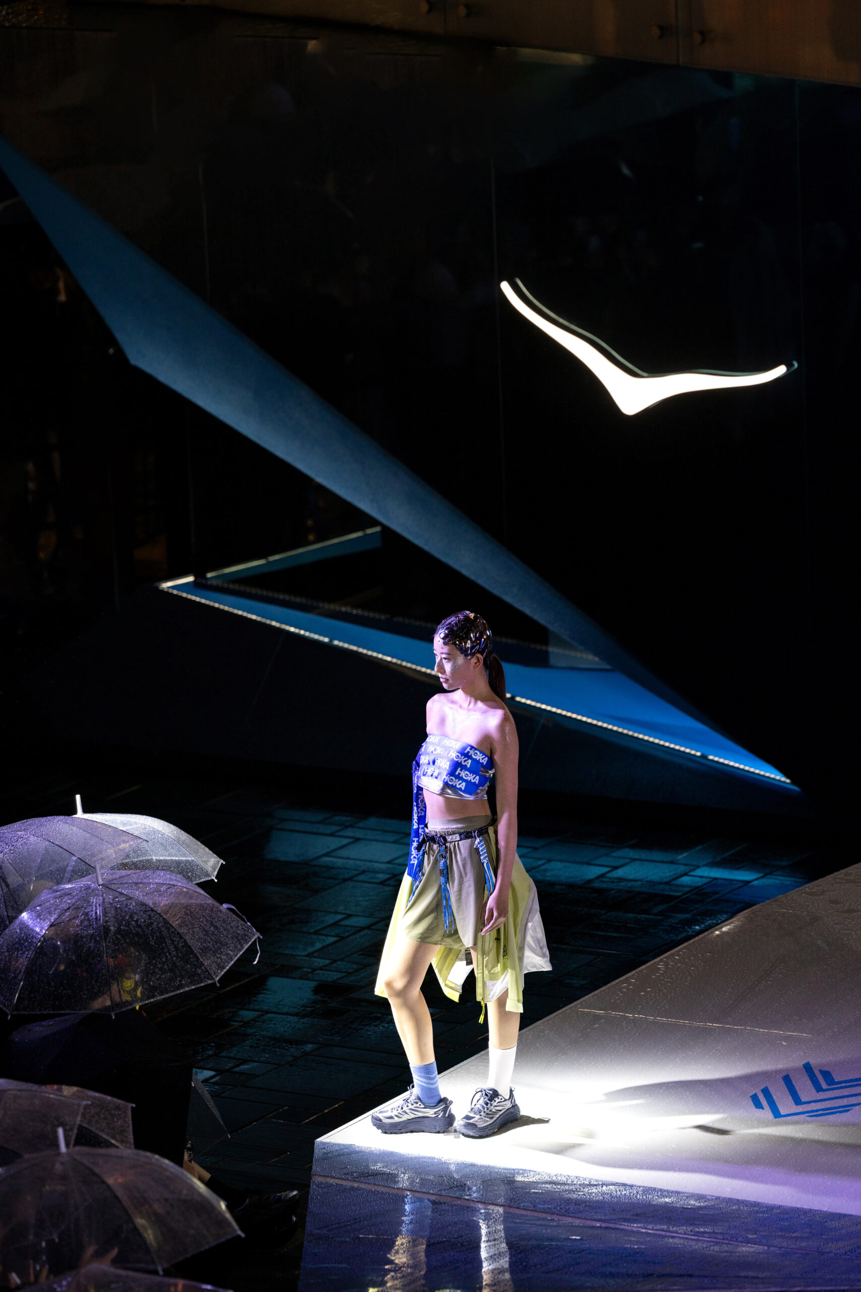活动当天,一场「山野无界未来先锋大秀」震撼开启。多位以未来感造型出场的模特现场演绎 MAFATE 全系代表鞋款,以功能单品为核心,多种前卫造型搭配和风格演绎,呈现极具创新精神的先锋未来美学。HOKA 品牌大使(鞋履系列)汪顺惊喜亮相 ——上脚 MAFATE SPEED 2 星月白,搭配极简未来感造型登场,在步履之间传递自由、跨界表达与探索精神。