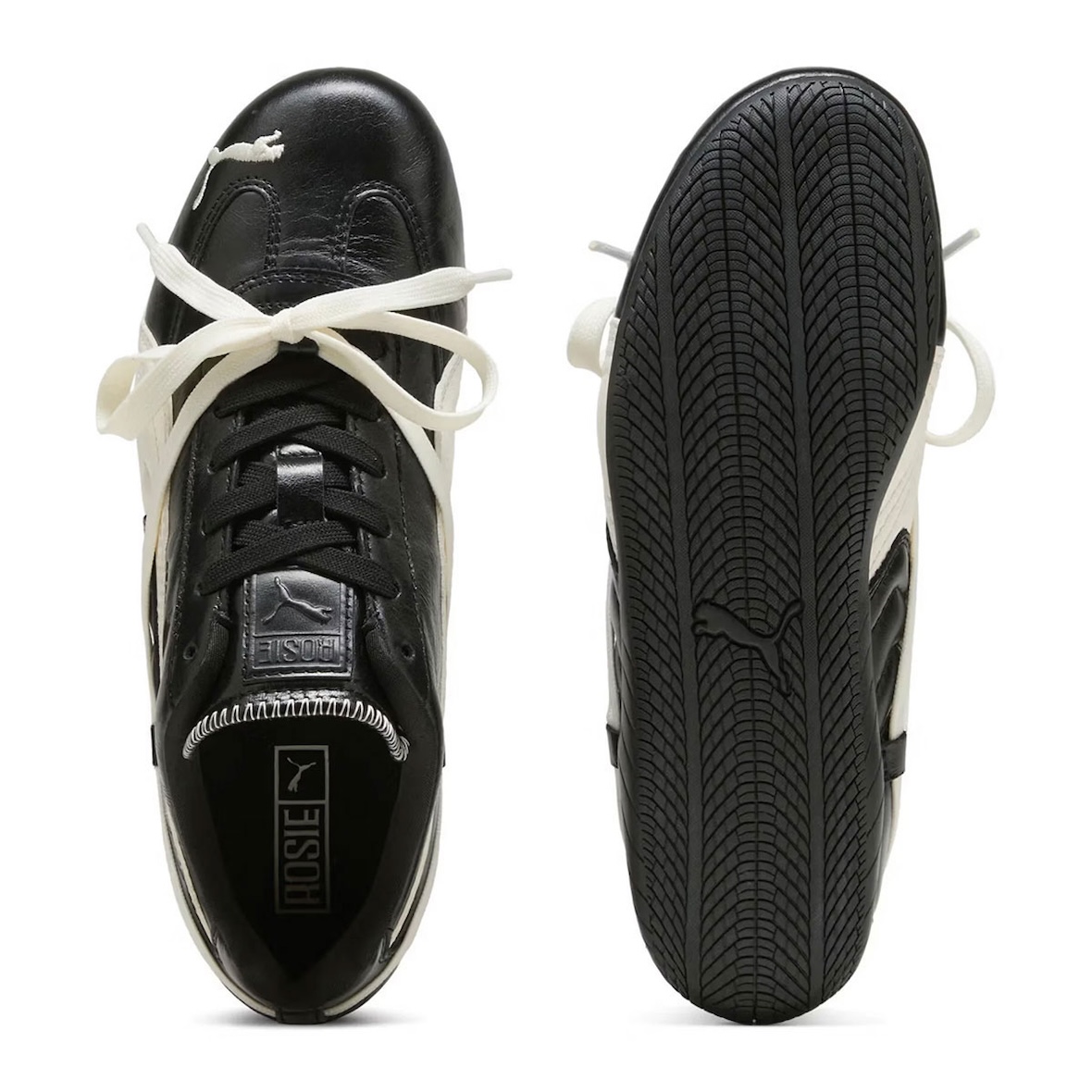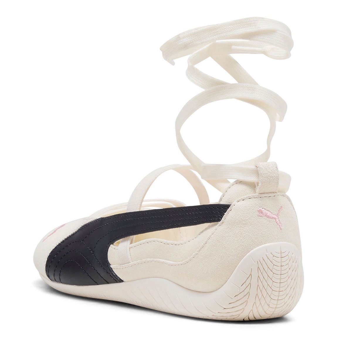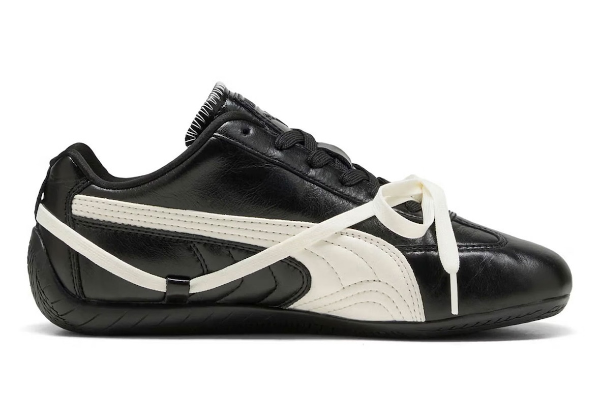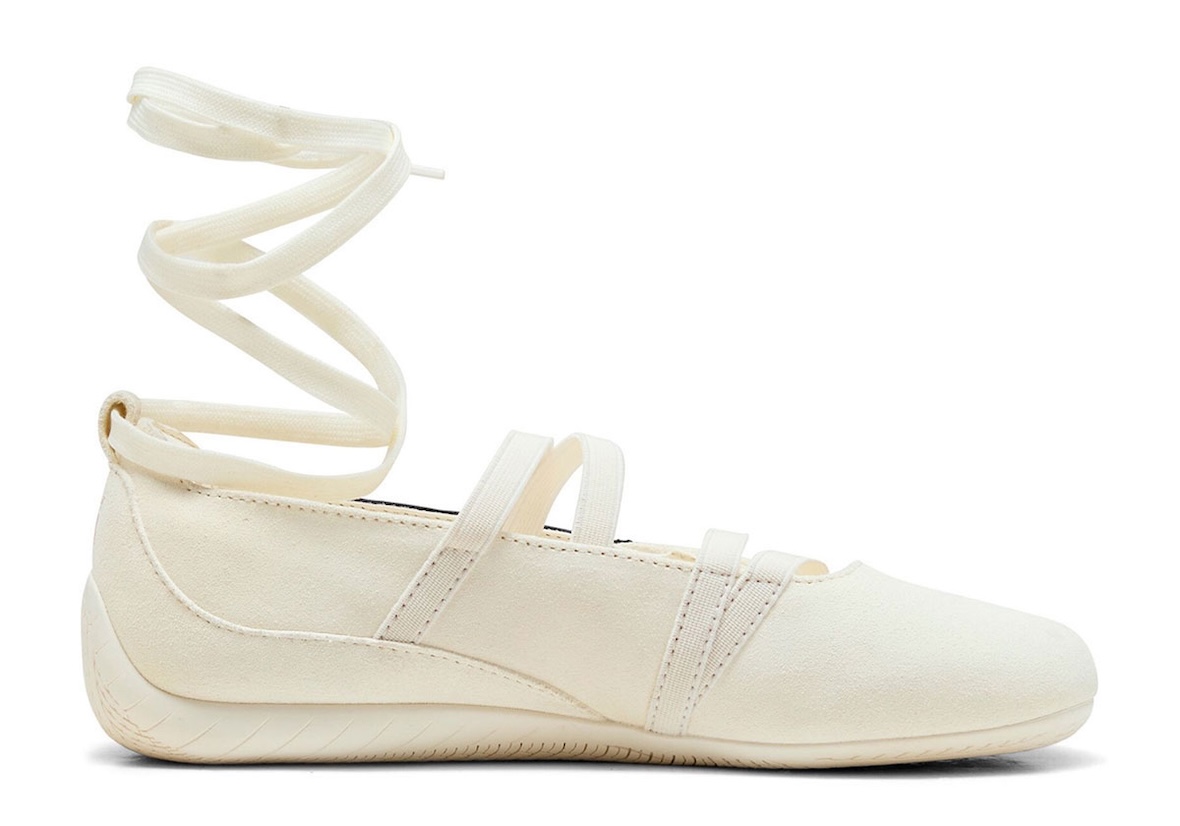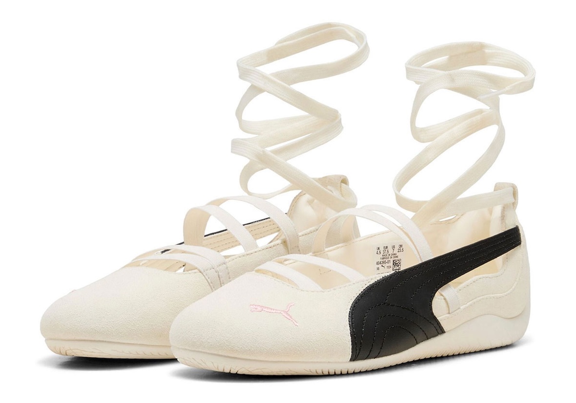 PUMA 年度重磅联名来袭。凭借 BLACKPINK 与 Rosé 个人的号召力,Rosé x PUMA Speedcat 系列一旦发售又将掀起一波新的薄底鞋热潮。目前 Rosé x PUMA Speedcat 系列公布两大首发鞋款,第一款是经典的 Speedcat 黑白配色基础上,加入环绕鞋带装饰,形成鞋头蝴蝶结,更显俏皮与个性。除了赛车鞋,芭蕾舞鞋也成为 Rosé 设计的灵感来源。另一款 Speedcat Ballet 采用低帮设计,搭配环绕式脚踝绑带,彰显女性潮流鞋款优雅灵巧一面。