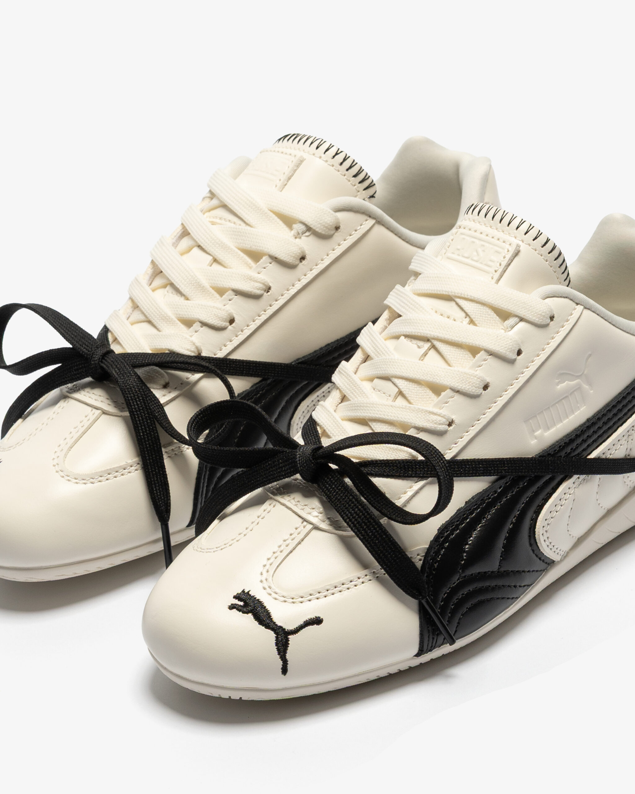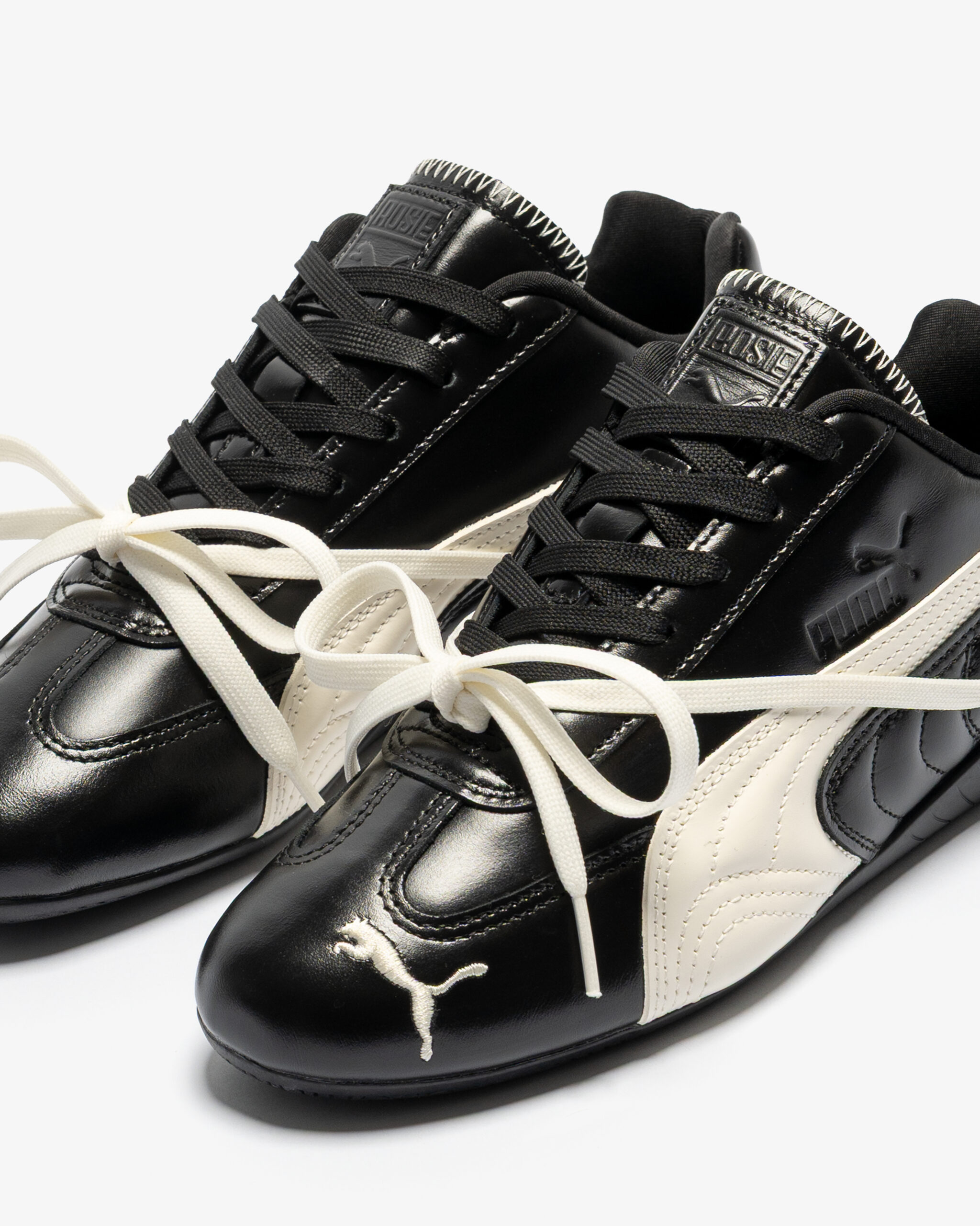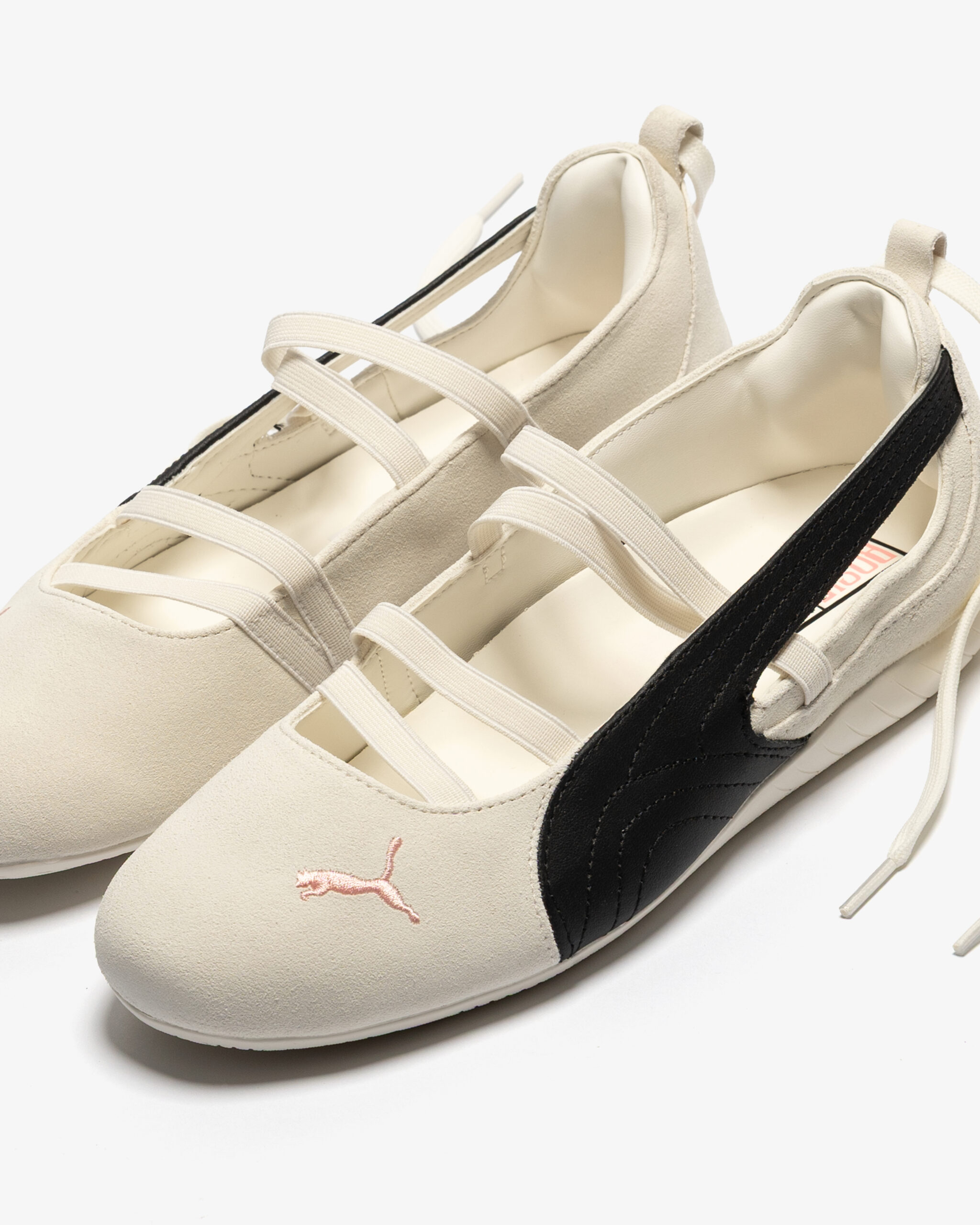 在成为 PUMA 全球大使与合作伙伴后,Rosé 正式推出与 PUMA 的首个合作系列。系列通过 Rosé 的视角展现独特魅力,融合了许多个人化的元素,最终呈现出一款充满创意的系列。宽松的基础单品与独具女性化的设计和定制元素相结合,汲取了 PUMA 运动服装设计的历史,同时还加入了特别的「ROSIE」字样图案,并对 PUMA Speedcat 进行了两种全新的设计诠释。Speedcat Ballet 采用了类似芭蕾舞鞋的鞋带设计,而 Speedcat OG Premium 则为鞋面增加了包裹式鞋带细节。
