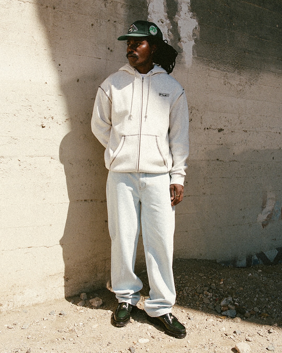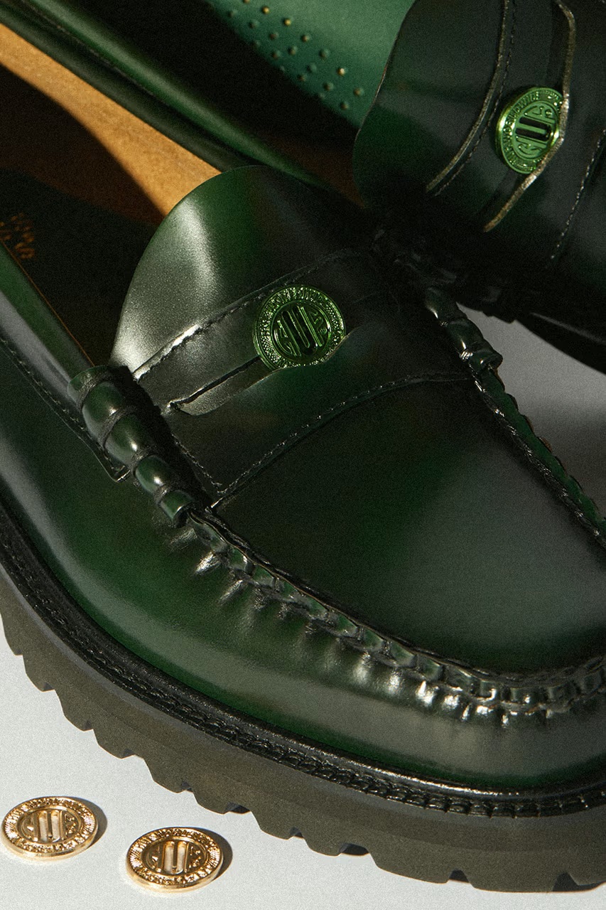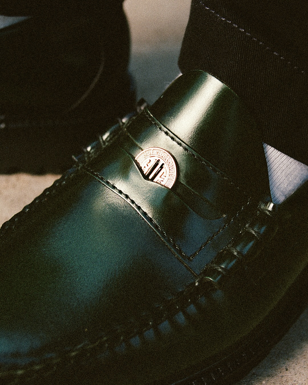 HUF 与美国知名鞋履品牌 G.H. BASS 合作推出了一款 Larson 乐福鞋,采用了创新的 chamelon(变色)皮革,随着时间推移,皮革的颜色会由黑色逐渐变成深绿色,这种特殊皮革由 G.H. BASS 独家生产。