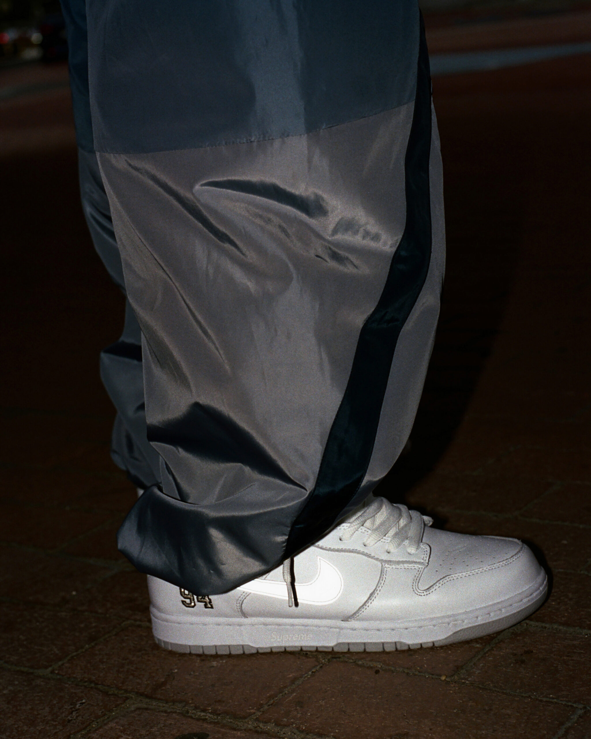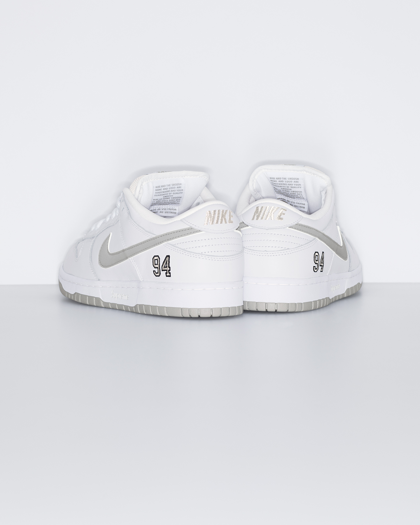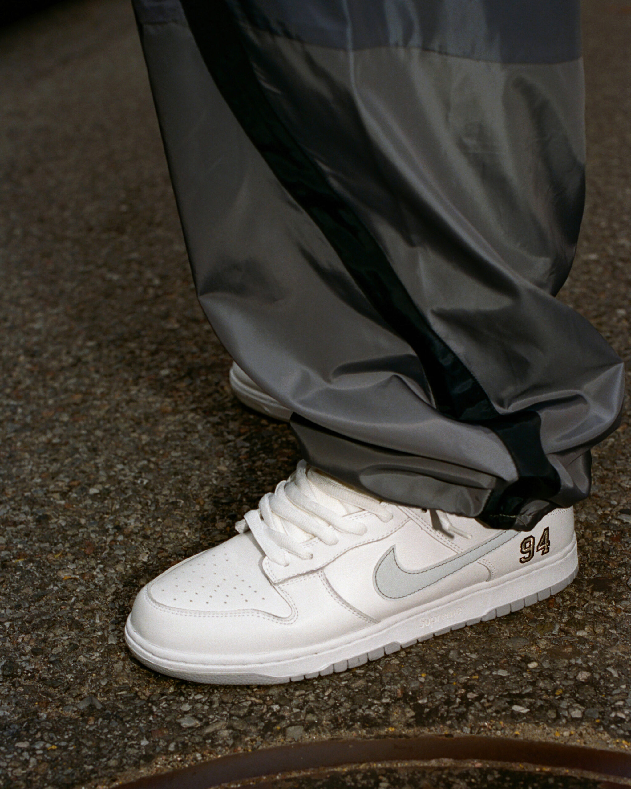 2025 年秋季,Supreme 与 Nike SB 合作推出全新 Dunk Low 鞋款。所有 Dunk Low 均配备橡胶外底、后跟有 Zoom Air 气垫、加厚网眼鞋舌、联名鞋垫,鞋领及鞋舌为网眼衬里,鞋舌饰有金属质地编织徽标标签,中底带压印徽标,鞋身侧面和鞋跟处有金属质地刺绣图案。