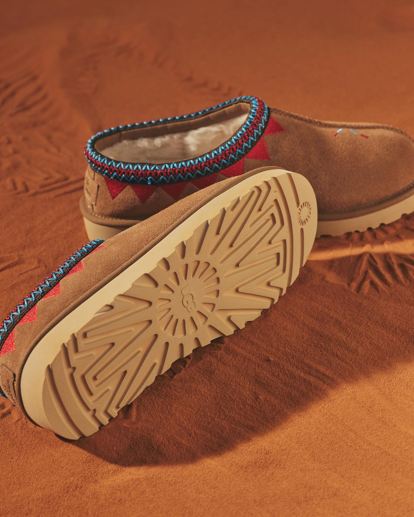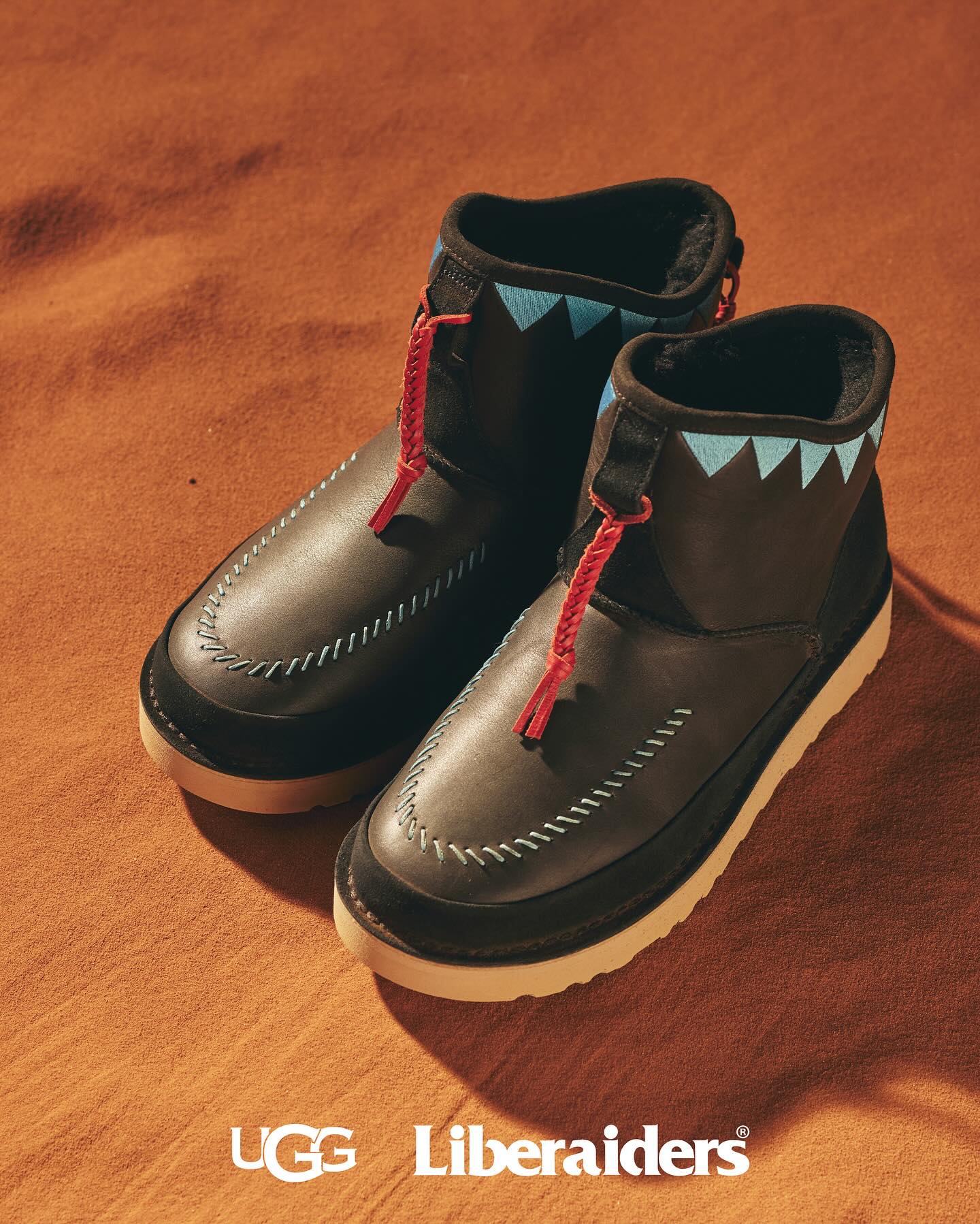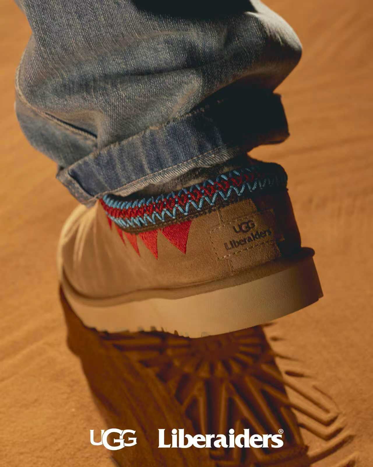 近日,UGG 与 Liberaiders®︎ 携手推出 2025 秋冬联名系列。本次合作以 Liberaiders 设计师梅勇的旅行哲学为灵感,通过多元文化交融诠释「包容共生」的品牌理念。系列主打两款经典鞋型:UGG Tasman 采用栗色绒面革与羊皮衬里打造一脚蹬设计,UGG Ultra Mini 则运用多层皮革结构与撞色元素,均饰以 Liberaiders 标志性三角图案与红色抽绳细节。广告视觉以沙漠落日光影为灵感,呼应设计中的多元融合理念。据悉该合作系列将于 9 月 15 日全球同步于 UGG 官方网站及 Liberaiders 渠道发售,感兴趣的朋友不要错过了。