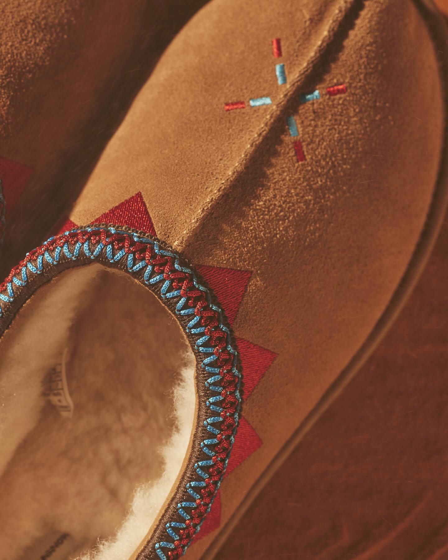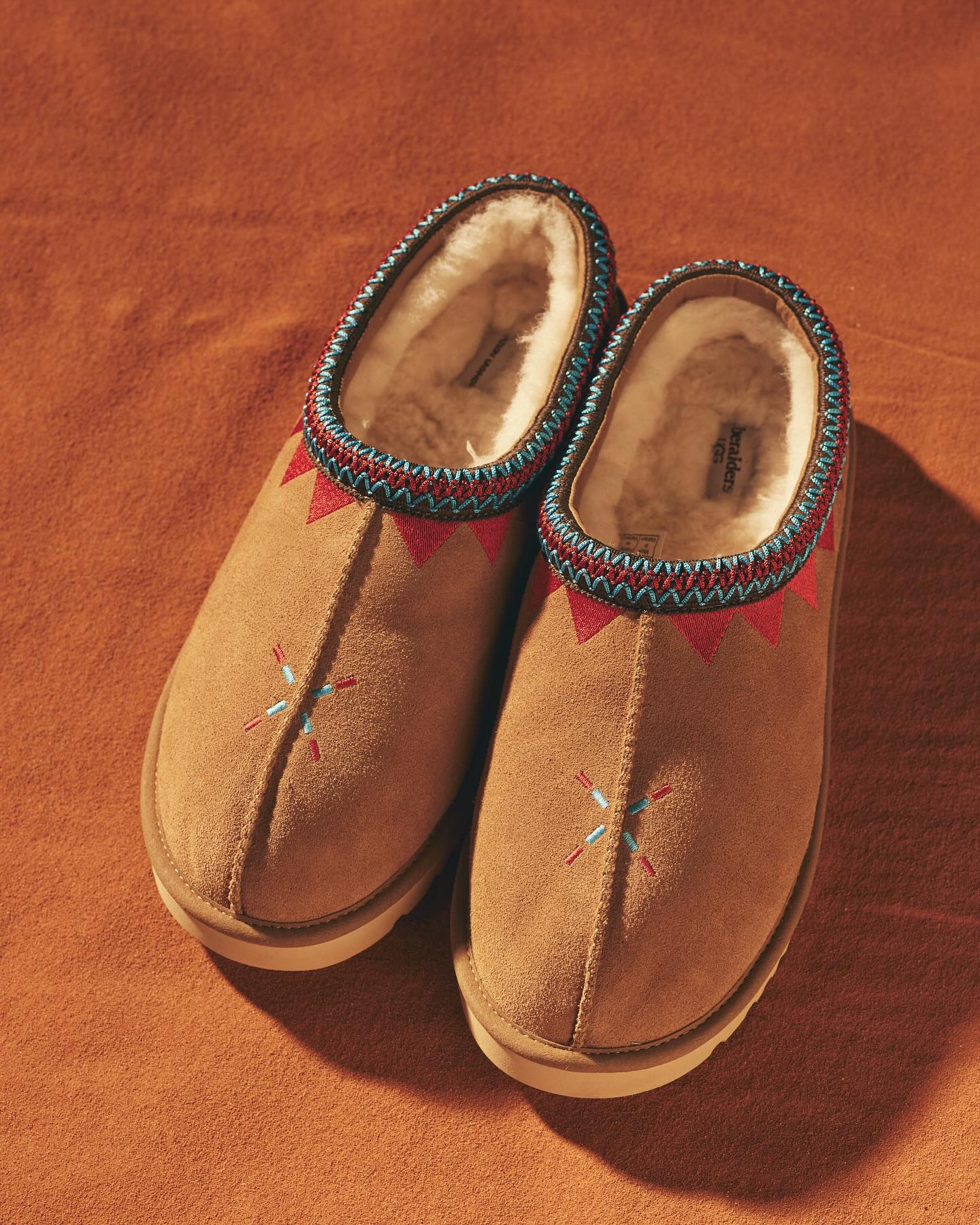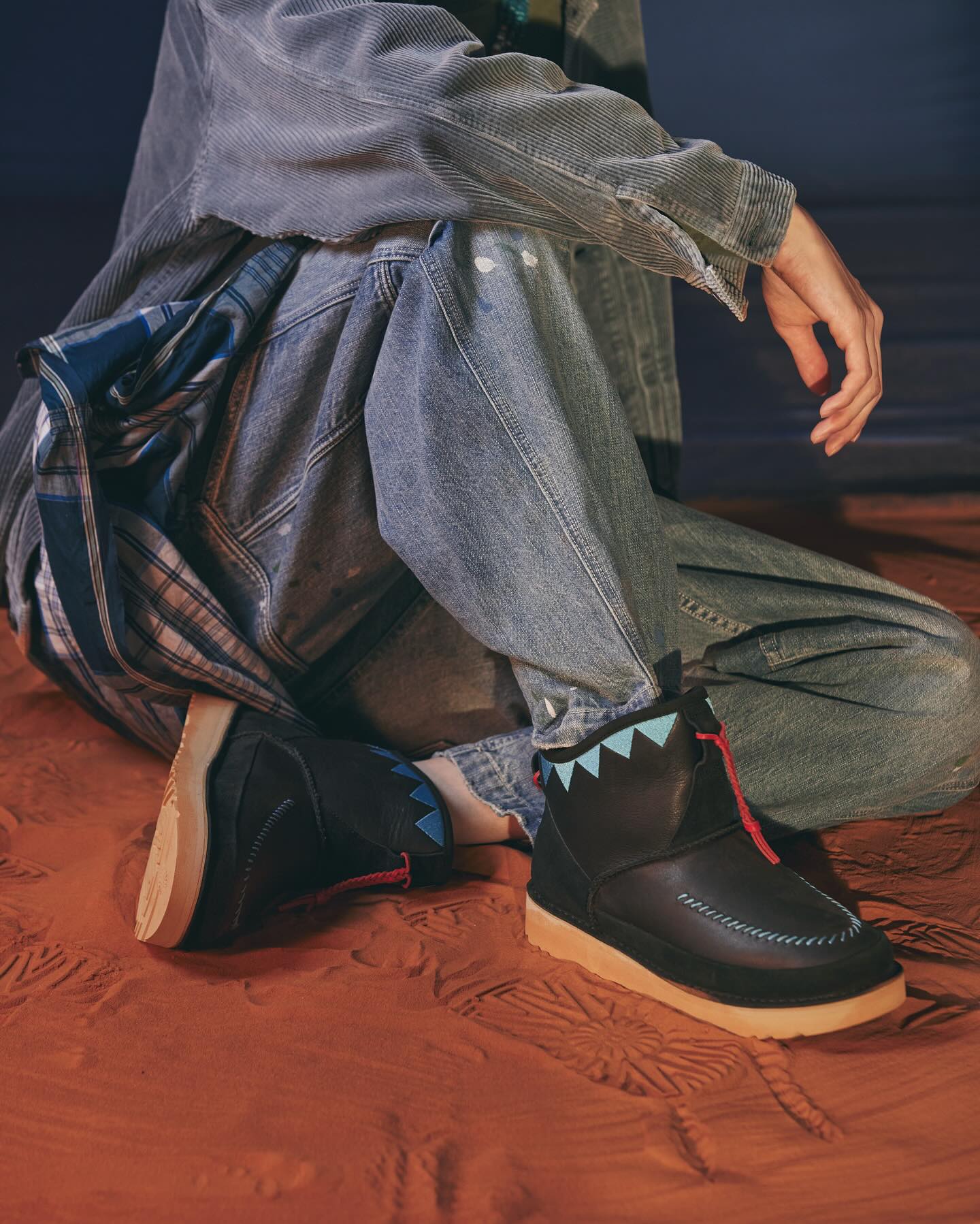 近日,UGG 与 Liberaiders®︎ 携手推出 2025 秋冬联名系列。本次合作以 Liberaiders 设计师梅勇的旅行哲学为灵感,通过多元文化交融诠释「包容共生」的品牌理念。系列主打两款经典鞋型:UGG Tasman 采用栗色绒面革与羊皮衬里打造一脚蹬设计,UGG Ultra Mini 则运用多层皮革结构与撞色元素,均饰以 Liberaiders 标志性三角图案与红色抽绳细节。广告视觉以沙漠落日光影为灵感,呼应设计中的多元融合理念。据悉该合作系列将于 9 月 15 日全球同步于 UGG 官方网站及 Liberaiders 渠道发售,感兴趣的朋友不要错过了。