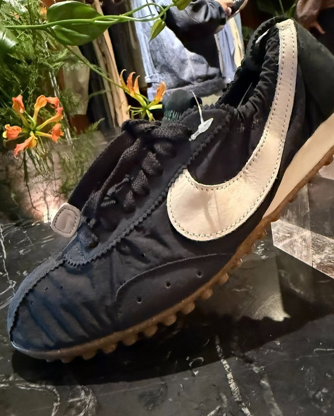 此前已于 JACQUEMUS 2025 春夏成衣秀场先行亮相的全新 Nike 联名系列即将在本月迎来发售。该鞋款致敬了 Nike 历史上经典的 Moon Shoes 田径鞋,由 Nike 联合创始人 Bill Bowerman 于 1972 年为为奥运会选拔赛亲自操刀设计,因其标志性的华夫外底会留下犹如登月般的足迹而得名。如今,这双极具历史意义的跑鞋通过 JACQUEMUS 的视角得以复刻重现。此次联名将带来 Off Noir、University Red、Alabaster 三种配色,预计将在 9 月于 JACQUEMUS 的线上线下门店及部分指定零售商同步发售。