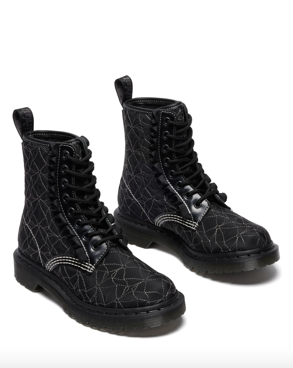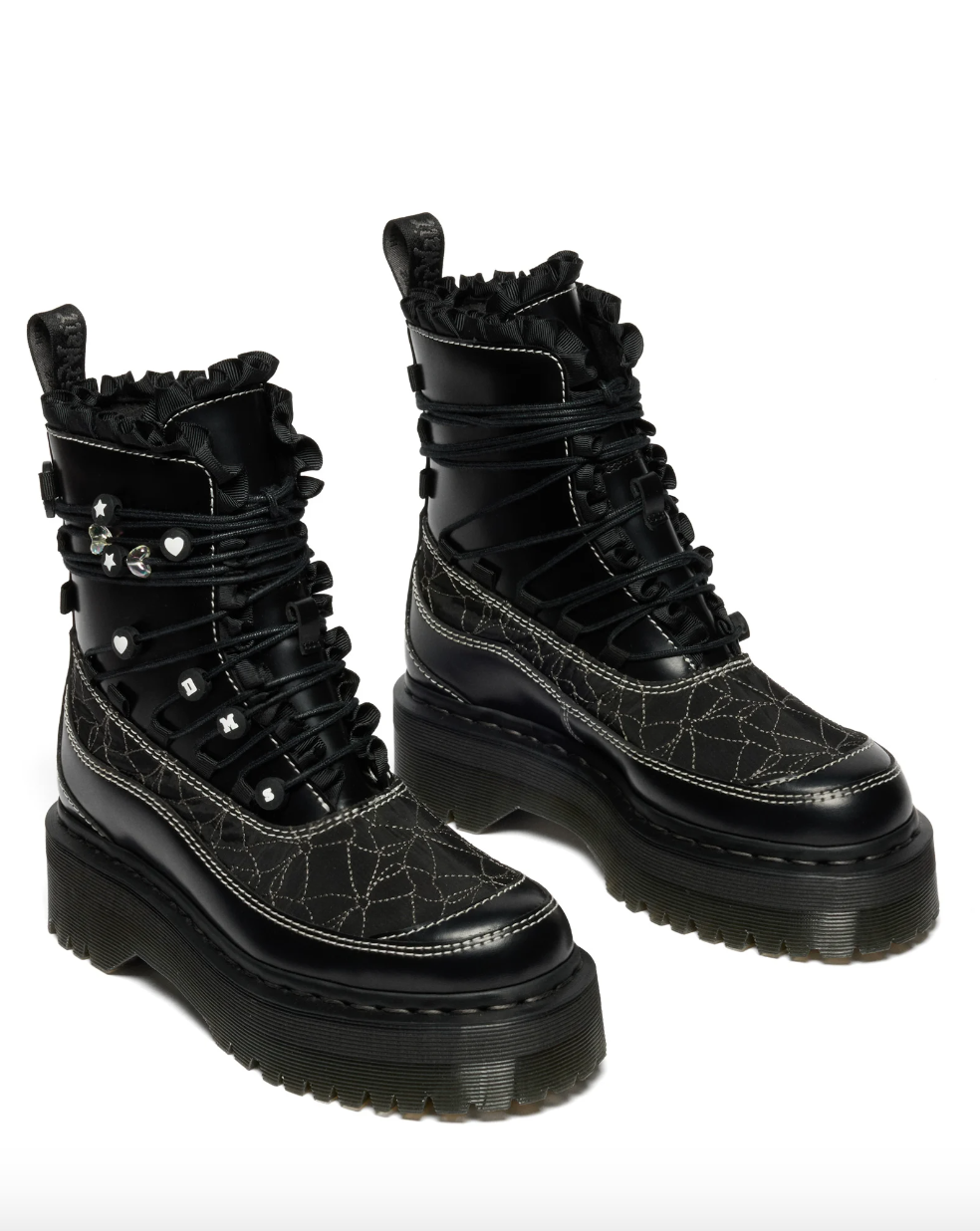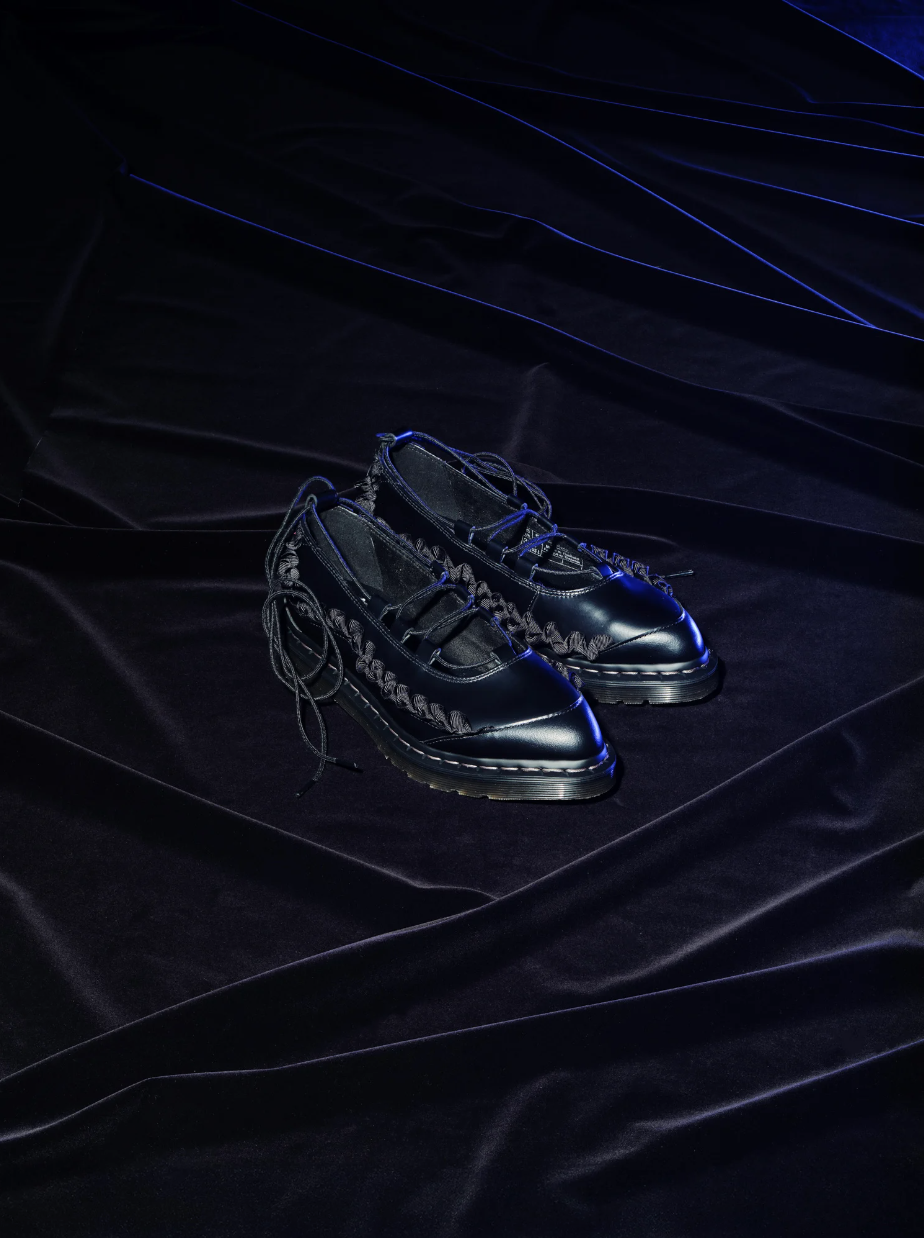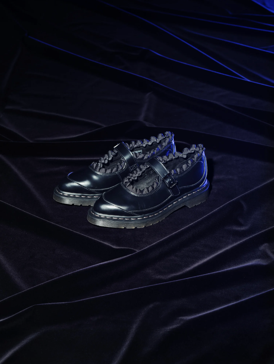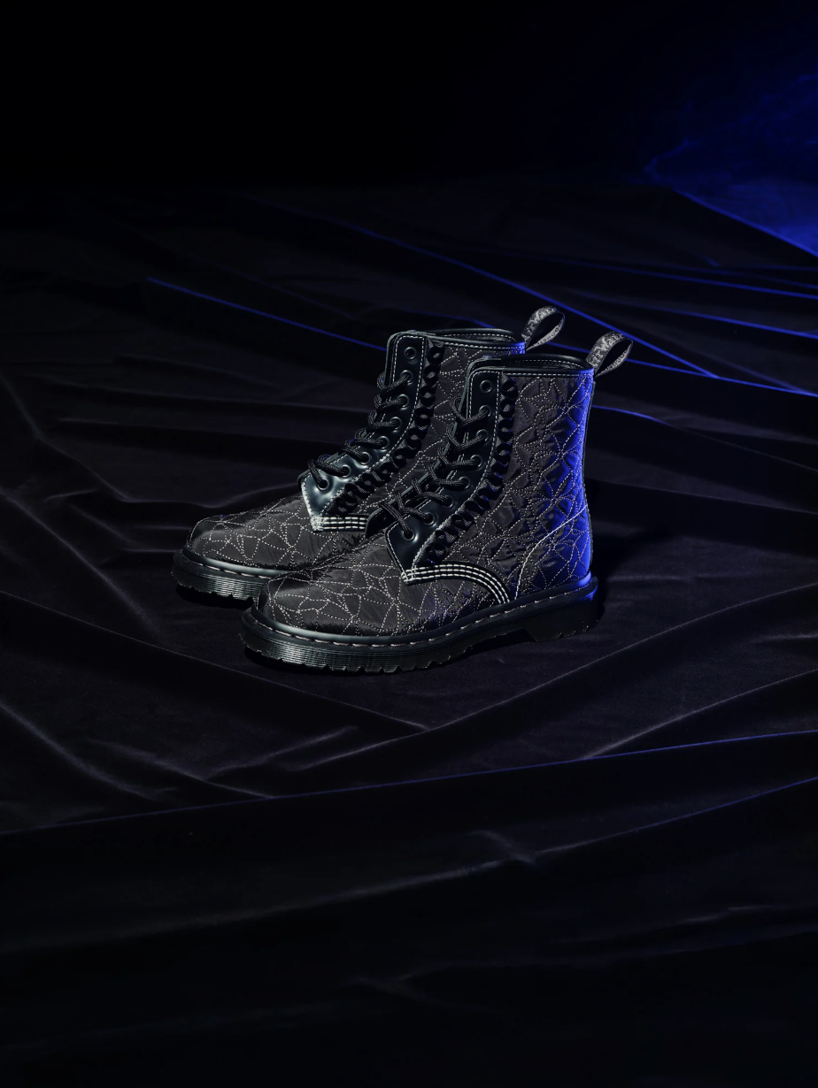 Dr. Martens 全新推出了万圣节胶囊系列「THE FRILL」。该系列采用抛光光滑皮革制成,并引入了绗缝工艺,在鞋领和侧面绣有丝带图案和褶边设计,营造出少女与暗黑气质并存的哥特式外观。