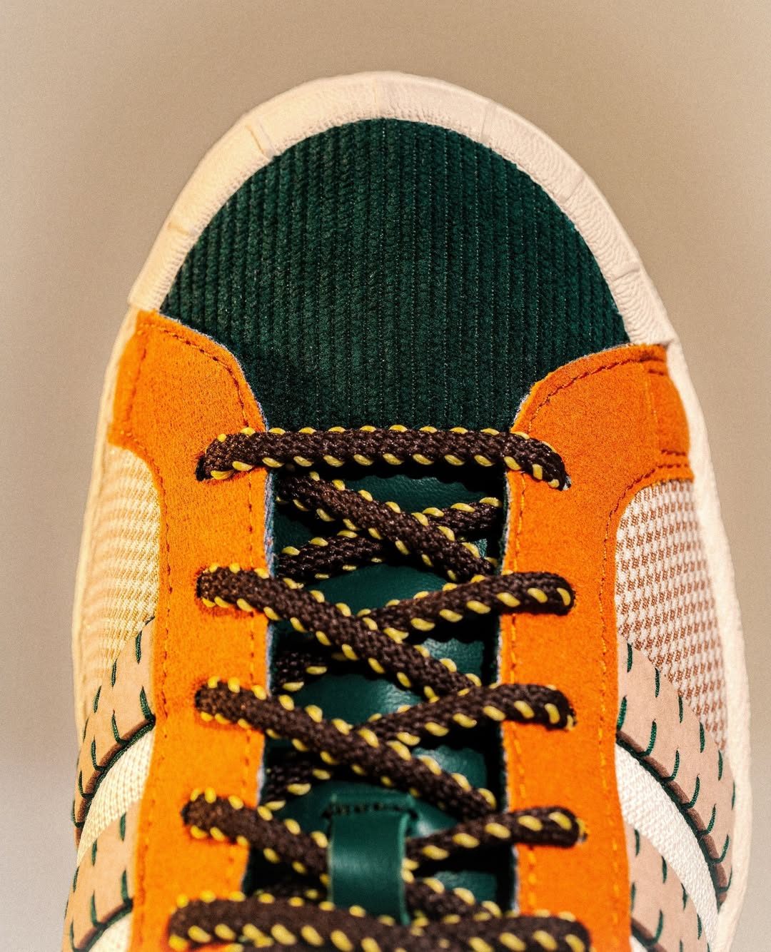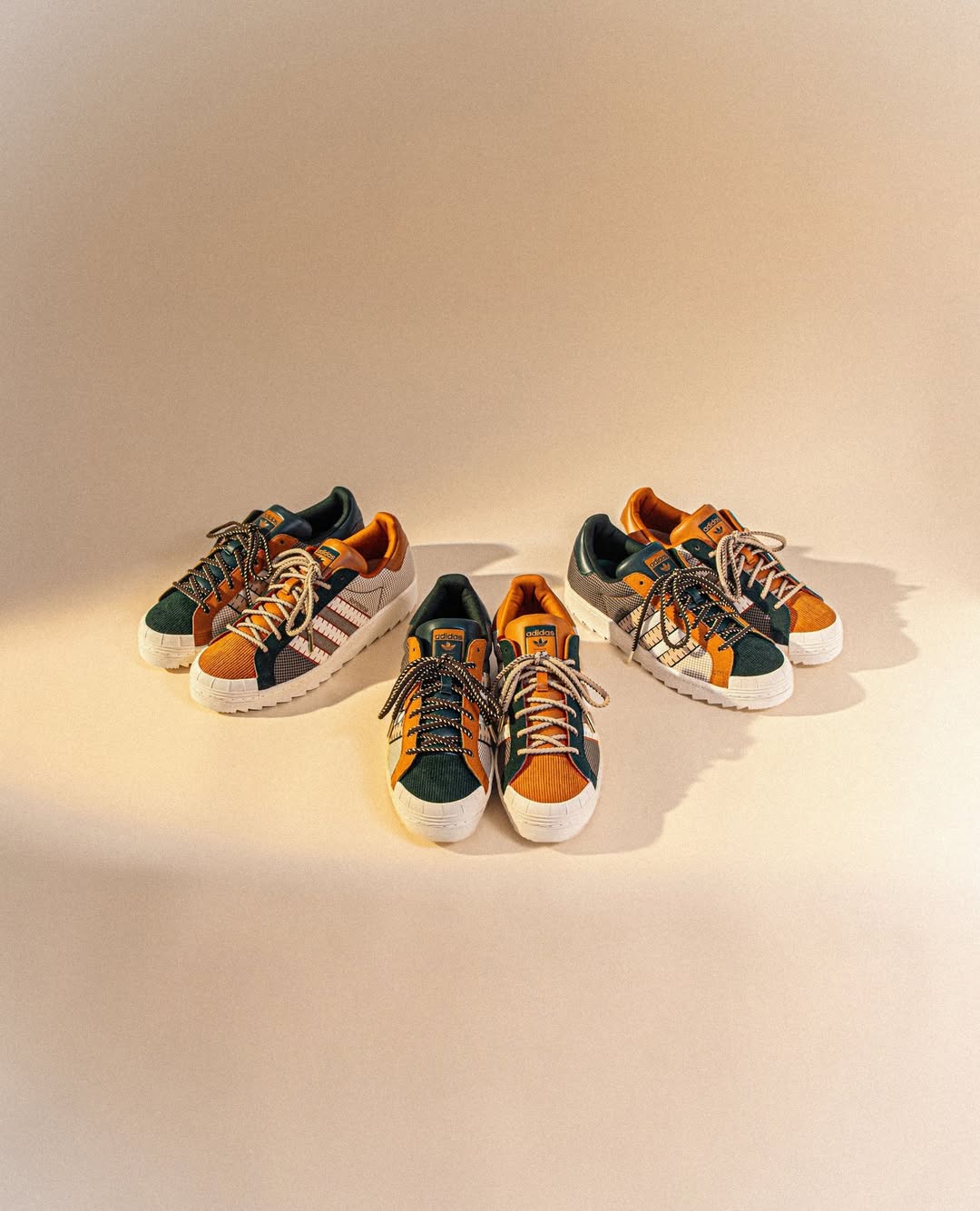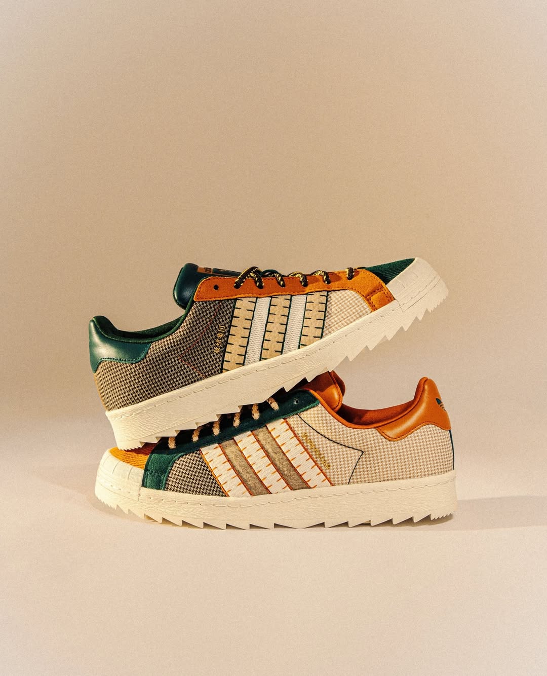 adidas Originals 携手陈冠希打造 2025 年合作的最终篇章,带来全新 CLOT Patchwork Superstar。这款特别版本以中国传统的「百家布」工艺为灵感,将年度合作中剩余的布料重新解构、拼接,象征着多元融合与创意循环,运用针织、灯芯绒、麂皮、织带、皮革及千鸟格等多样面料,通过 Patchwork 拼布手法重塑经典 Superstar 轮廓。鞋款左右脚采用不对称设计——左脚主打象牙白与沙色调,右脚则以深棕与墨绿色呈现稳重质感,呼应阴阳平衡的东方哲学。据悉,鞋款将于 10 月 13 日率先登陆 JUICE 上海门店,并于 10 月 17 日起陆续在全球渠道发售。