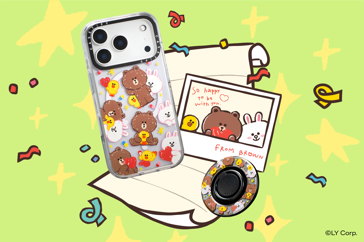 CASETiFY 携手国际创意工作室 LINE FRIENDS,在布朗熊 15 周年之际,共同推出全新 LINE FRIENDS x CASETiFY 联名系列,为布朗熊献上生日贺礼。此次联名系列邀请粉丝们一同开启布朗熊的生日礼物,与这群最可爱的小伙伴们一起拥抱此刻,珍藏每份温暖记忆。