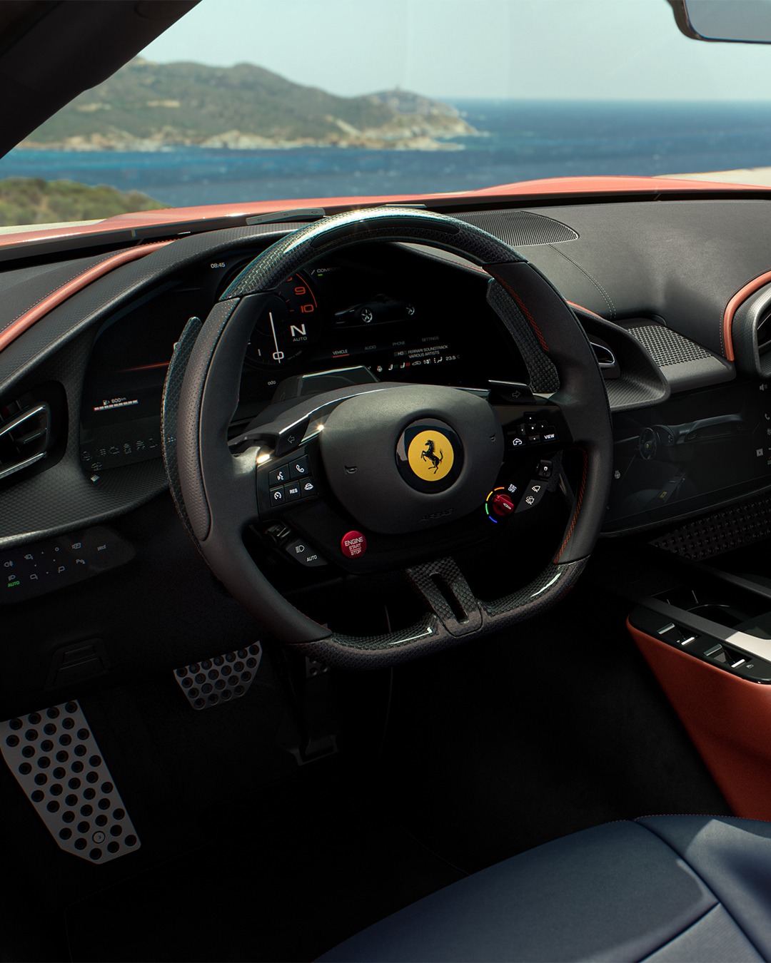 在保留法拉利标志性的前中置发动机比例和优雅车身线条的同时,通过软顶敞篷设计,全新法拉利 Amalfi Spider 专为那些渴望极致驾驶体验,同时又不愿牺牲舒适性和时尚感的人士而打造。其外观设计基于 Speedform 风格,以立体感和极简的表面处理为特色。配备定制软顶敞篷,仅需 13.5 秒即可完成开启。同时,其搭载的 640 马力双涡轮增压 V8 发动机,在各种驾驶条件下都能提供卓越的性能。此外,主动式空气动力学套件,包括三段式尾翼和一键操控的集成式导流板,进一步提升了敞篷驾驶的乐趣并强化了其运动气息。
