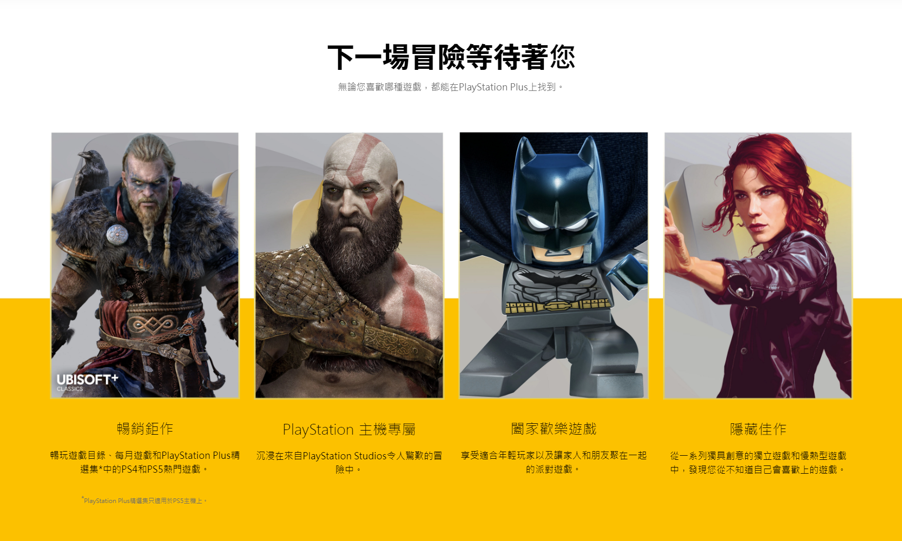 PS Plus Essential(基本):福利与目前的 PS Plus 会员相同,价格为每月 HK$48 / 每季 HK$128 / 每年 HK$308。